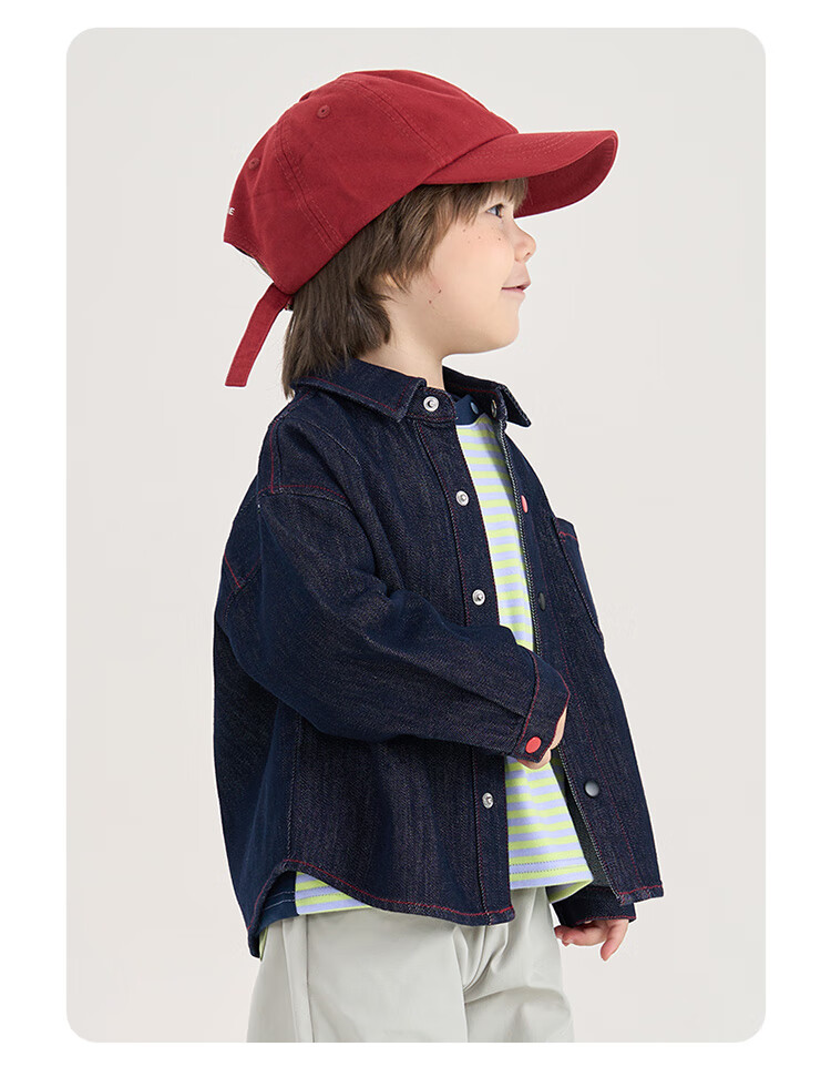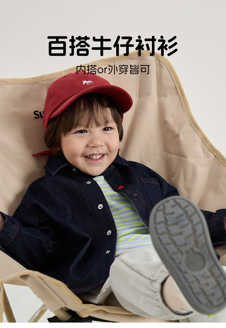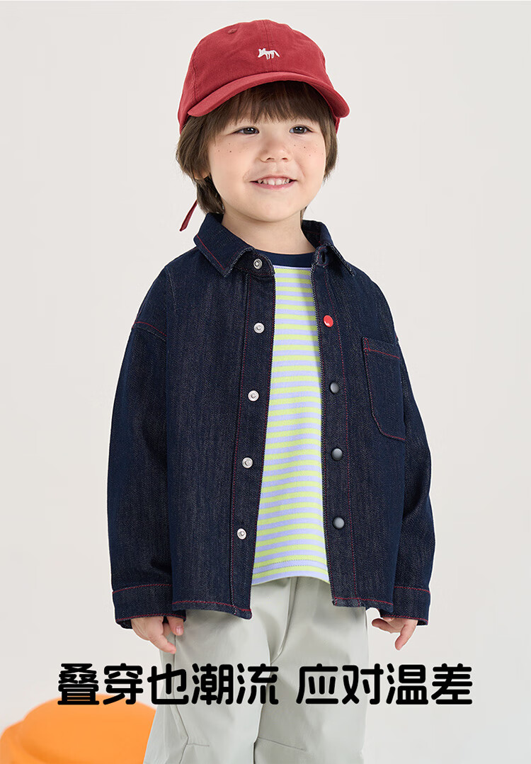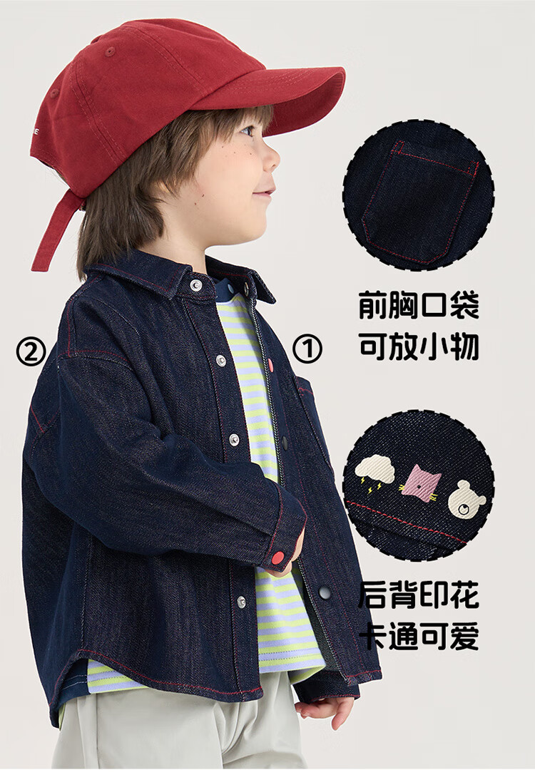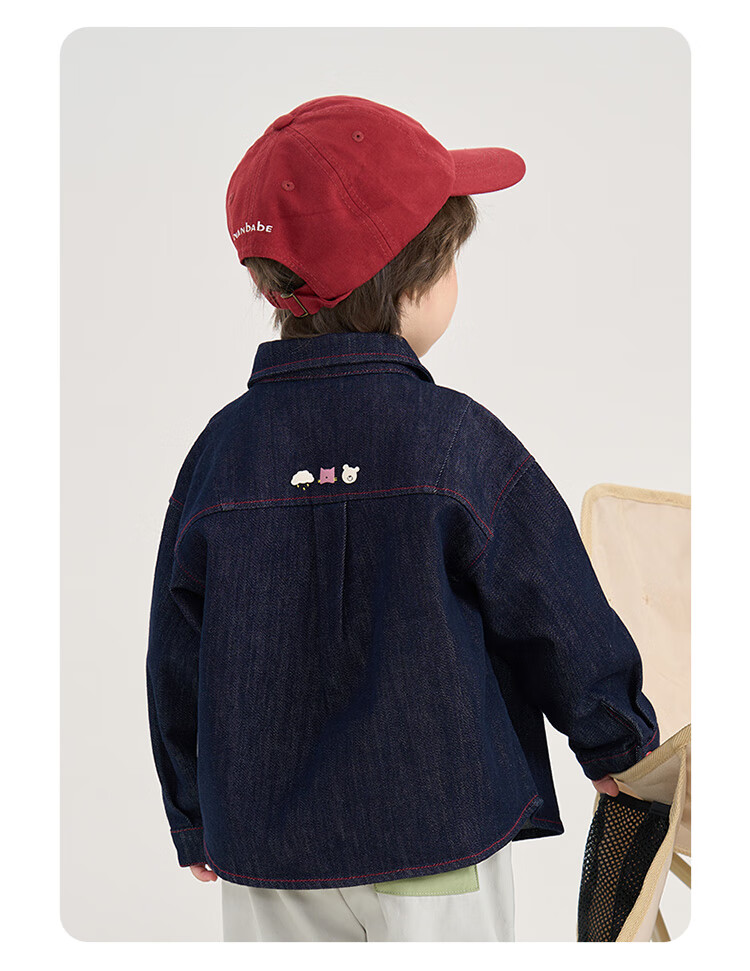 Borien denim boys' long-sleeved shirt spring and autumn new versatile fashion casual tops for baby girls dark denim blue 130