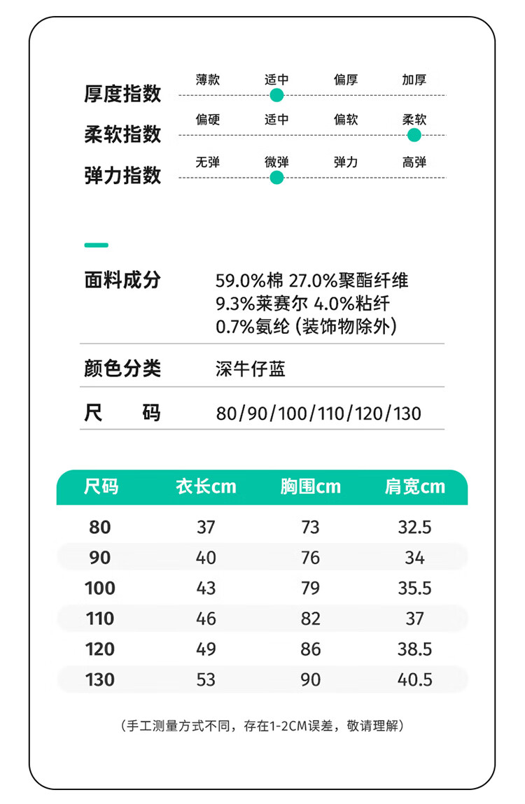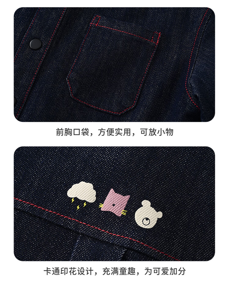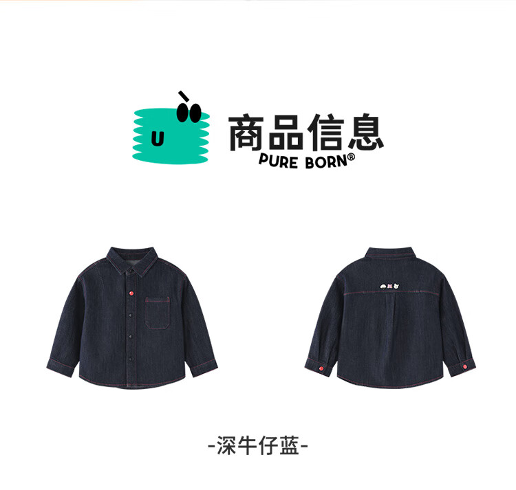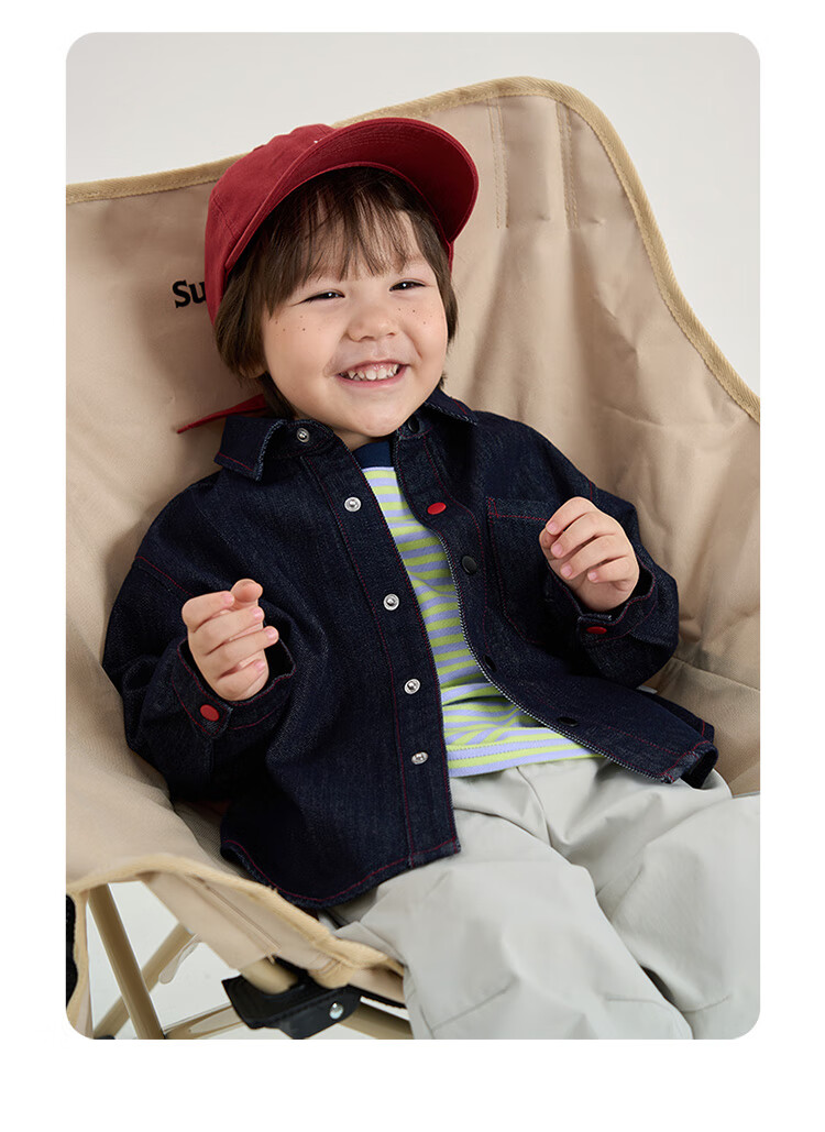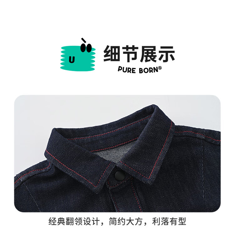 Borien denim boys' long-sleeved shirt spring and autumn new versatile fashion casual tops for baby girls dark denim blue 130