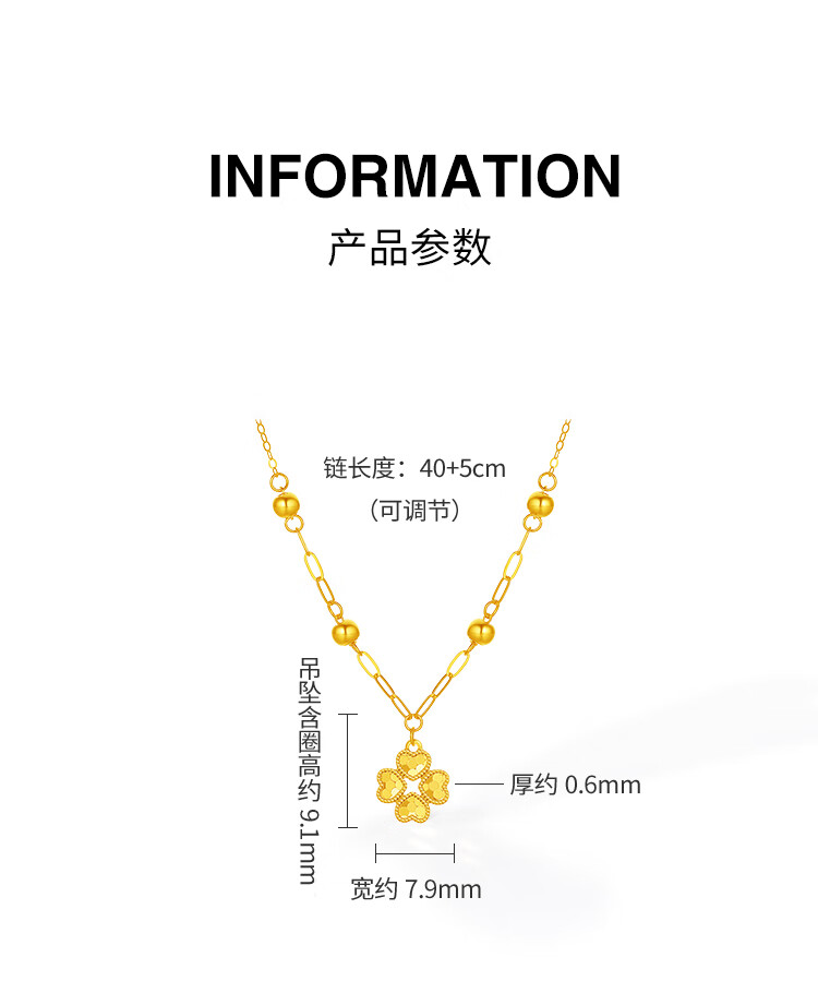 Saturday blessing Saturday blessing yellow 18K gold necklace for women, four-leaf clover gold bead pendant, shiny, light and luxurious holiday gift for girlfriend, necklace (40+5cm adjustable)