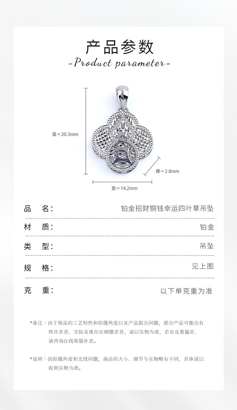 CHINA GOLD platinum pendant full platinum copper coin lucky four-leaf clover as a birthday gift for my wife, about 2.34g