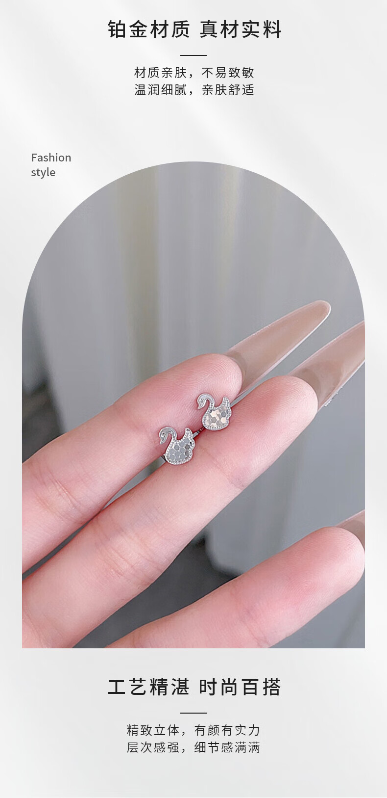 CHINA GOLD platinum earrings pure white swan foot platinum earrings as a birthday gift for my wife, about 1.99g