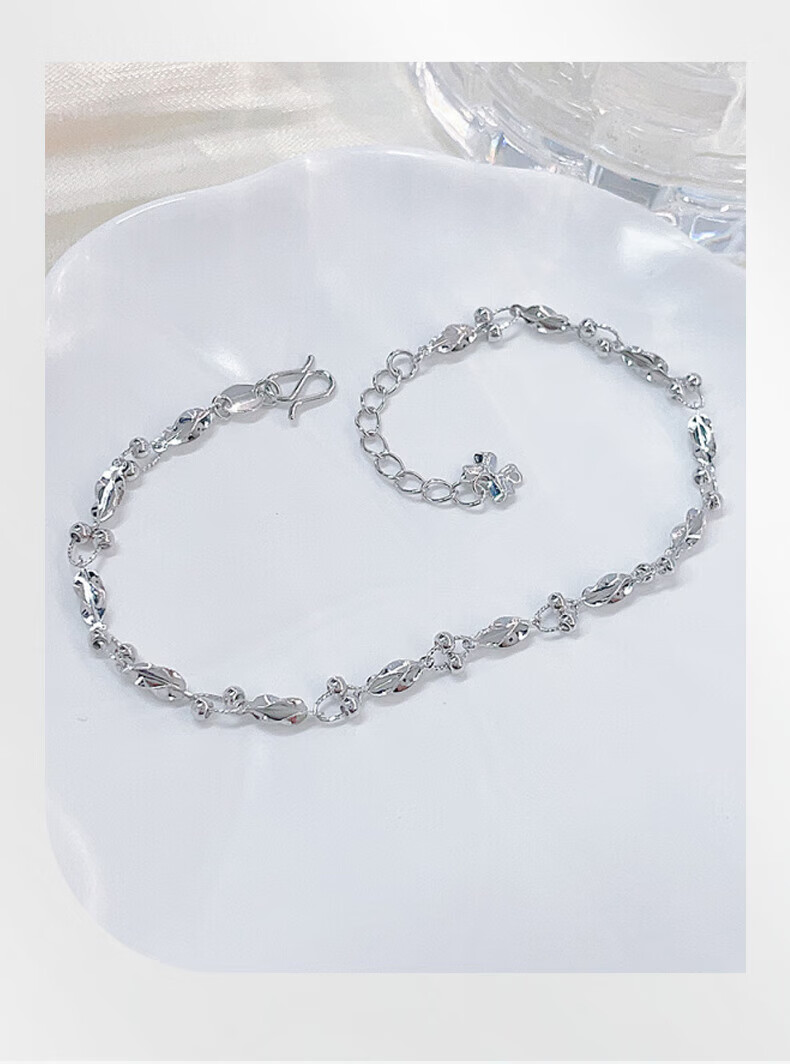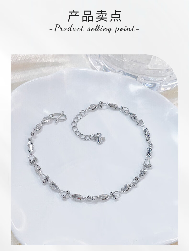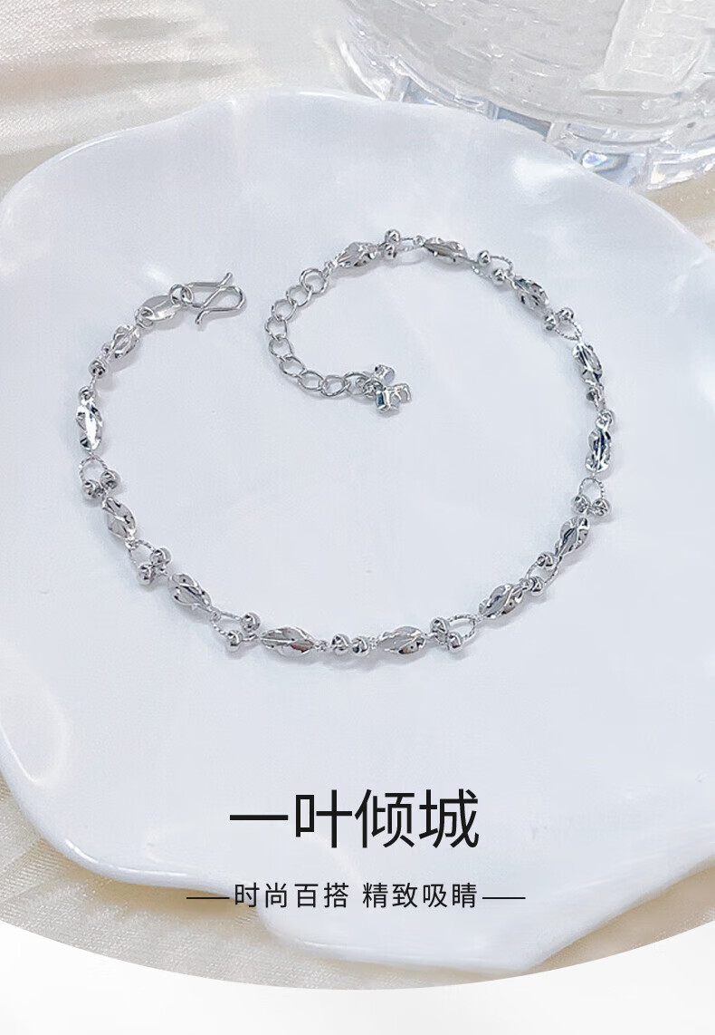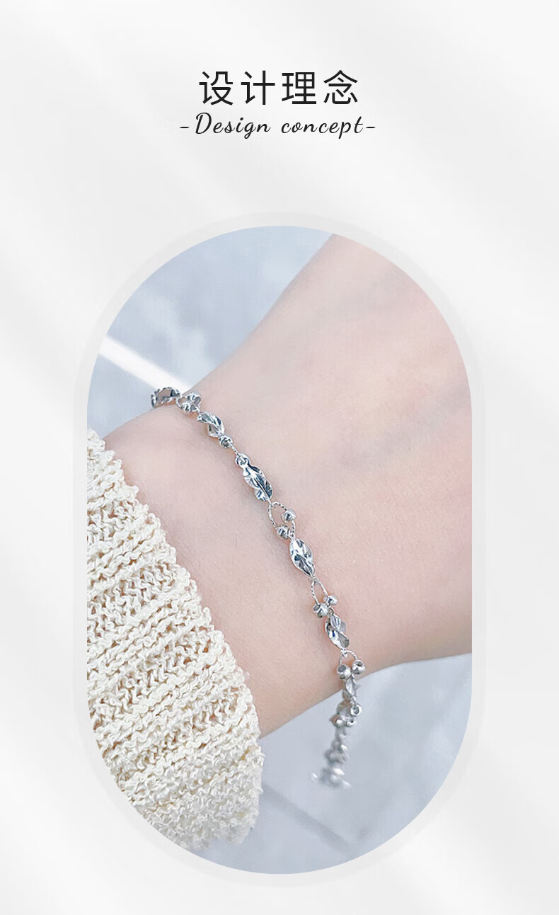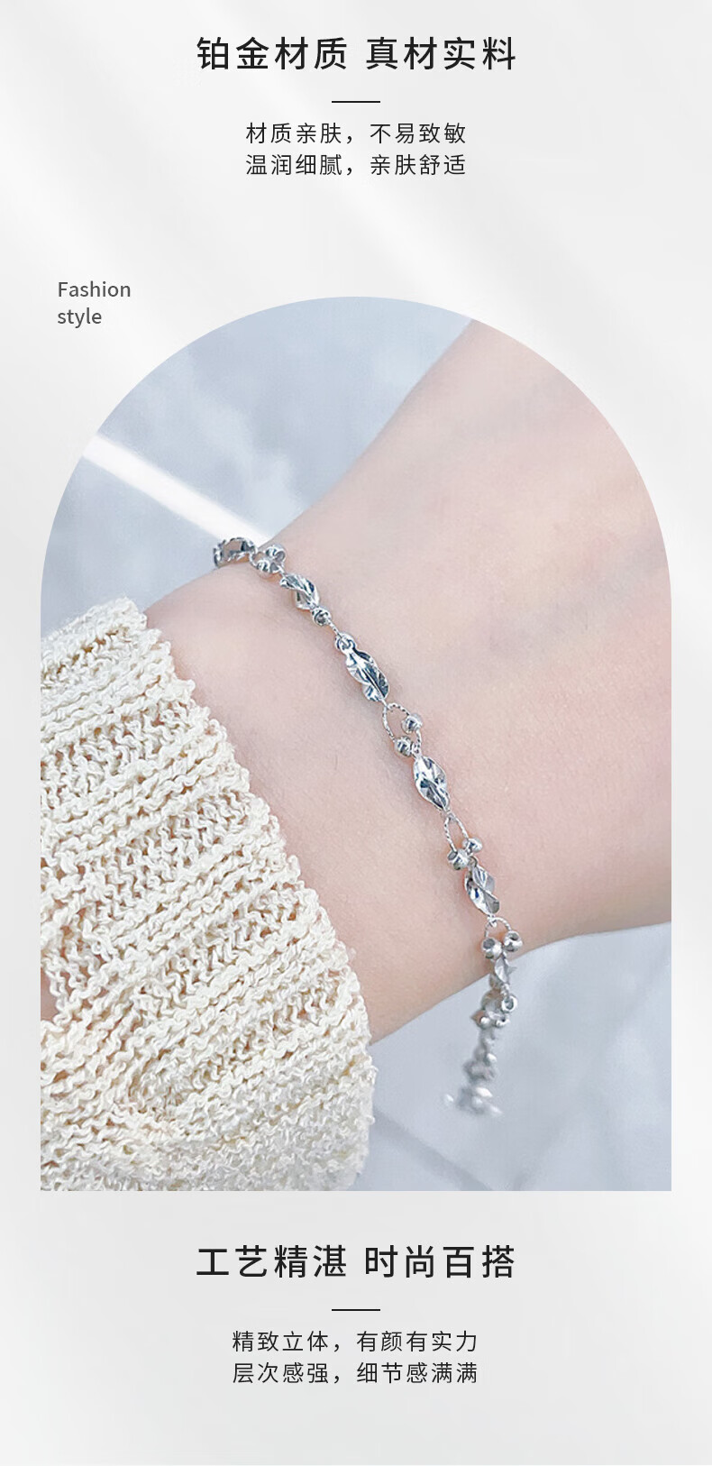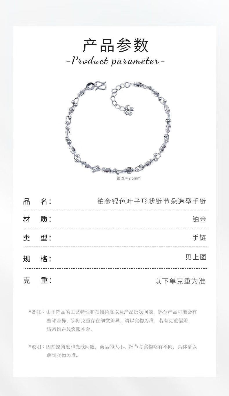 CHINA GOLD pt950 platinum silver leaf shape chain link flower shape bracelet adjustable women's birthday gift for girlfriend about 3.73g