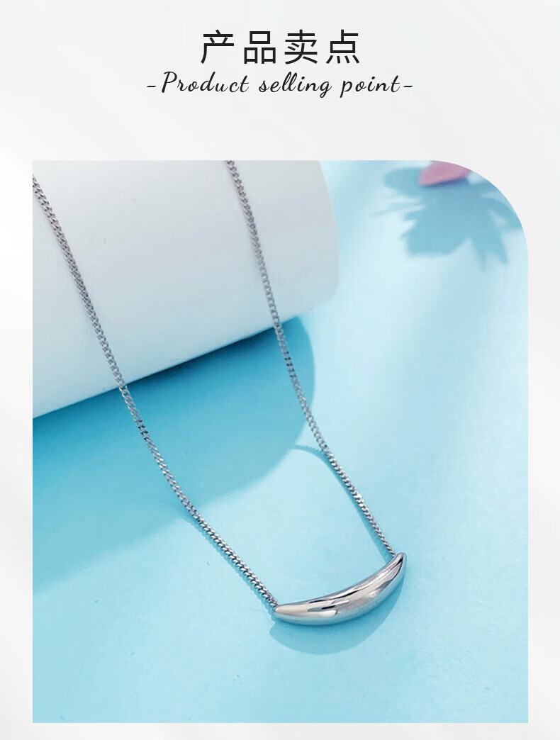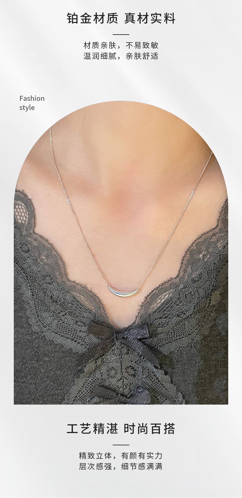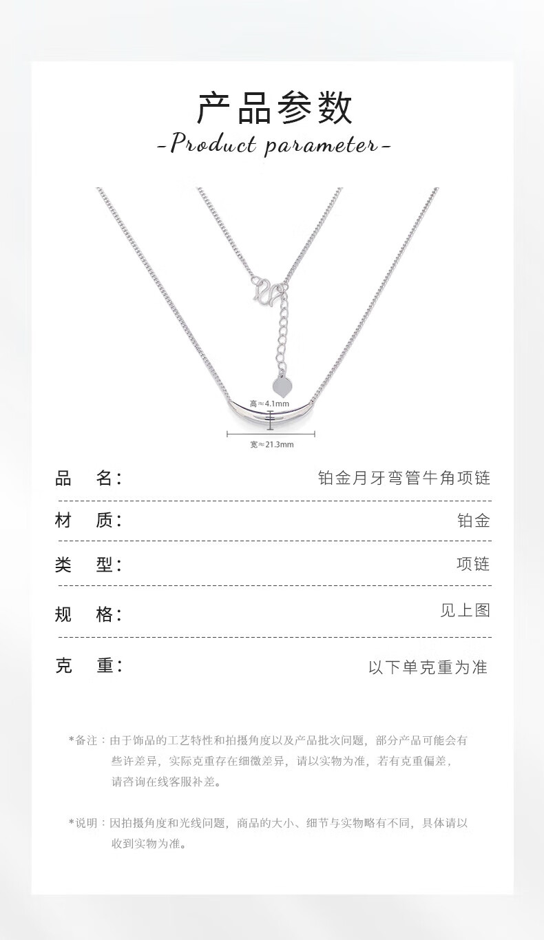 China Gold (CHINA GOLD) pt50 chain platinum crescent tube horn necklace platinum pendant women's birthday gift for wife and mother, about 5.91g