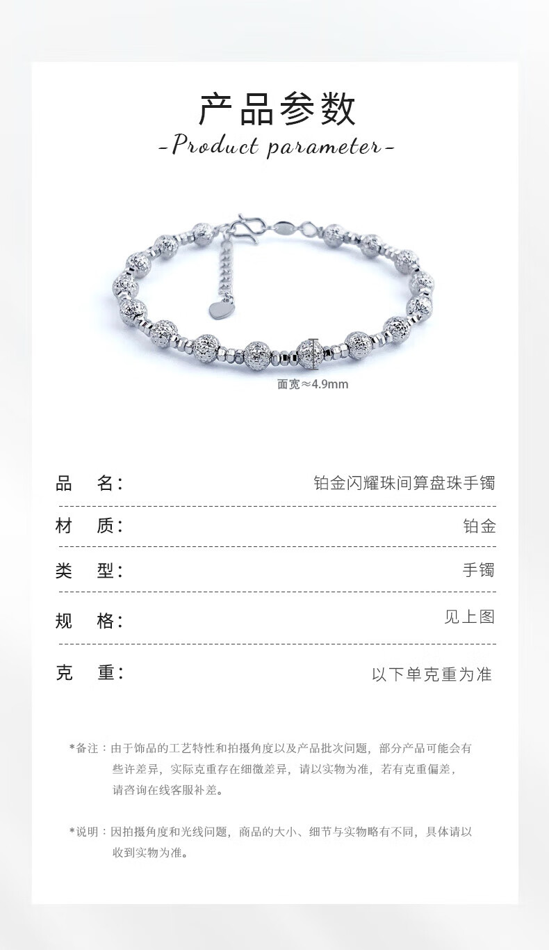 China Gold (CHINA GOLD) platinum bracelet pt950 sparkling abacus beads platinum bracelet birthday gift for girlfriend and wife, about 12.24g, adjustable range 56-58mm