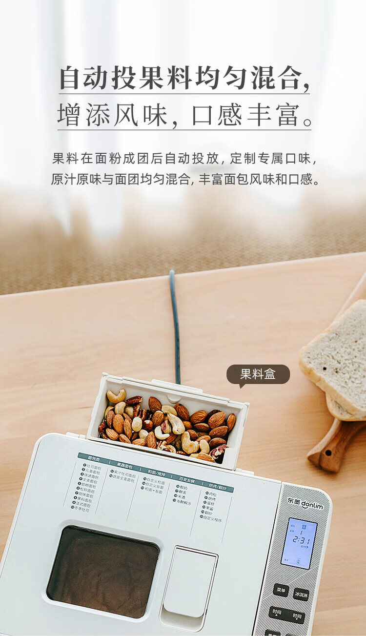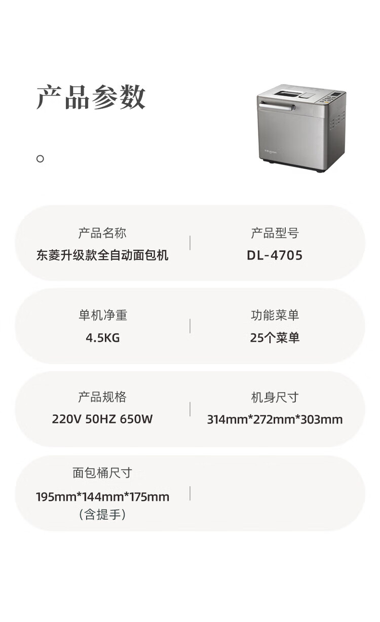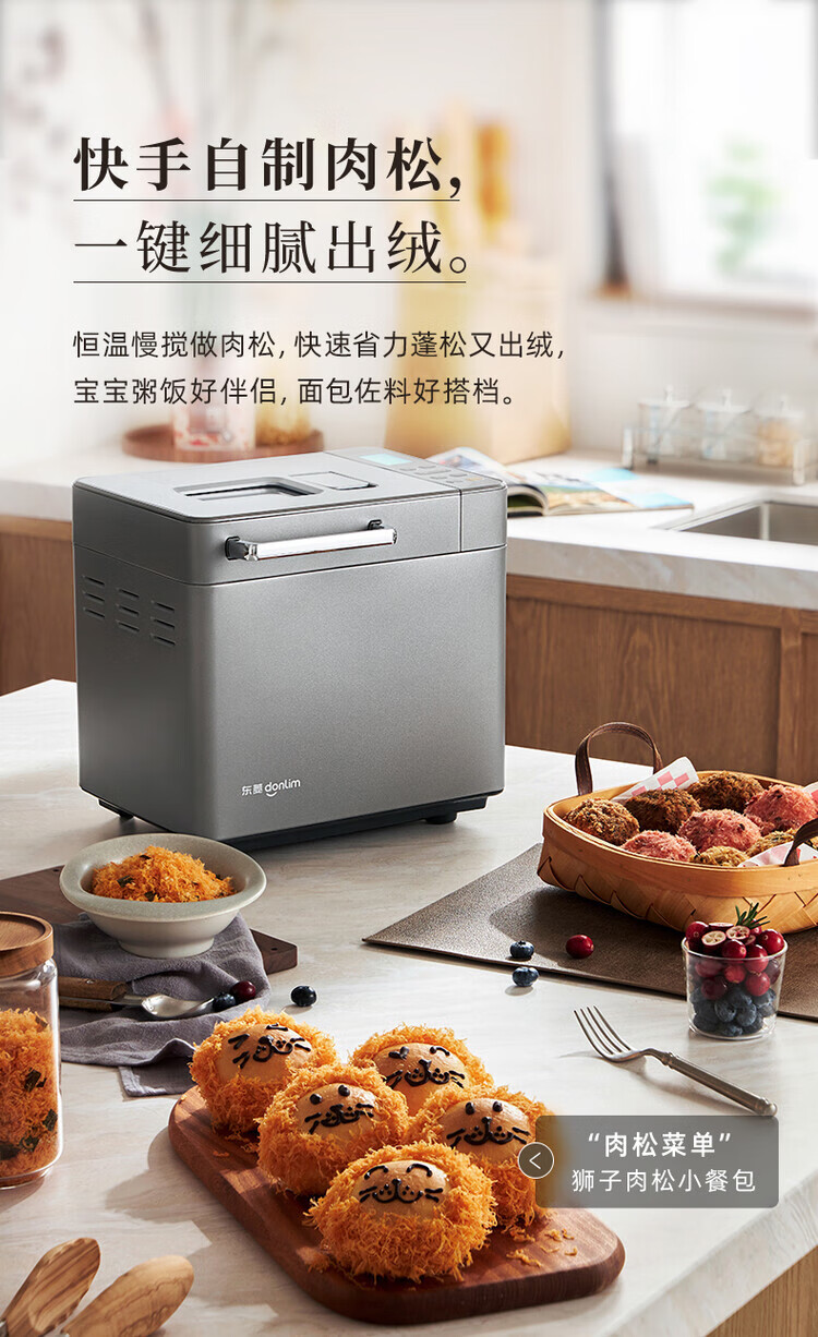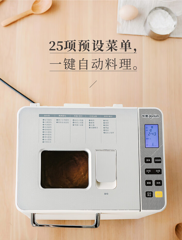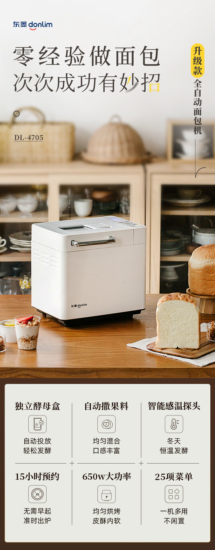 Donlim DL-4705 bread machine, household fully automatic small breakfast machine, dough mixer, multi-functional toast and steamed bun machine, Mianyun White + Ice Cream Bucket