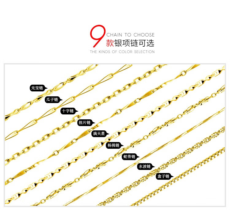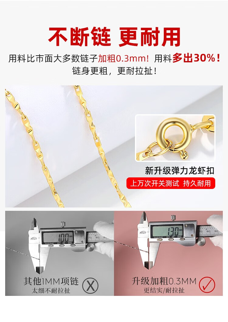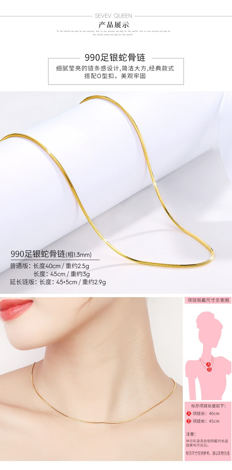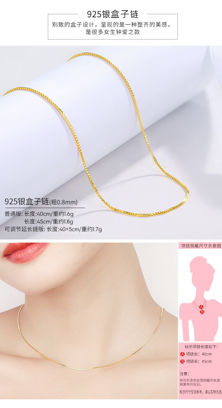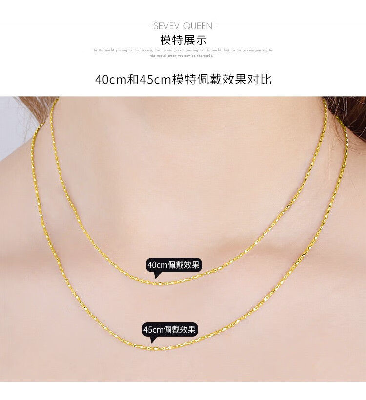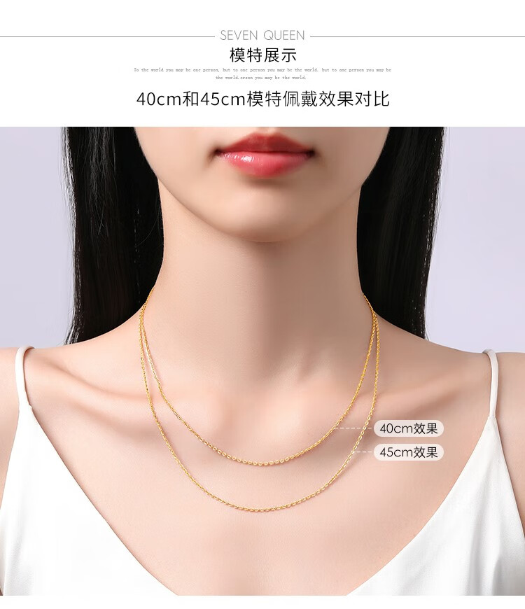Chow Tai Fook 99 sterling silver necklace for women without pendant gold-plated 18k gold chain colored silver plain chain does not fade 999-cross chain 40cm store manager