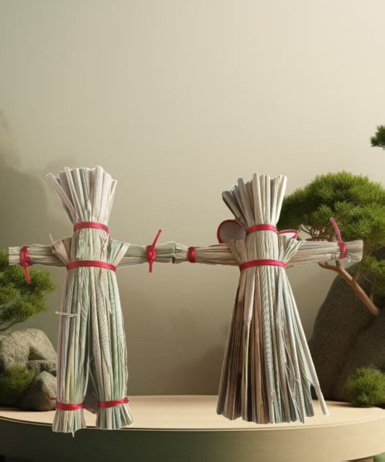Hand-woven straw to make a scarecrow, red rope braiding, Lin Zhengying's same style props, crafts, film and television, red rope braiding scarecrow making method, 16cm men's and women's models, 5 pairs and 10 pieces