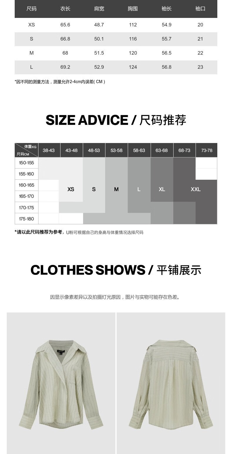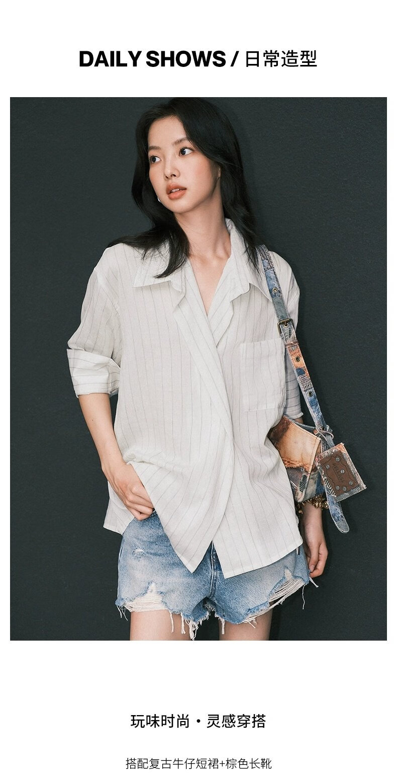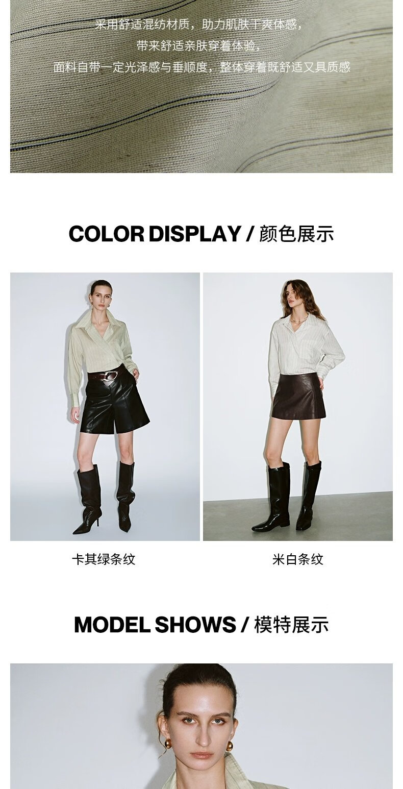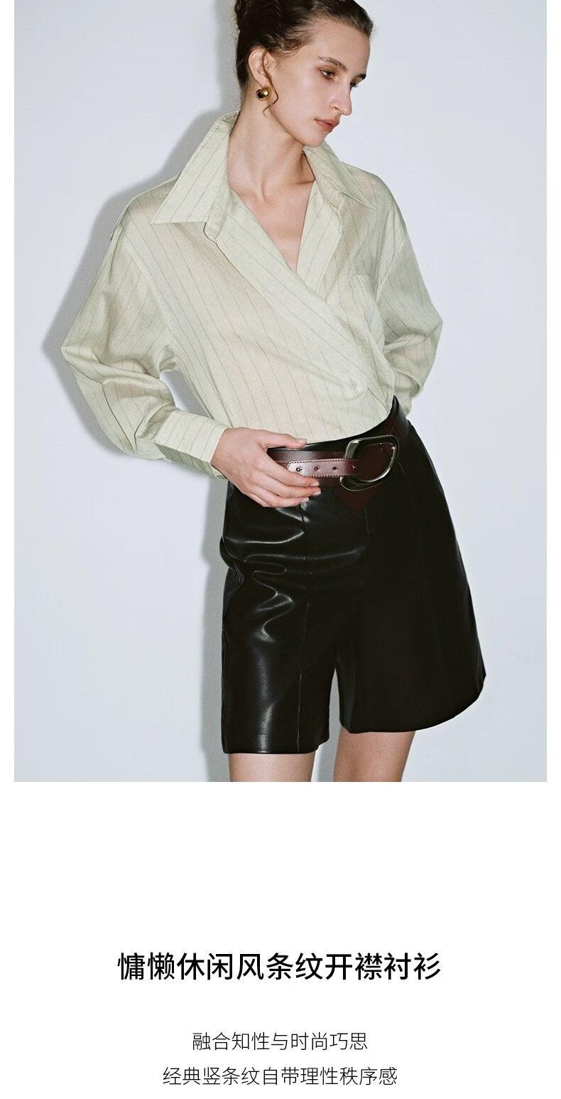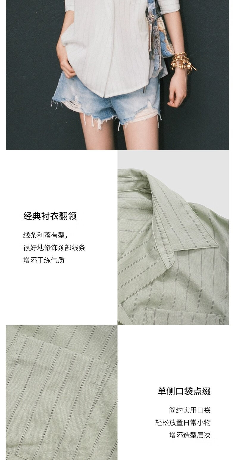 UR2026 Spring New Women's Lazy Casual Style Striped Long-Sleeved Cardigan Shirt UWM250114 Khaki Green Striped (Fabric Slightly Transparent) S