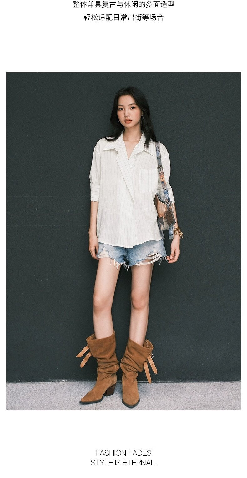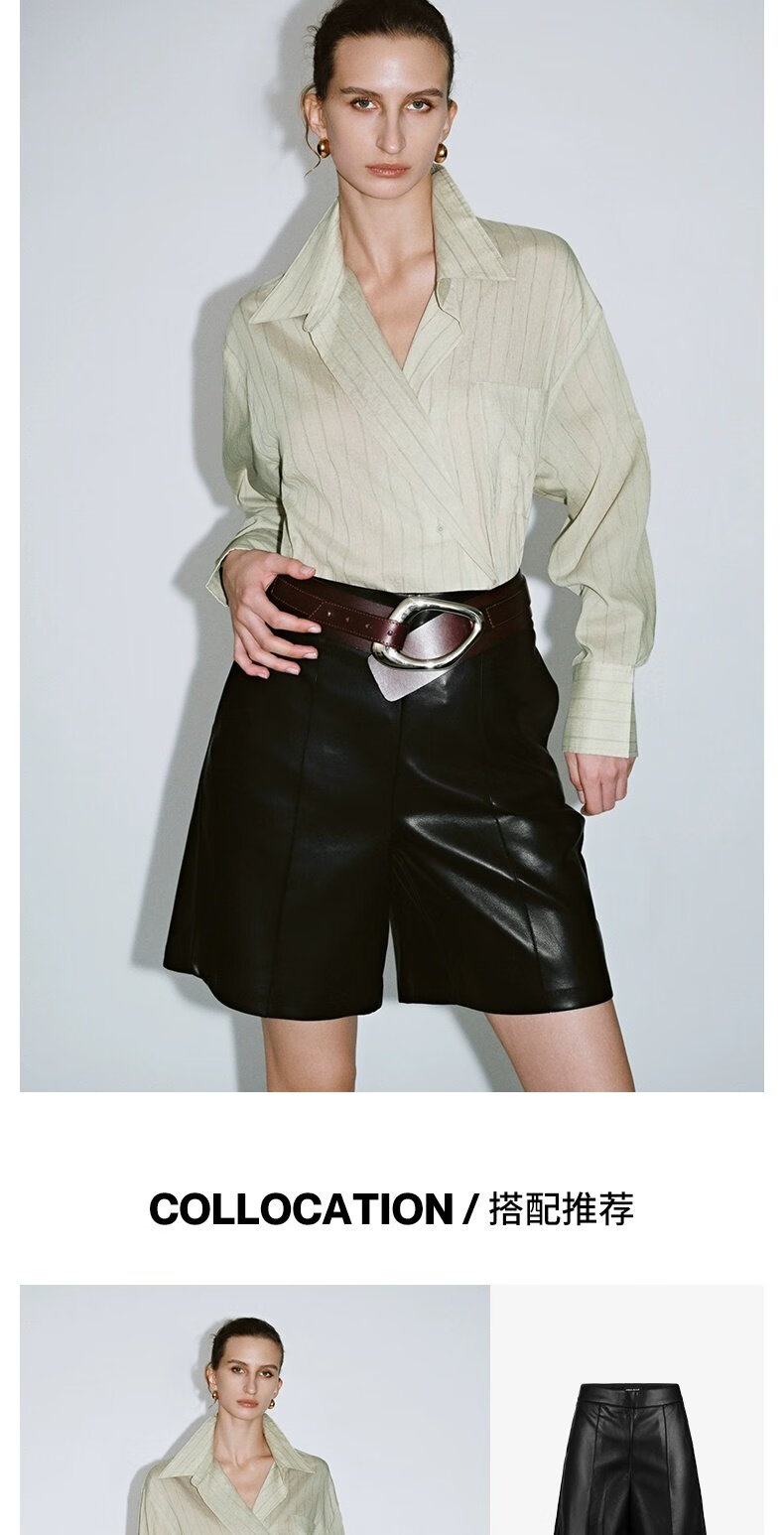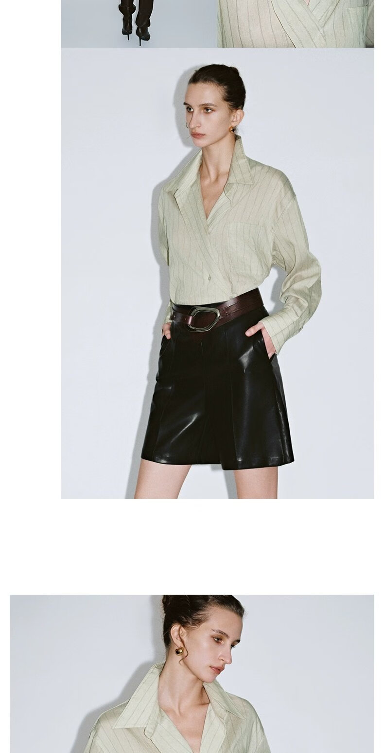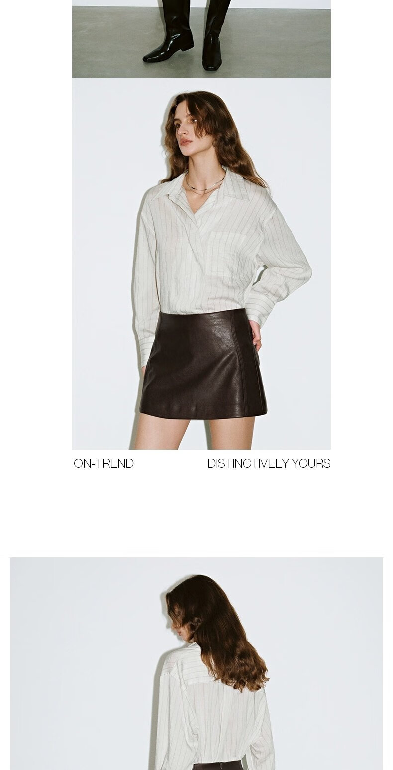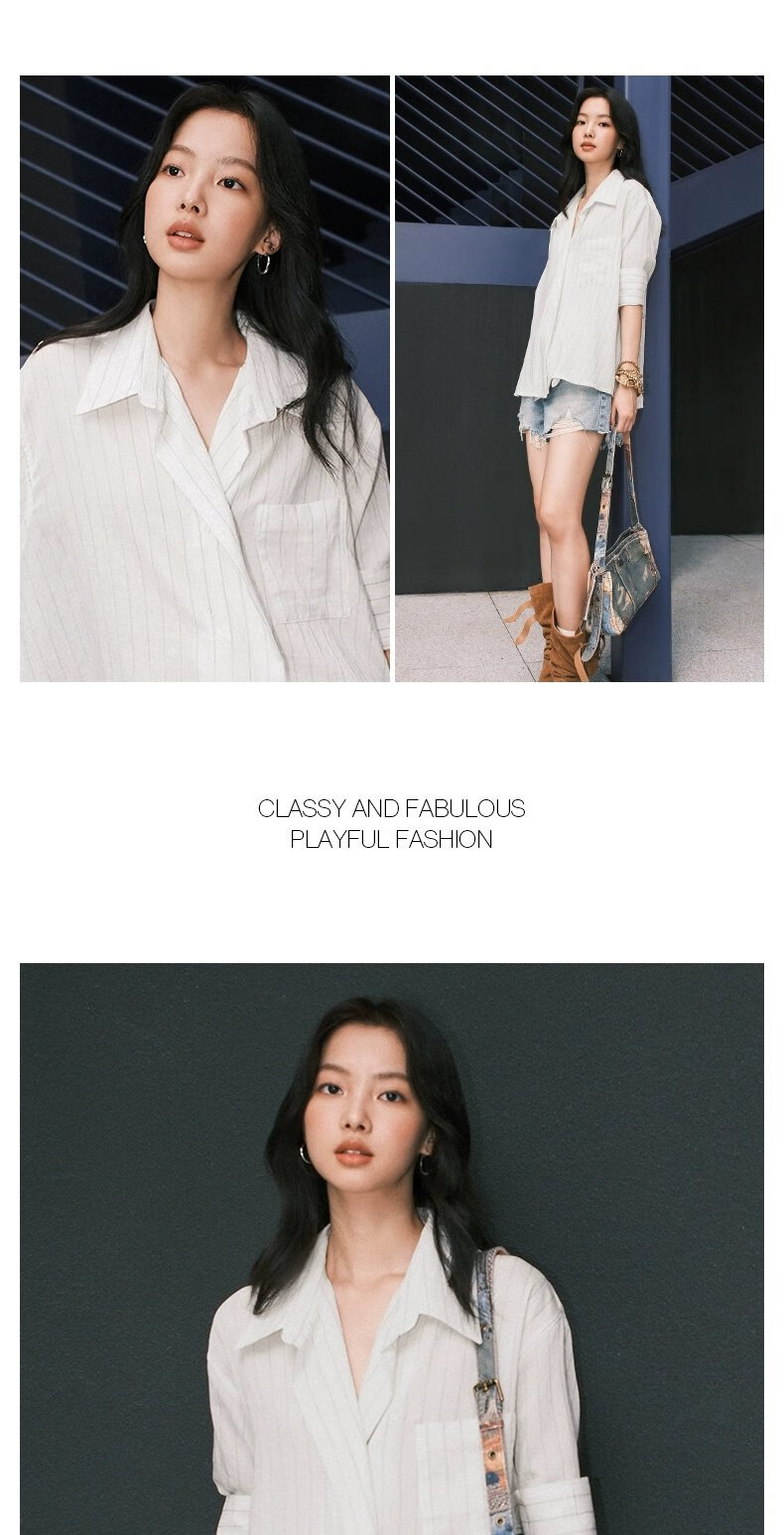UR2026 Spring New Women's Lazy Casual Style Striped Long-Sleeved Cardigan Shirt UWM250114 Khaki Green Striped (Fabric Slightly Transparent) S