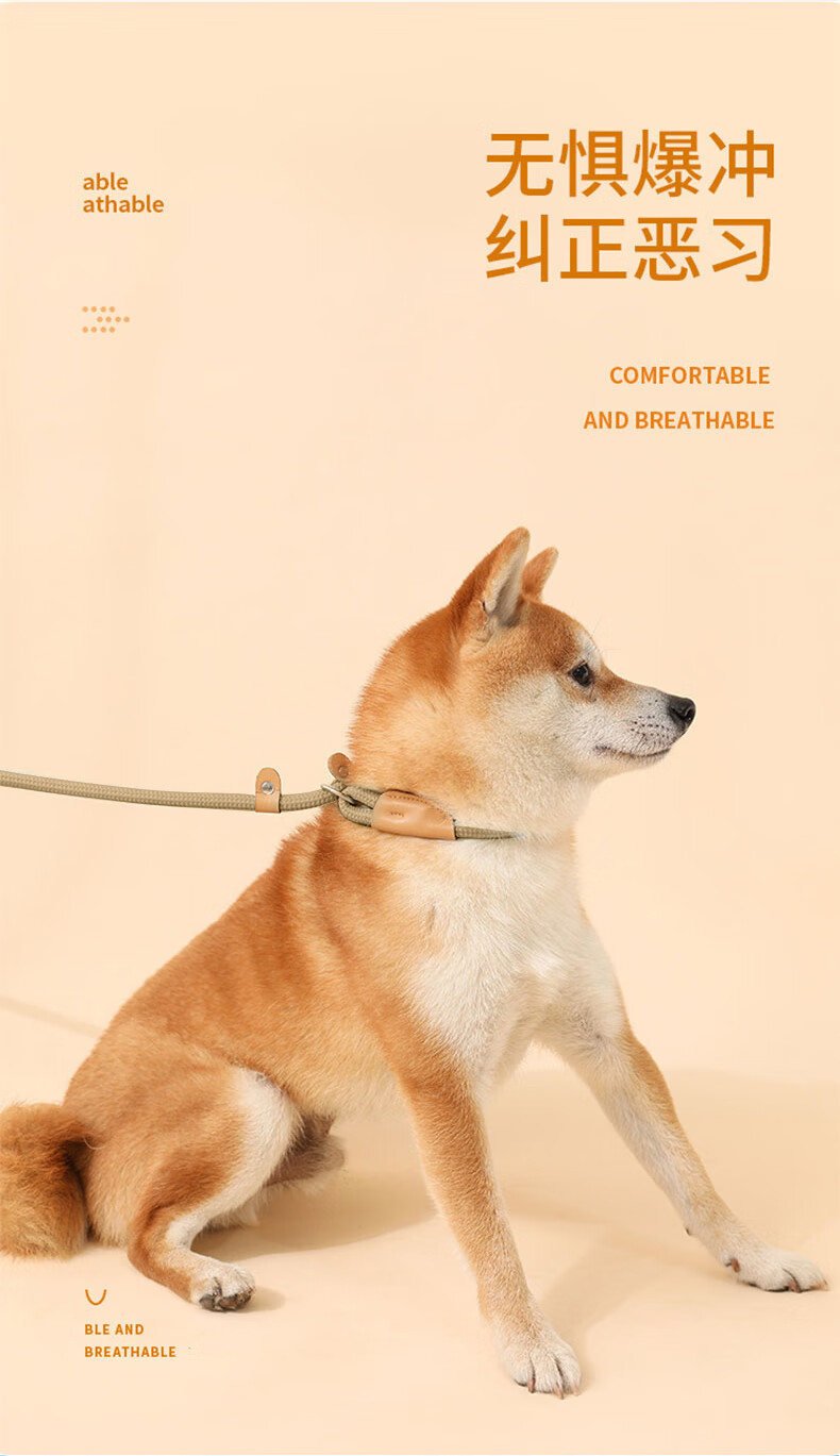 Dog leash P chain rope dog walking rope explosion-proof impact collar integrated dog leash medium and large small dogs beige P chain L size 20-50Jin Jin equals 0.5 kg applicable