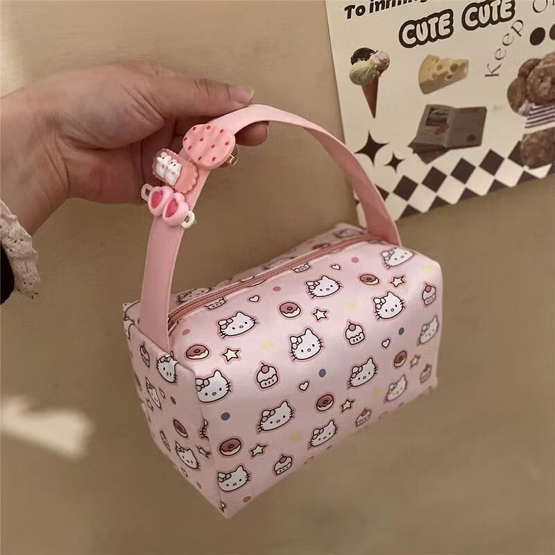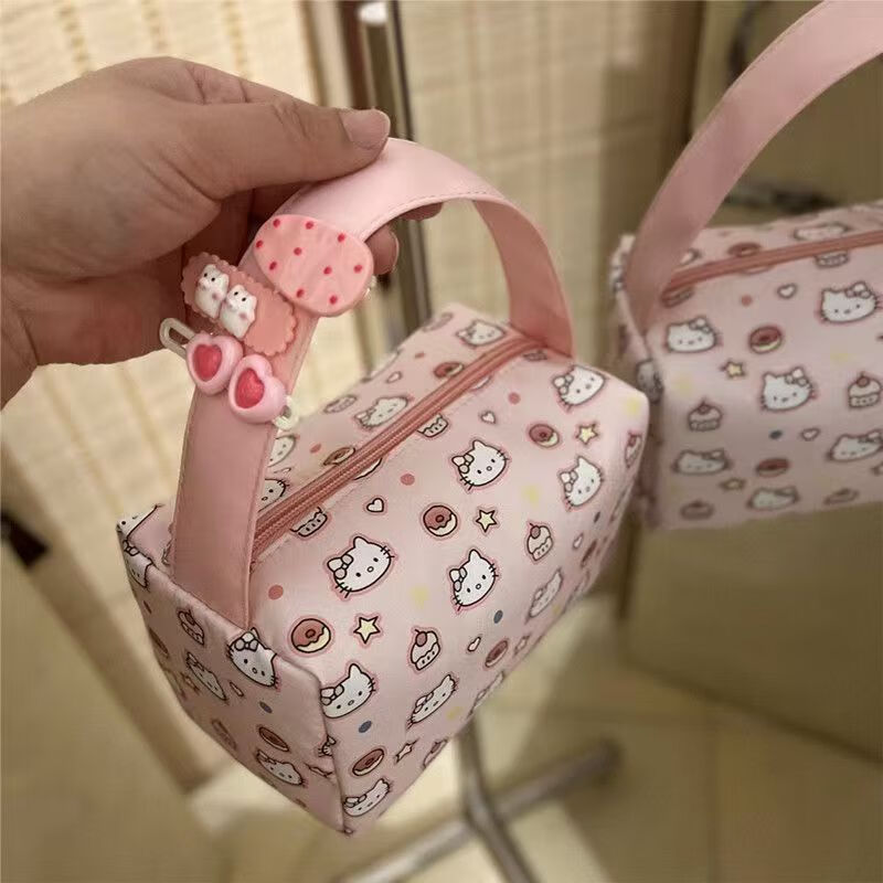 New 2025 handbag with high appearance and large capacity for travel, portable three-dimensional washing and storage cosmetic bag, kt cat bow, upgraded handle