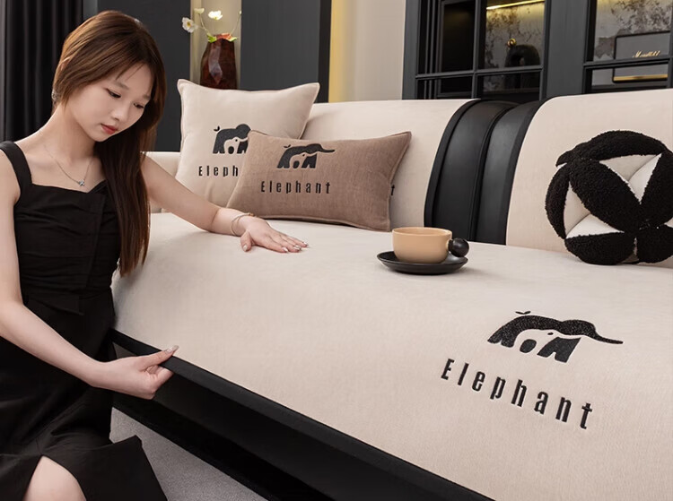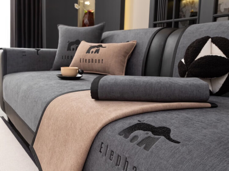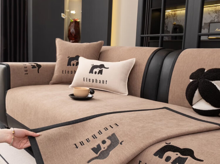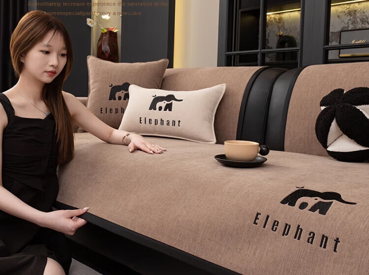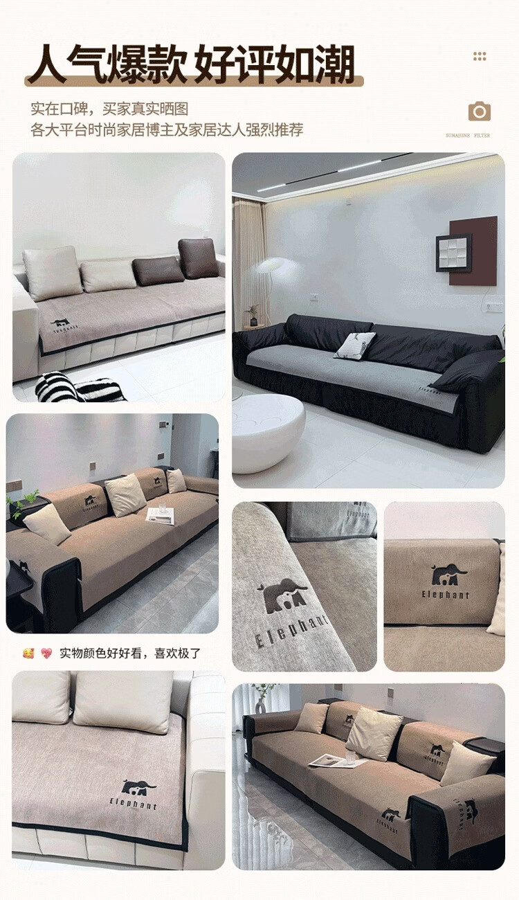 Lange Genuine Leather Special Anti-Slip 2025 Light Luxury Sofa Cushion Suitable for All Seasons, Dirty Resistant and Wear-Resistant Chenille Straight Seat Cushion Vientiane-Cocoa Skin Friendly Suitable for All Seasons 90cm*90cm (Enlarged and Widened Armrests and Backrests)