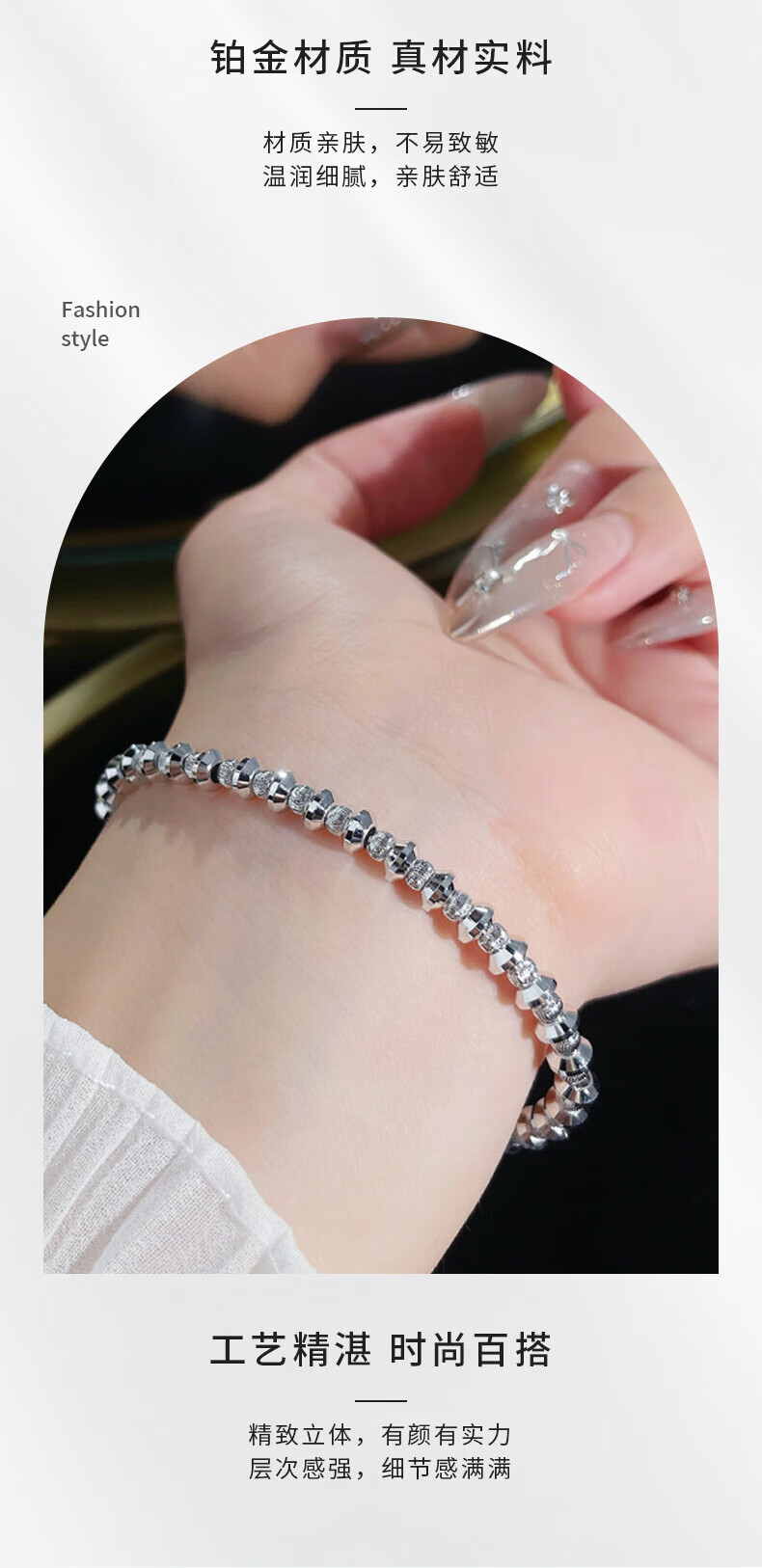 Laomiao pt950 platinum abacus bead scimitar bead bracelet adjustable women's birthday gift for girlfriend, about 13.03g