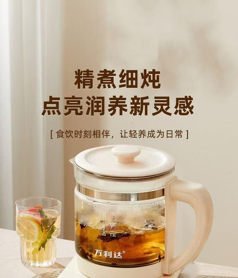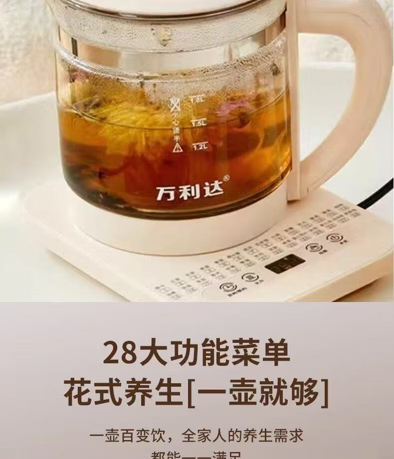 Wanlida health kettle, kettle, hot water kettle, constant temperature kettle, teapot, teapot, one-piece glass, fully automatic, small household, multifunctional office, large capacity, milky white 1.8L basic model