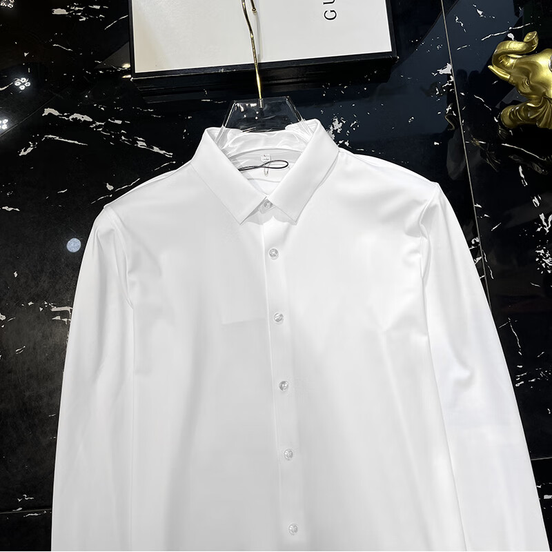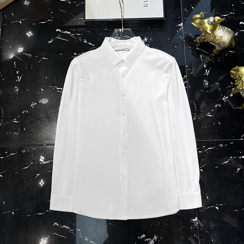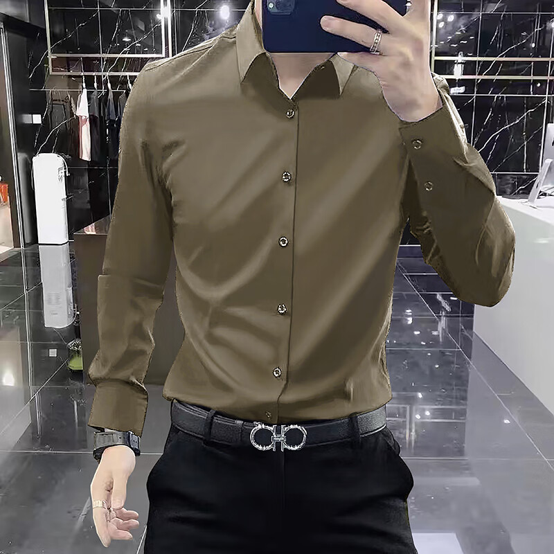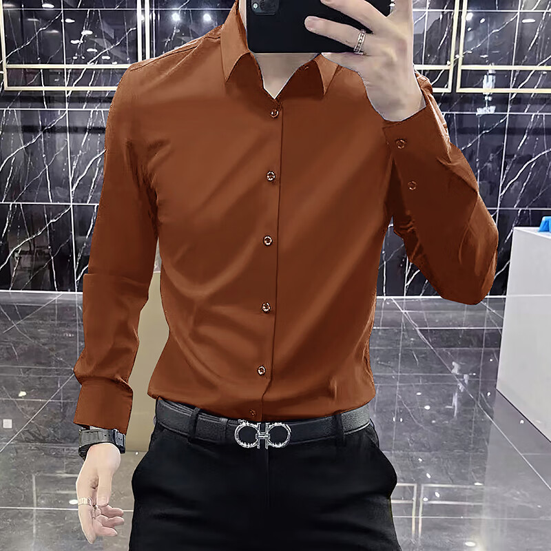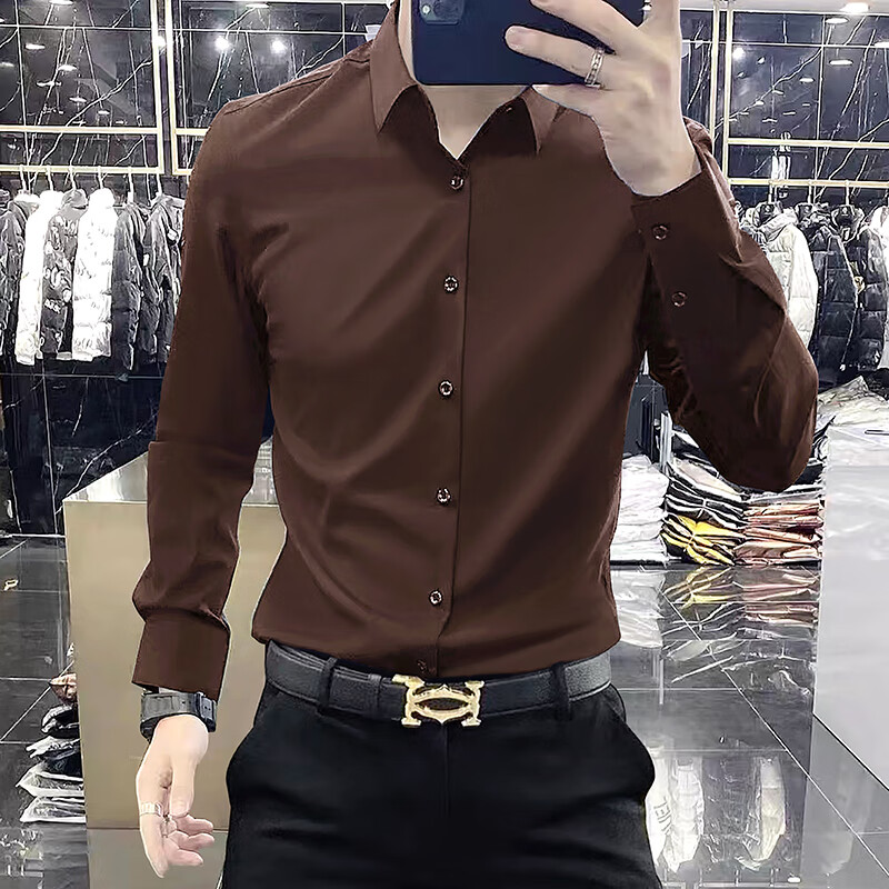 ROMON yuppie-like no-iron casual shirt for men spring and autumn long-sleeved solid color business formal silk drape shirt for men dark brown plus velvet M