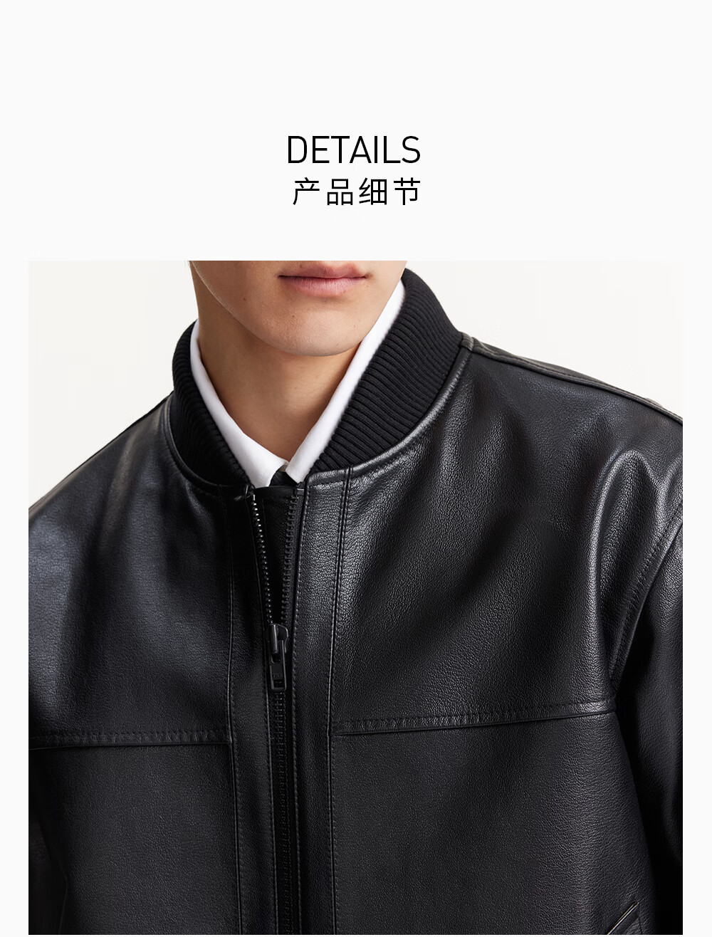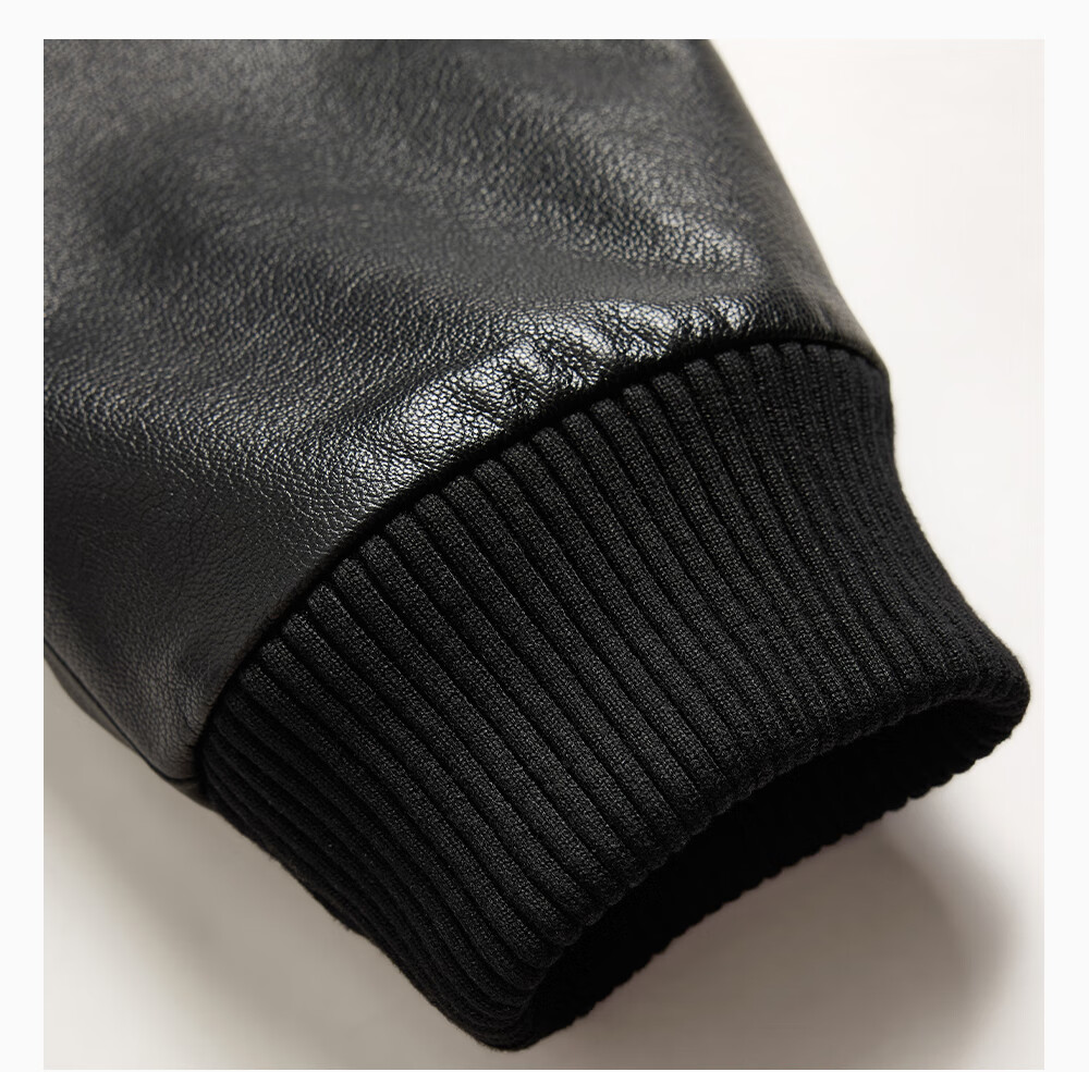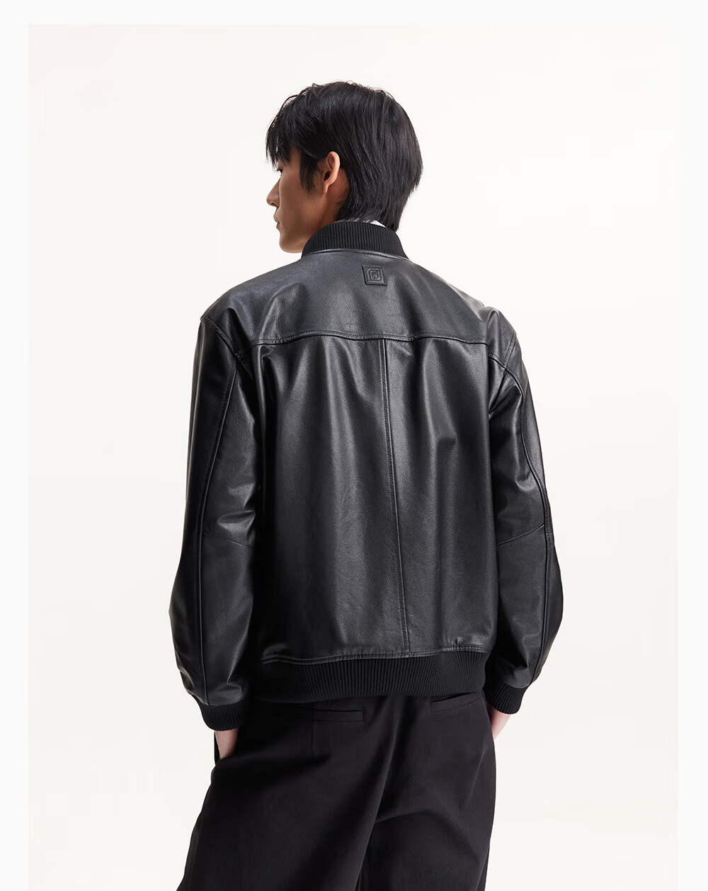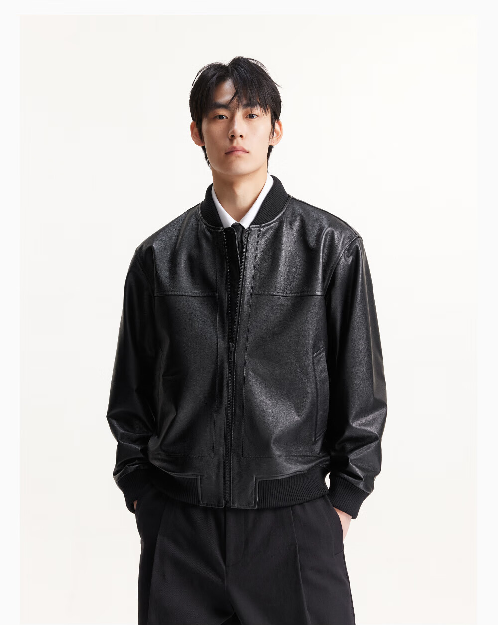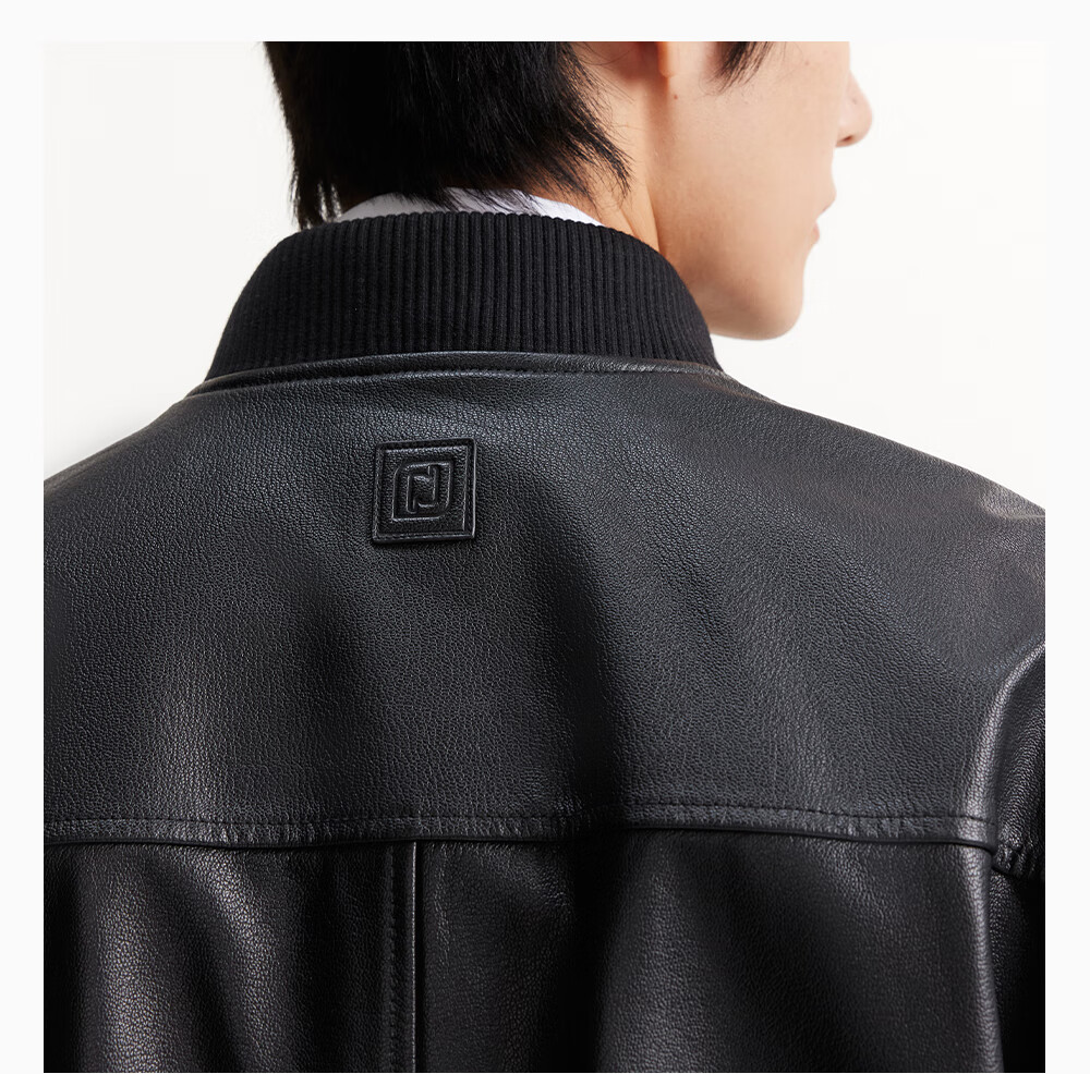 JACK&JONES Men's Autumn Jacket Ribbed Neck Slightly Loose Leather Pocket Stand Collar Solid Color Long Sleeve Jacket 225310002 E40 Black M (175)