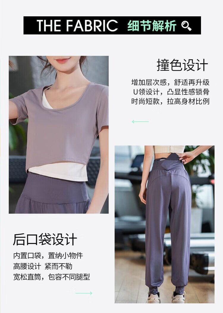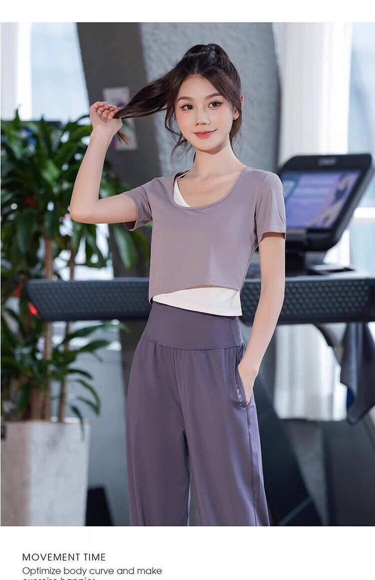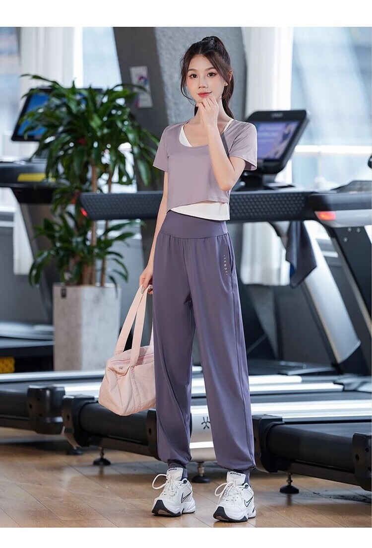 Shantou Lincun Yoga Wear Pilates Suit Three-piece Loose 2025 Quick-drying High-Elastic Sports Suit Women's Summer Large Size Slim Gray Purple (Short Sleeve) + Dark Purple (Trousers) One Set One Size Suitable for 80-110 Jin Jin is equal to 0.5 kg Wear