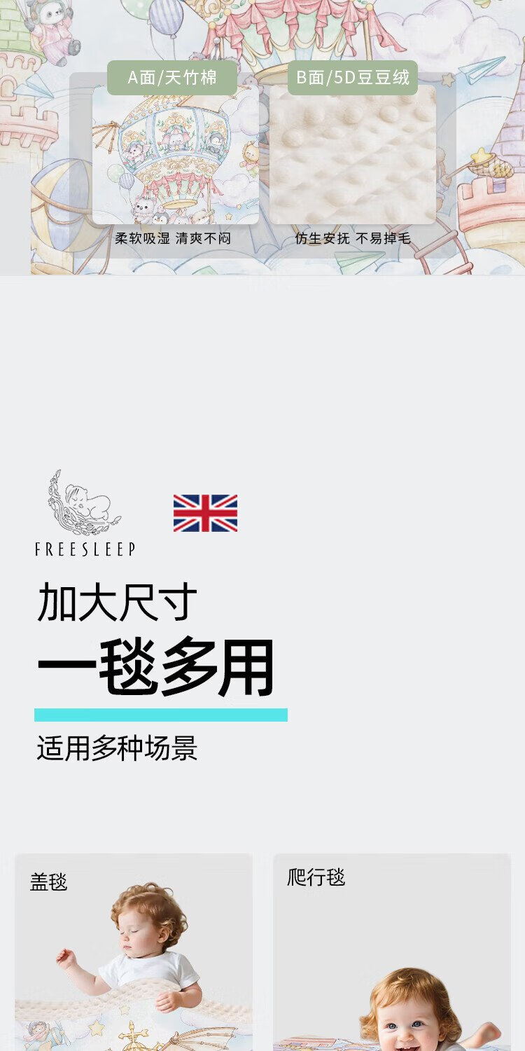 FREESLEEP Newborn Baby Beanie Blanket Baby Children's Cover Blanket Kindergarten Four Seasons Constant Temperature Soothing Blanket Autumn and Winter Thin Style Sky City 7A Antibacterial Gift Box Style 110*140