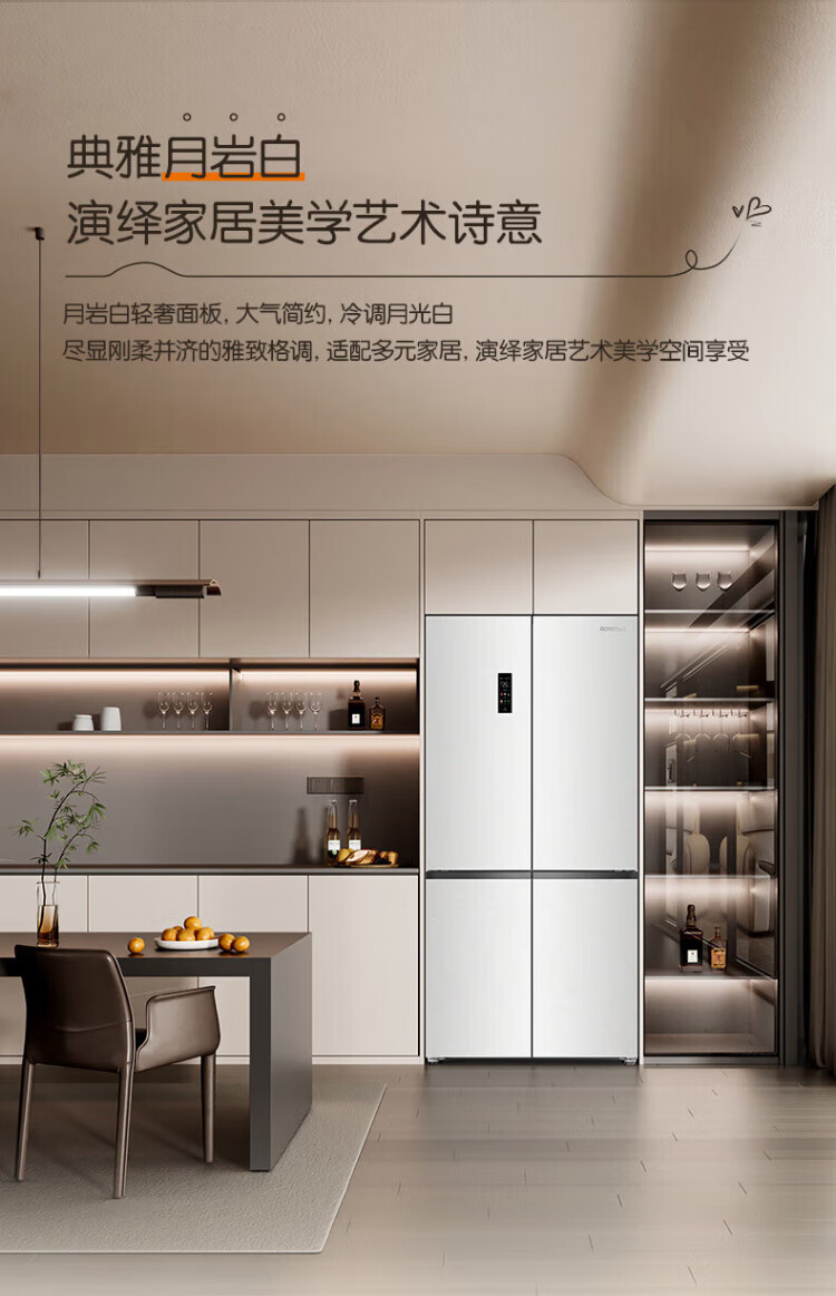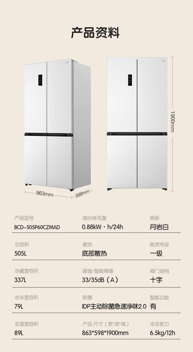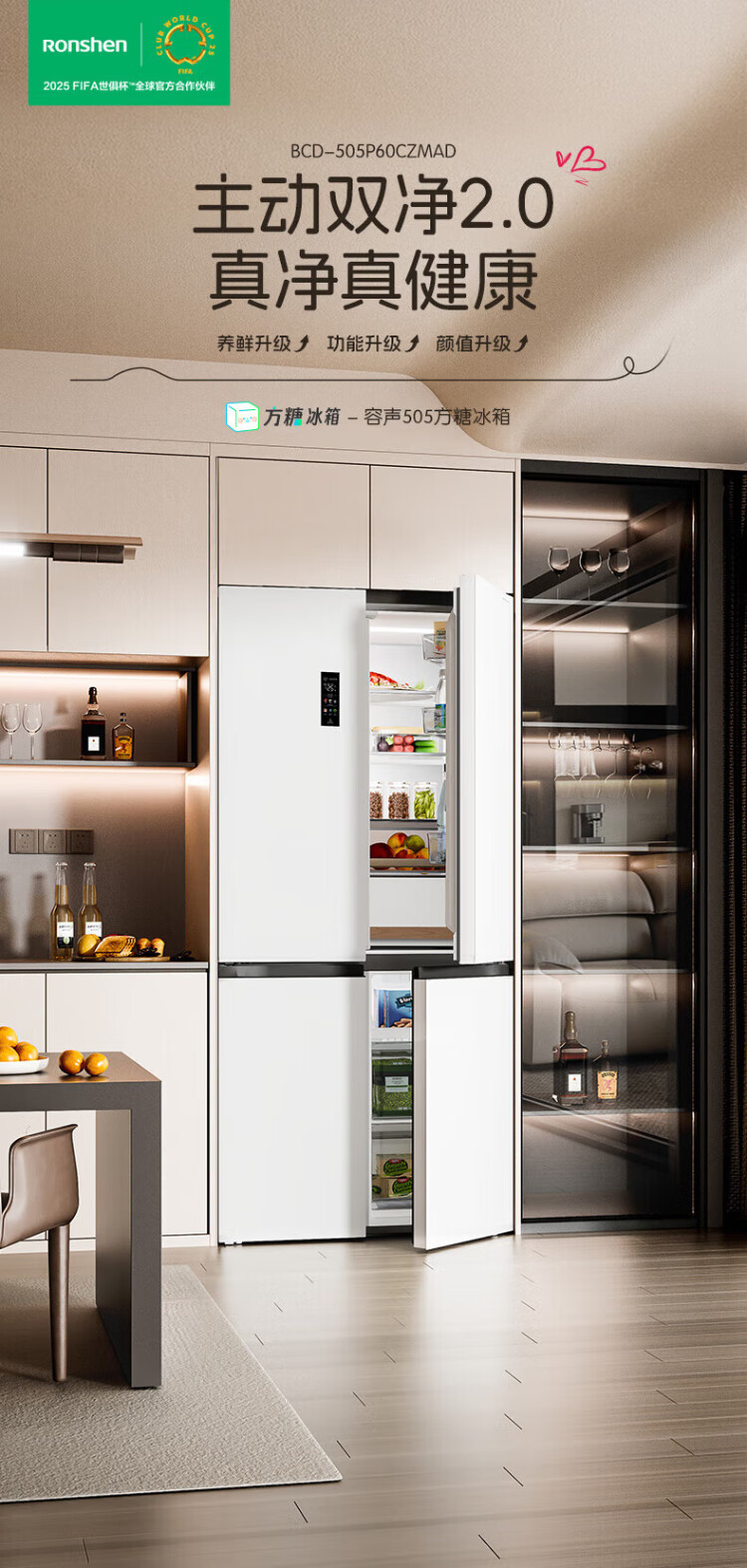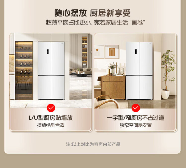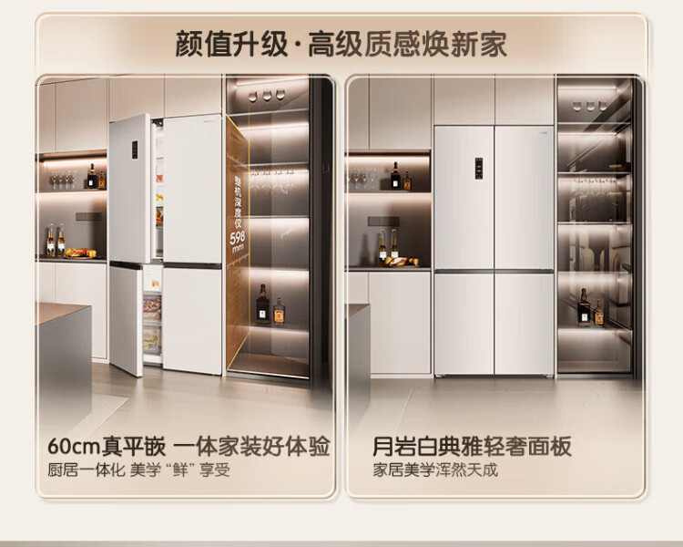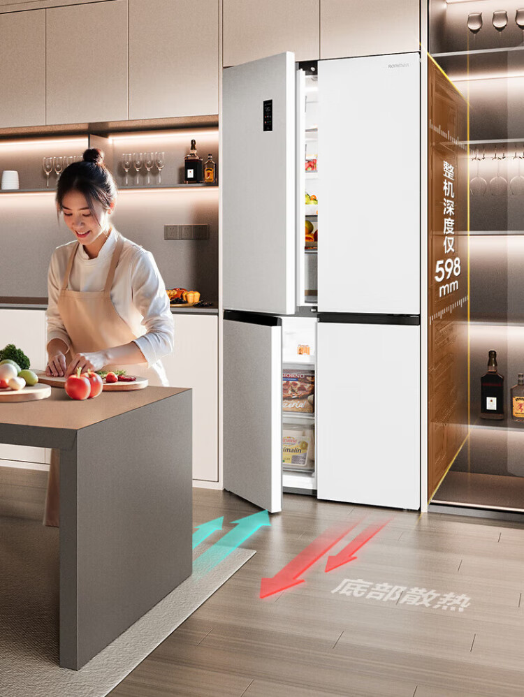 Rongsheng Cube Sugar 505 Active Dual Purifier Dual System Cross Four-Door Ultra-Thin Zero Embedded Refrigerator Household Ice Making Level One Energy Efficiency BCD-505P60CZMAD White National Subsidy Active Sterilization Dual Purifier 505L Dual System + Ultra-Thin Flat Embedded