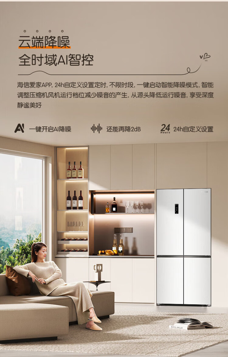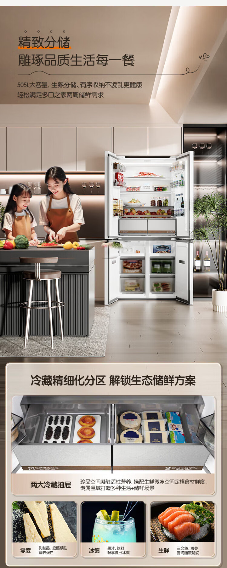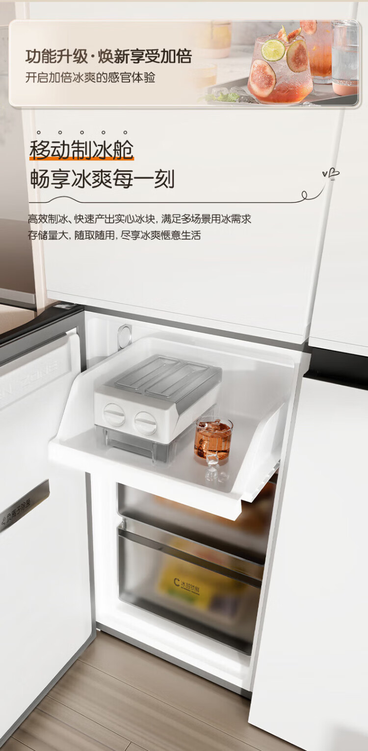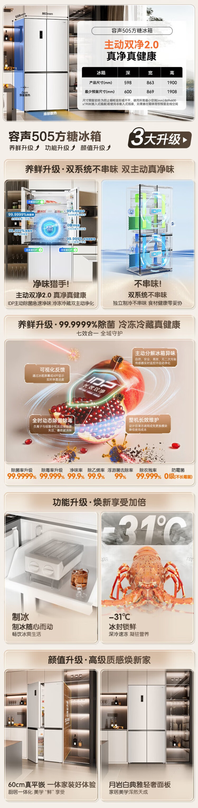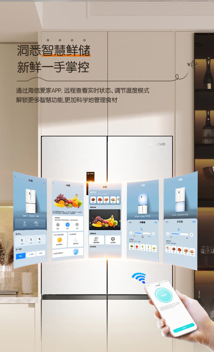 Rongsheng Cube Sugar 505 Active Dual Purifier Dual System Cross Four-Door Ultra-Thin Zero Embedded Refrigerator Household Ice Making Level One Energy Efficiency BCD-505P60CZMAD White National Subsidy Active Sterilization Dual Purifier 505L Dual System + Ultra-Thin Flat Embedded