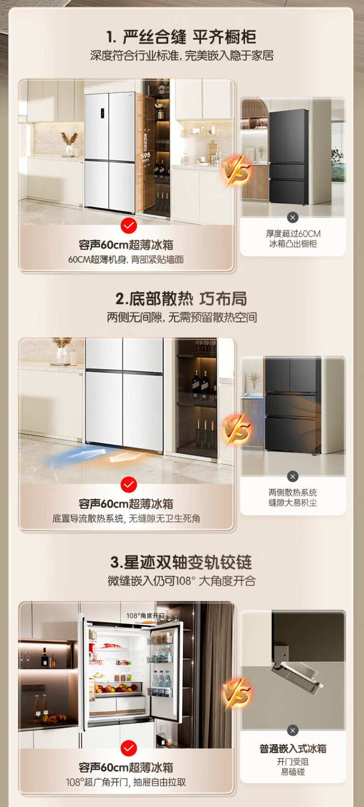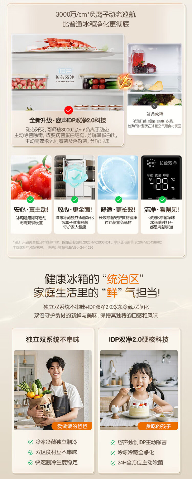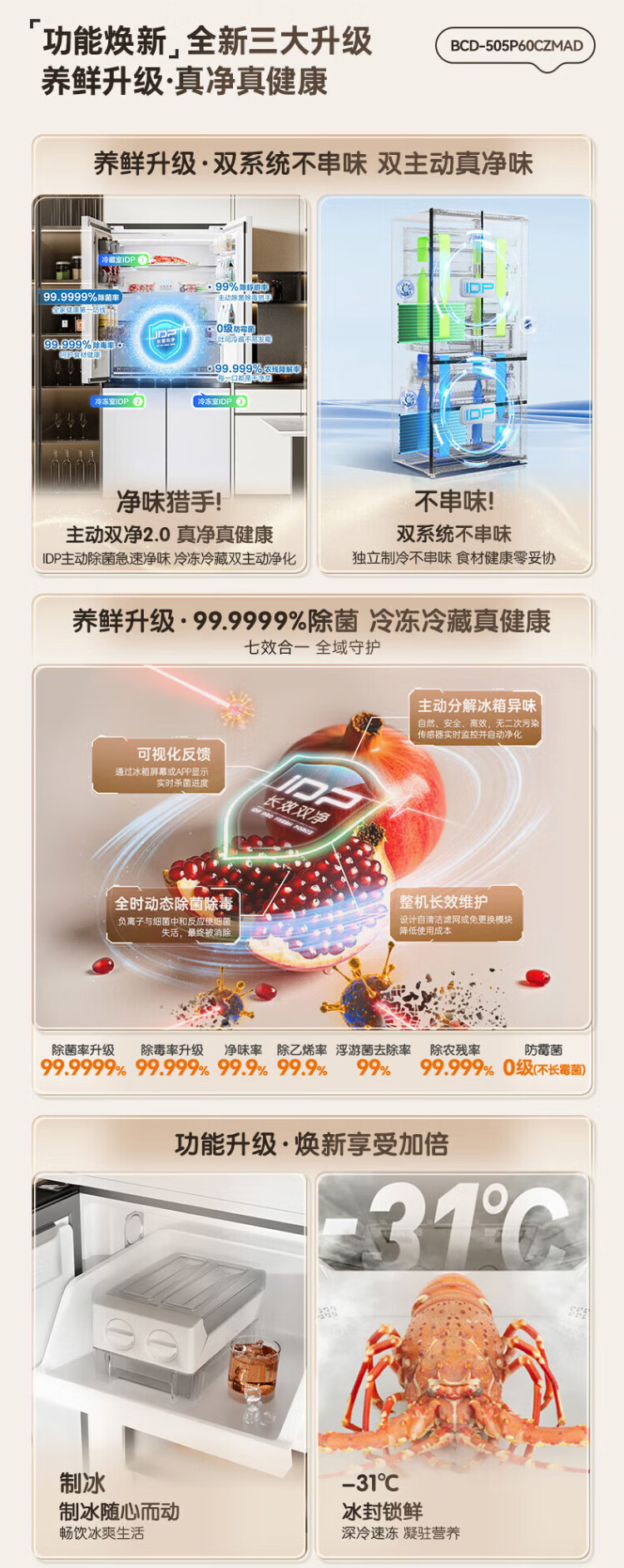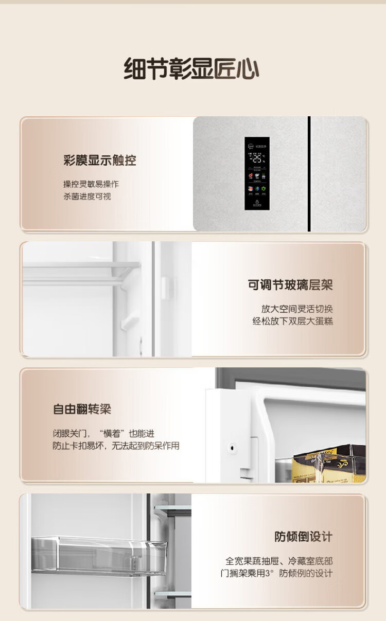 Rongsheng Cube Sugar 505 Active Dual Purifier Dual System Cross Four-Door Ultra-Thin Zero Embedded Refrigerator Household Ice Making Level One Energy Efficiency BCD-505P60CZMAD White National Subsidy Active Sterilization Dual Purifier 505L Dual System + Ultra-Thin Flat Embedded