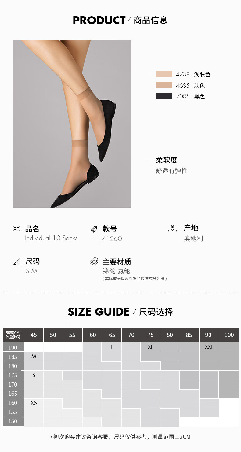Wolford Individual10D Thin Transparent Comfortable Formal Women's Short Stockings 41260 7005_Black S (36-38)