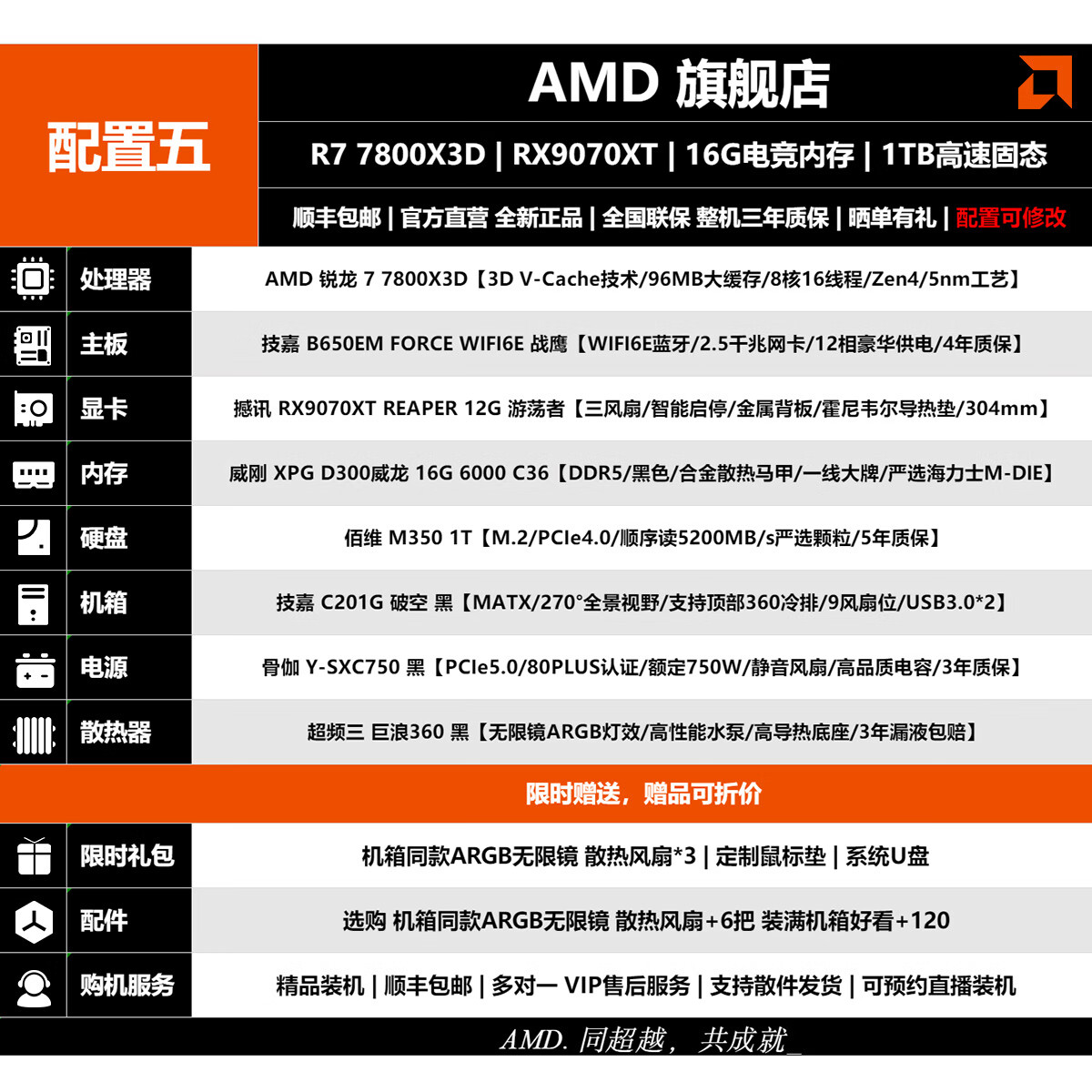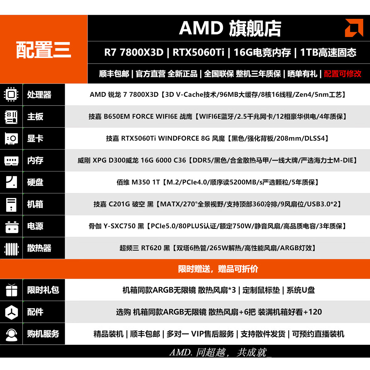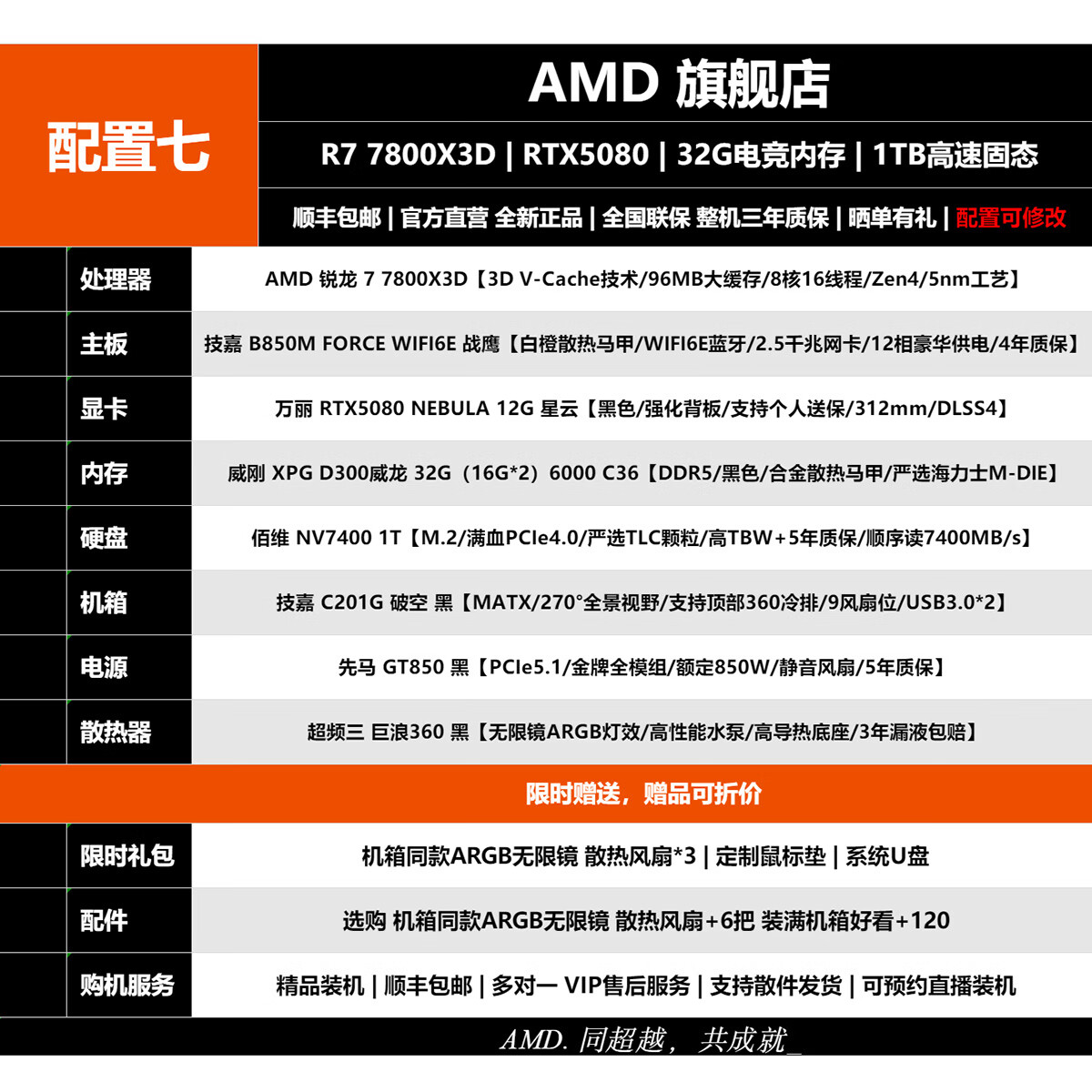 AMD Ryzen R7 7800X3D/RTX5060Ti/RTX5070 host Delta mobile computer host e-sports game ASUS design office AI rendering sea view room host supplementary upgrade package please do not take a single shot