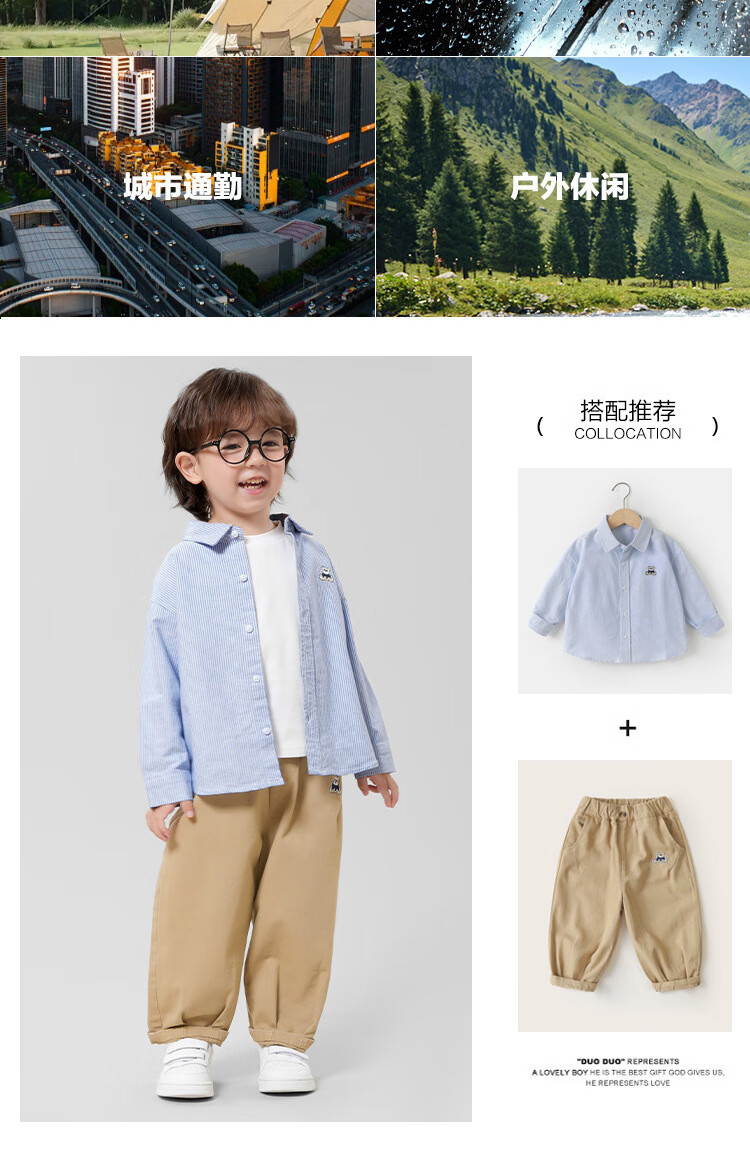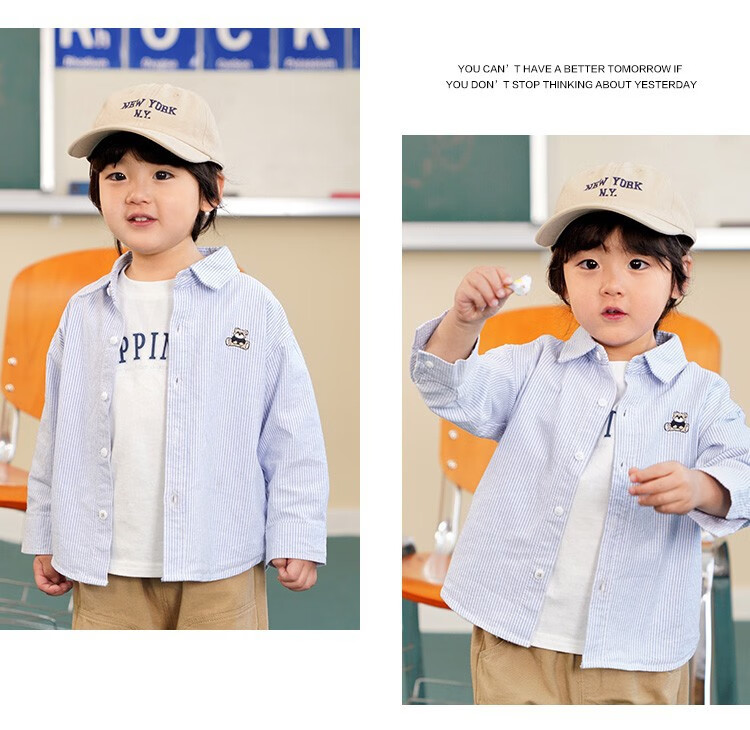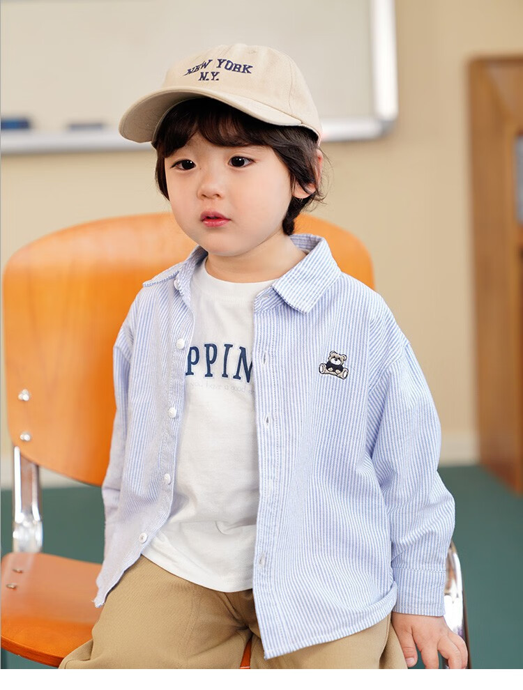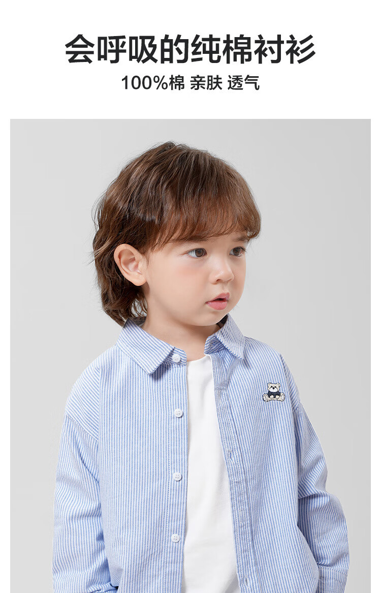 G.duck boys pure cotton long-sleeved shirt spring and autumn new style boys autumn clothing baby children's clothing tops children's shirts autumn jacket hot sale U16020 blue stripes 90 recommended height 80-90cm 1 and a half years old - 2 years old