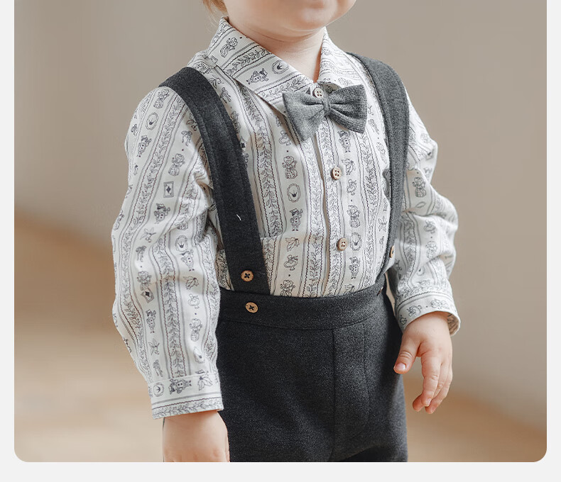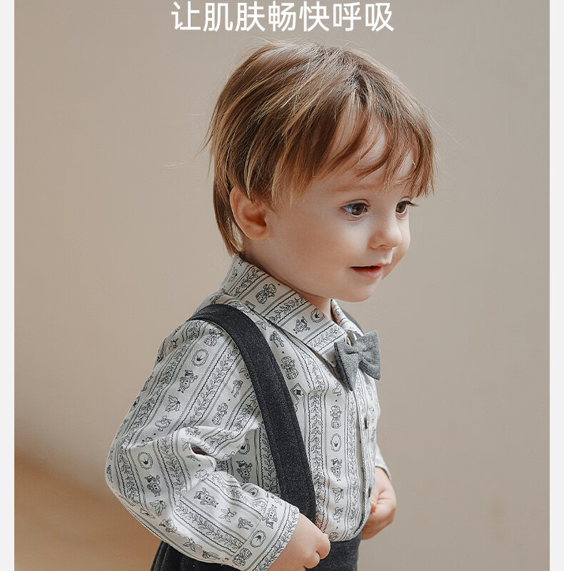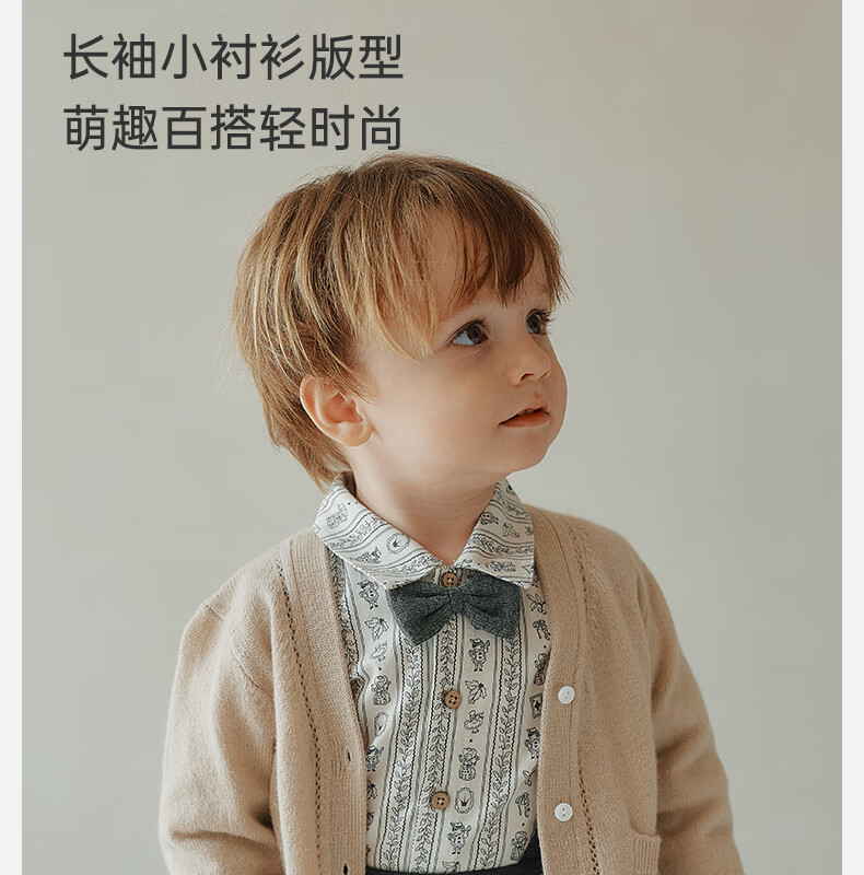 OAK FAMILY autumn baby boy long-sleeved shirt one-year-old boy cotton light velvet top jacket Magic Tea Party (dark blue) 90