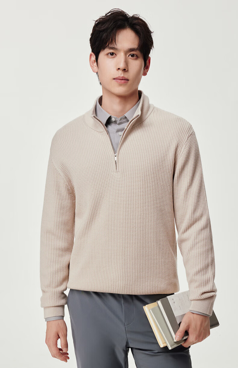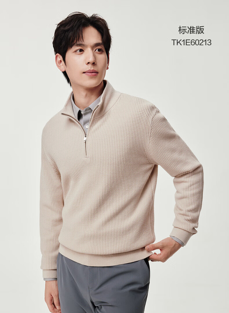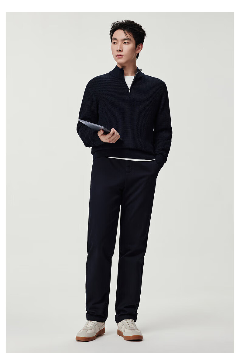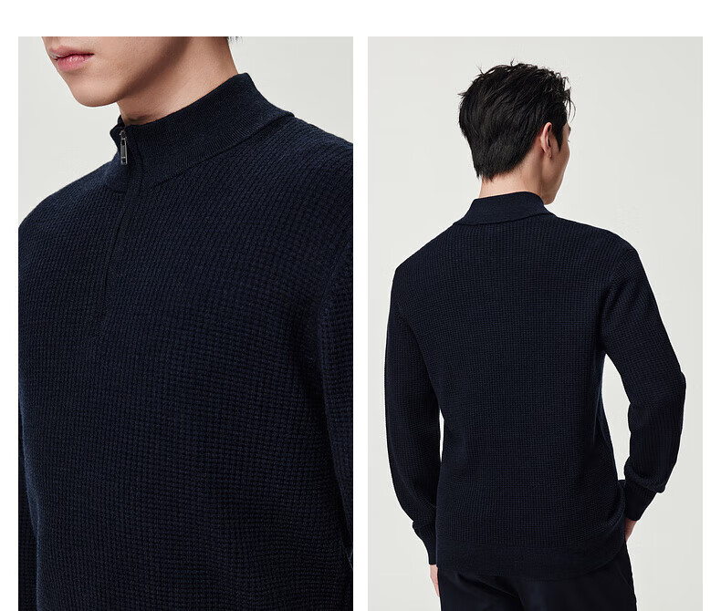 Jiumuwang Men's Machine Washable Wool Sweater Men's Spring New Style Locking Warmth Half-High Zipper Collar Inside Standard Version + Navy Blue + TK1EV60223 L 175/96A(50)