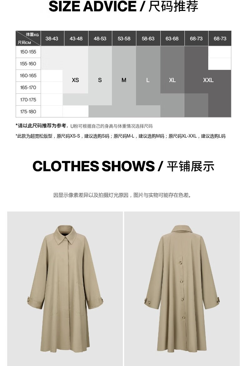 UR new autumn women's retro modern large lapel ultra-loose windbreaker jacket ULG150003 Khaki (loose) S (XS-S)
