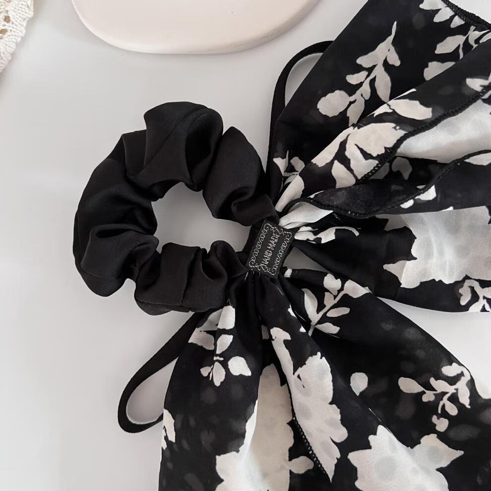 Garenbei French summer hair accessories new elegant flower ribbon bow retro large intestine hair ring high-end headwear headband for women ink hair ring white 1