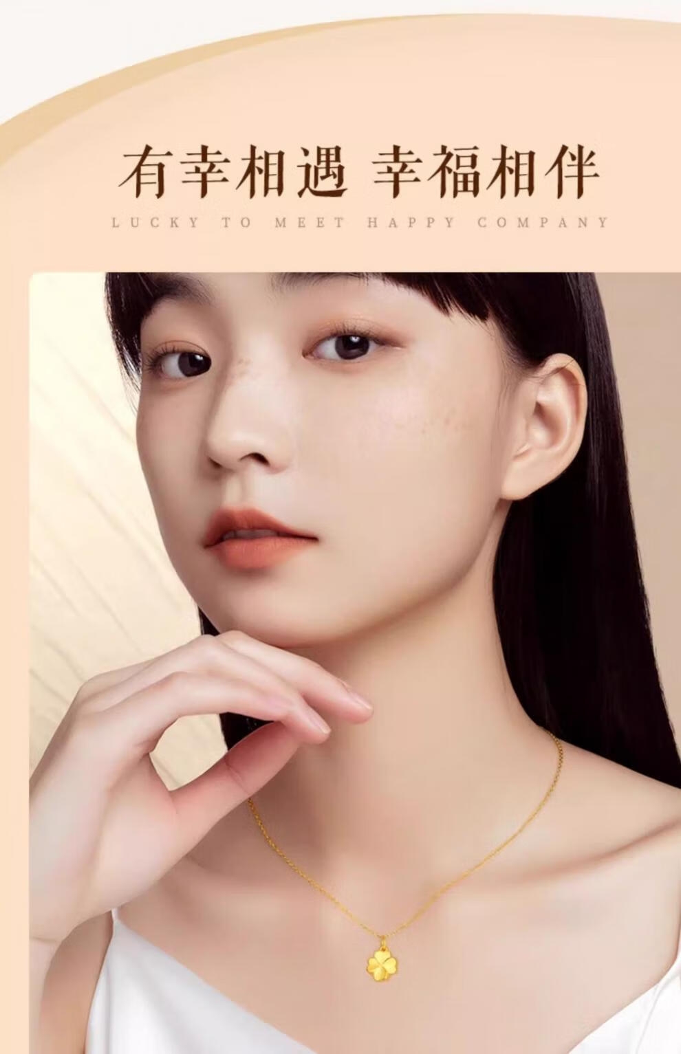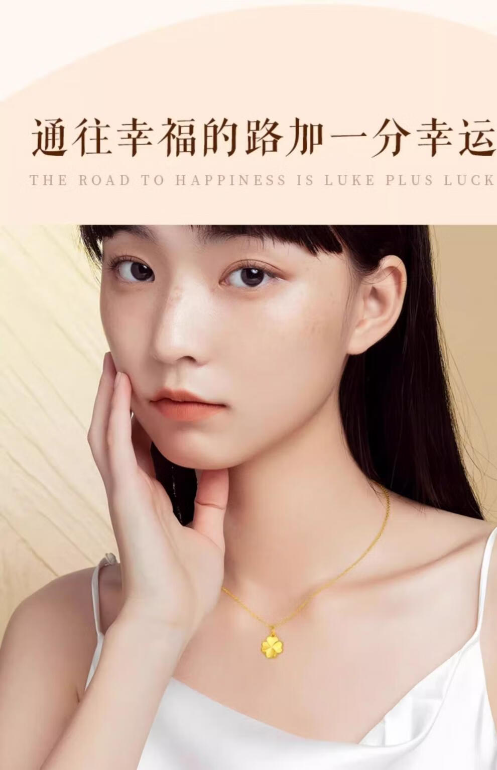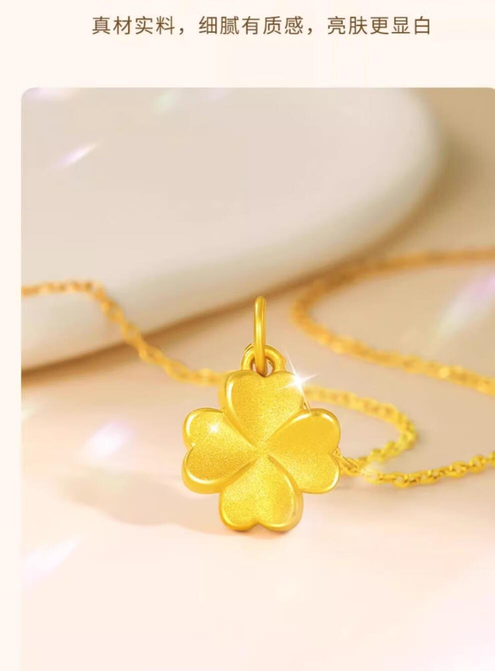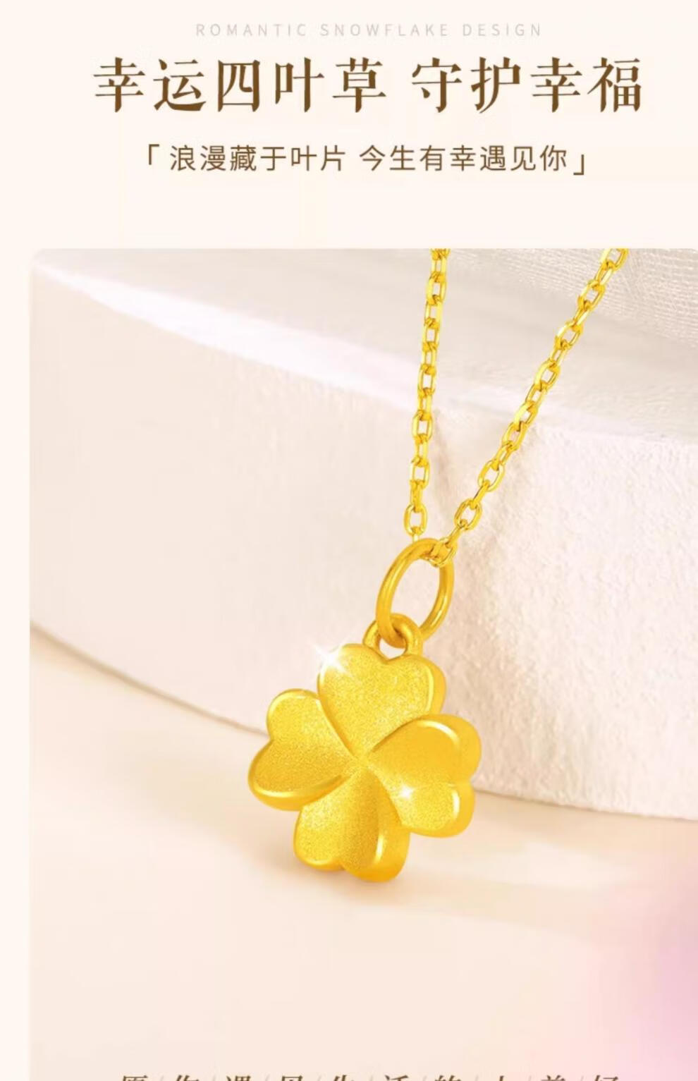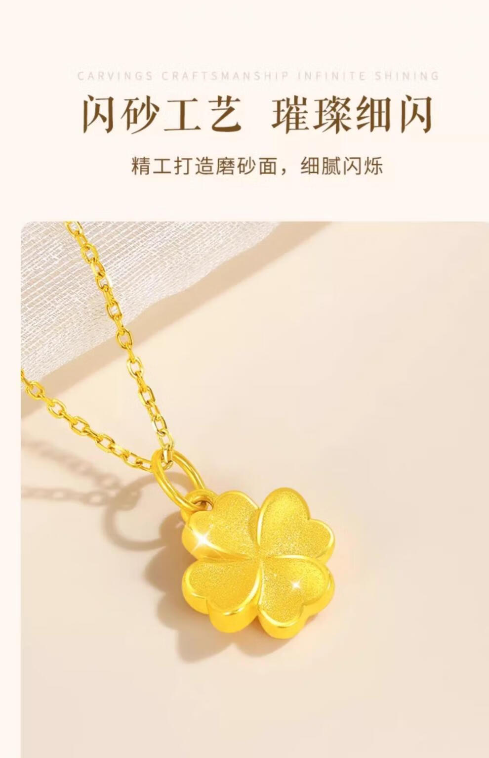 Chuhuang 9999 pure gold-plated silver-plated four-leaf clover pendant gold-plated silver transfer bead necklace as a birthday gift for girlfriend and best friend, four-leaf clover pendant 0.3g