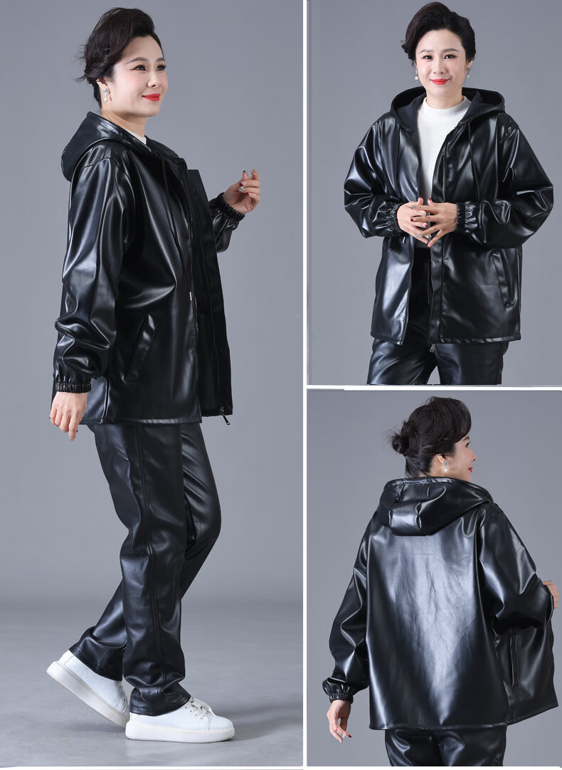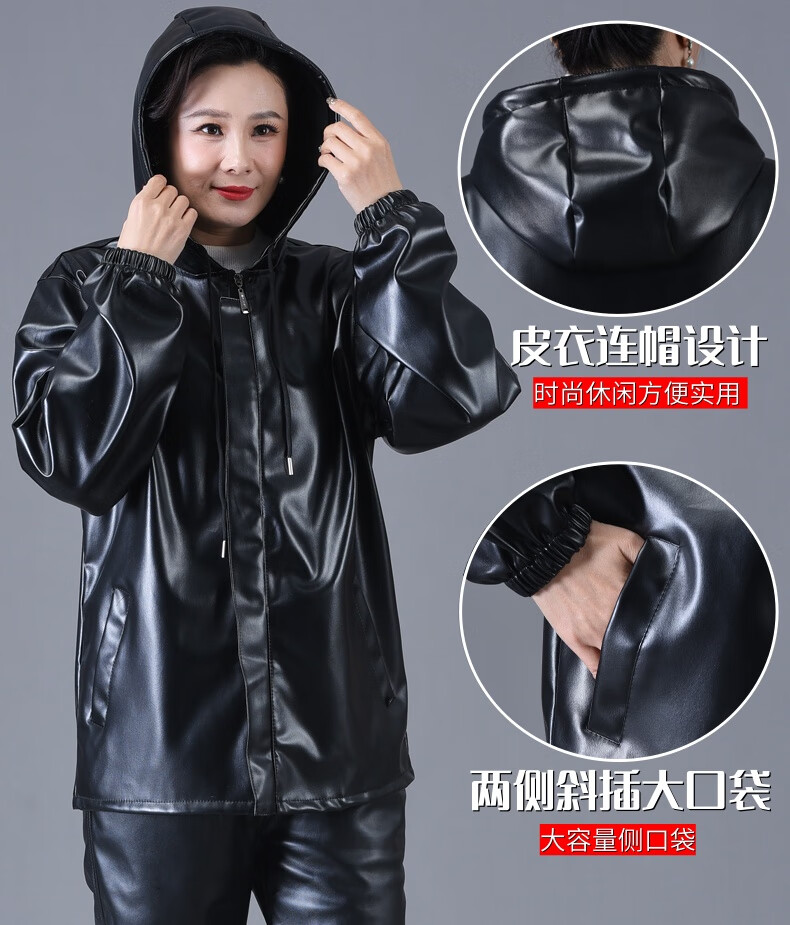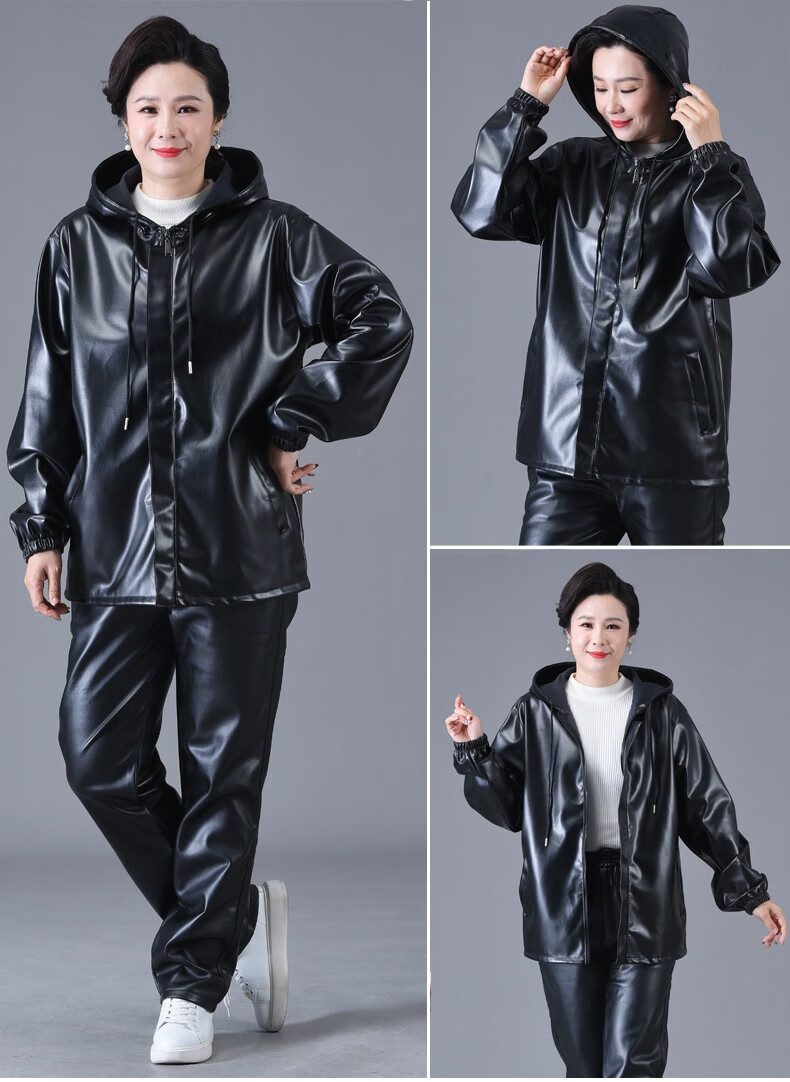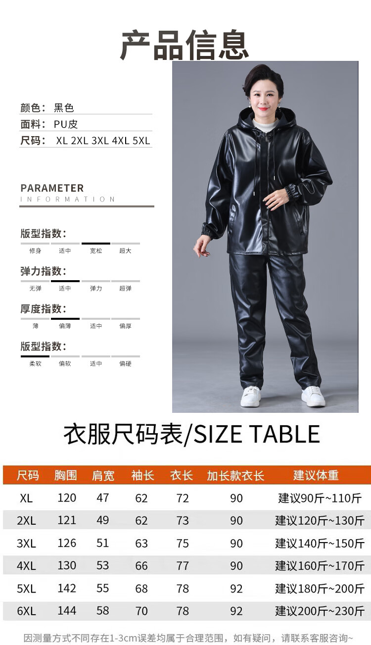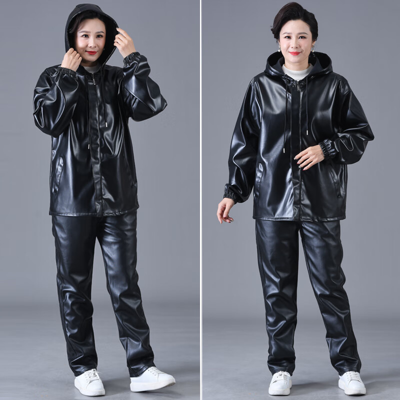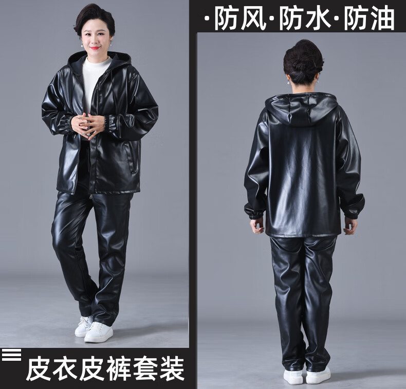 Jinghe waterproof leather work clothes suit for men and women, slaughterhouse oil-proof pu leather coveralls, car wash, electric motorcycle labor protection leather pants, single leather top + leather pants (suit) 3XL size (suitable for 140-150 Jin Jin equals 0.5 kg)