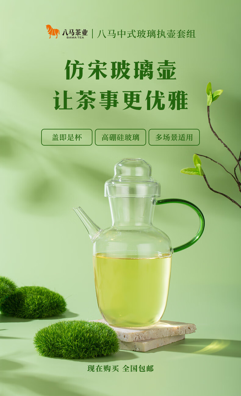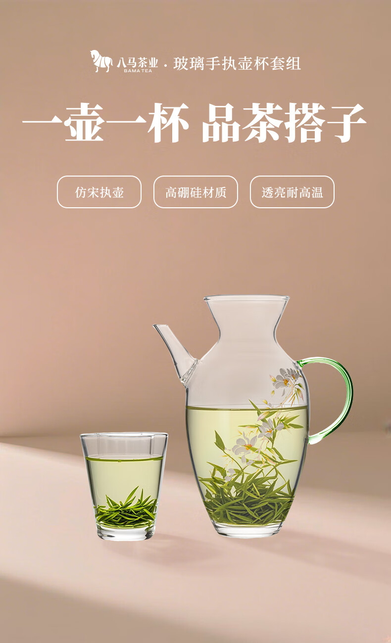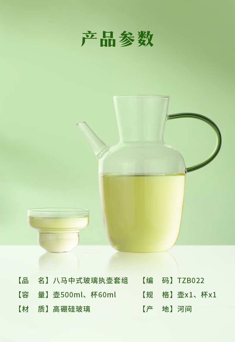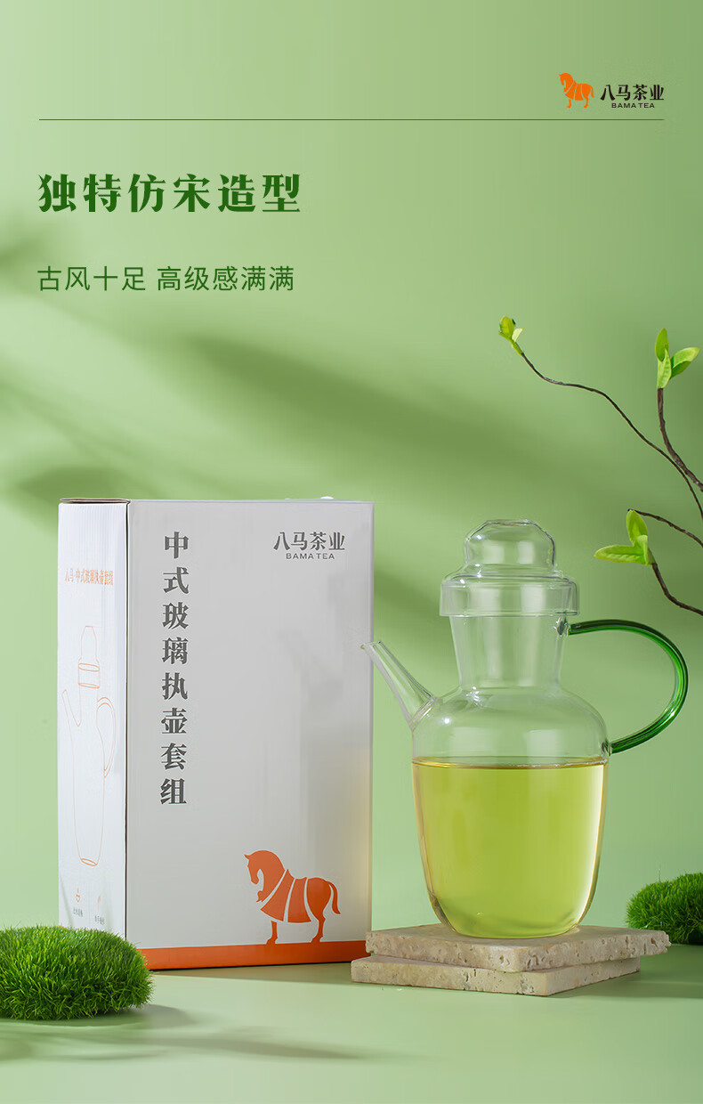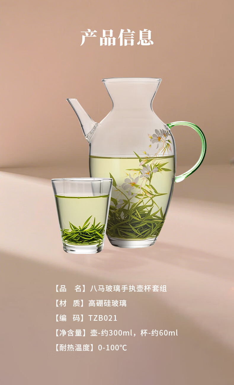 Bama Tea Industry Handheld Pot Tea Set One Pot One Cup Combination High Borosilicate Glass Teapot Tea Cup Suitable for Hot and Cold Pot 300ml + Cup 60ml