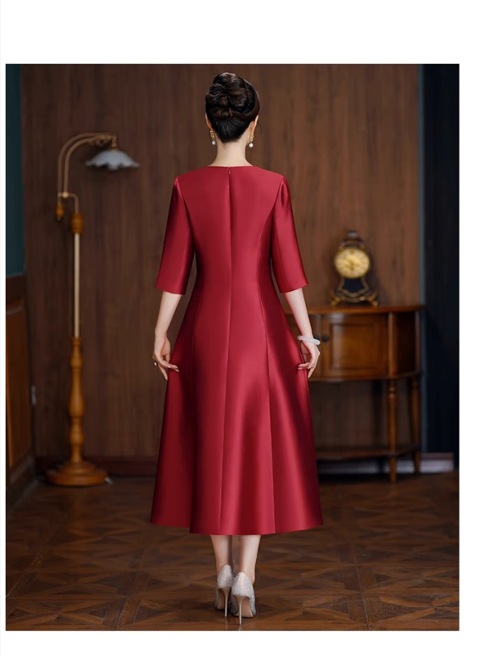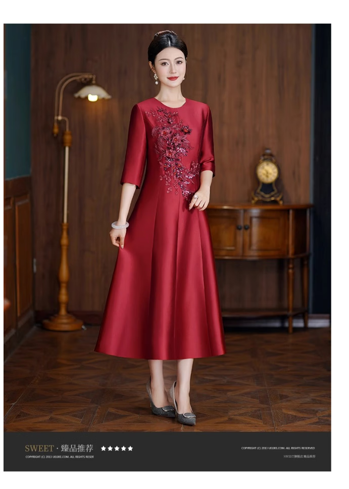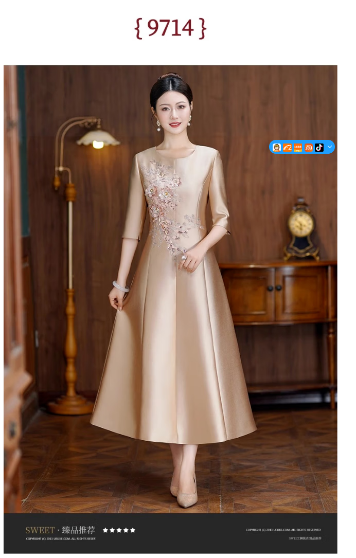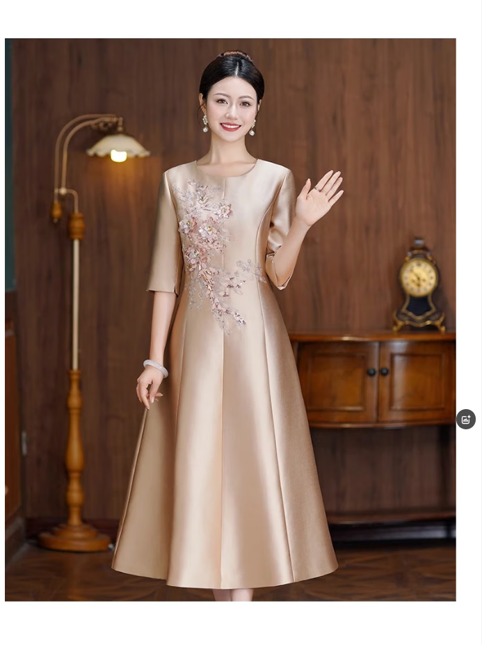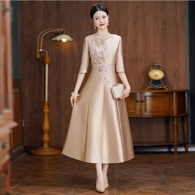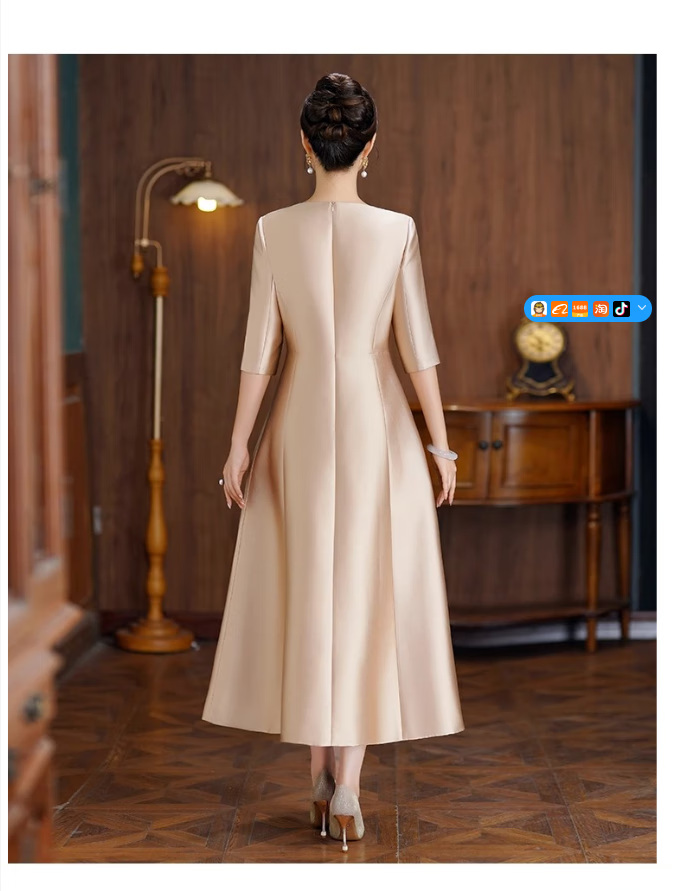 ROMON dress for women in autumn and winter, mother's wedding banquet, waist slimming, noble toasting evening dress, wedding dress, daily wearable dress, champagne color XL 110-120Jin Jin is equal to 0.5 kg
