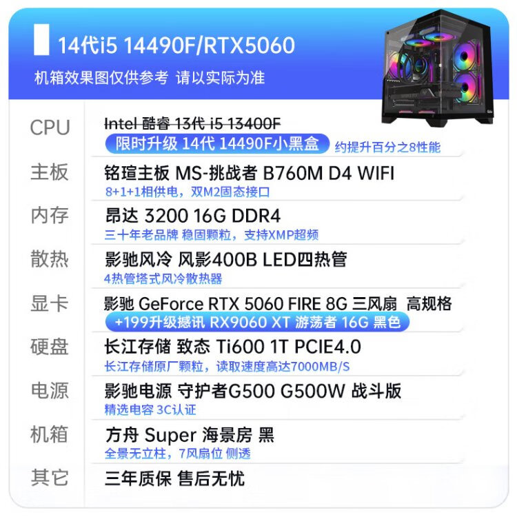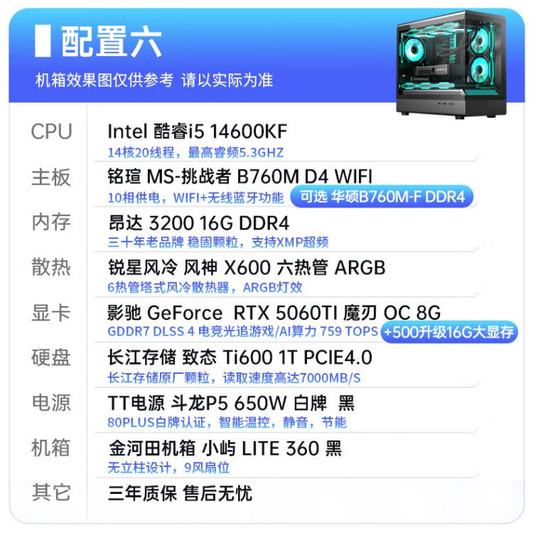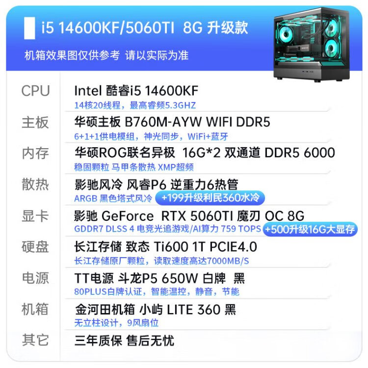 ASUS Family Bucket Core i5 13400F/14600KF+RTX5060 desktop assembly computer console game high-end e-sports independent display live broadcast design rendering complete desktop computer configuration six i5 14600KF+RTX5060TI