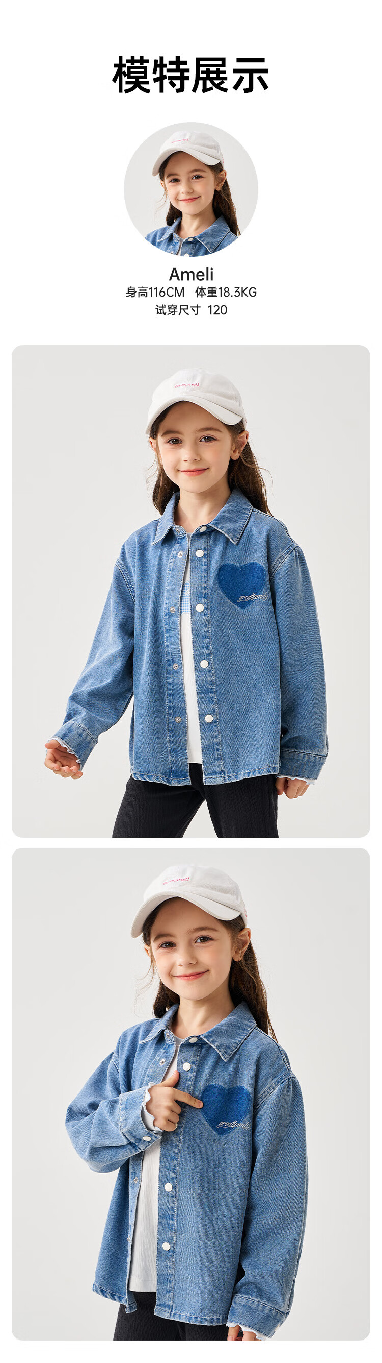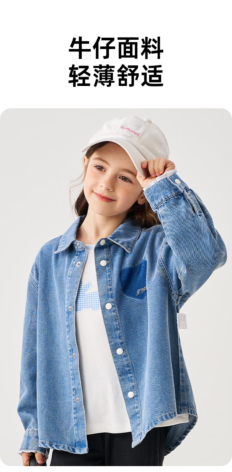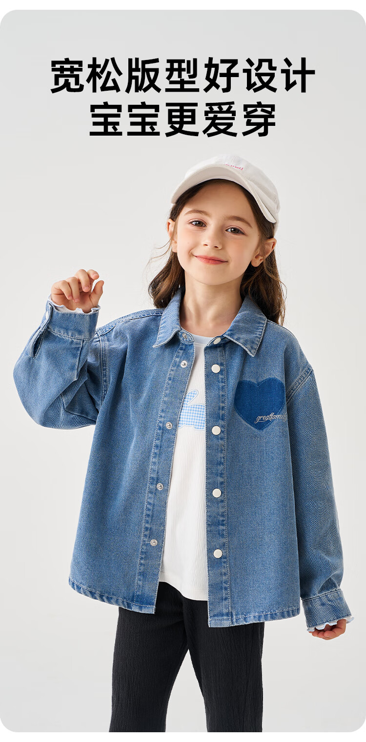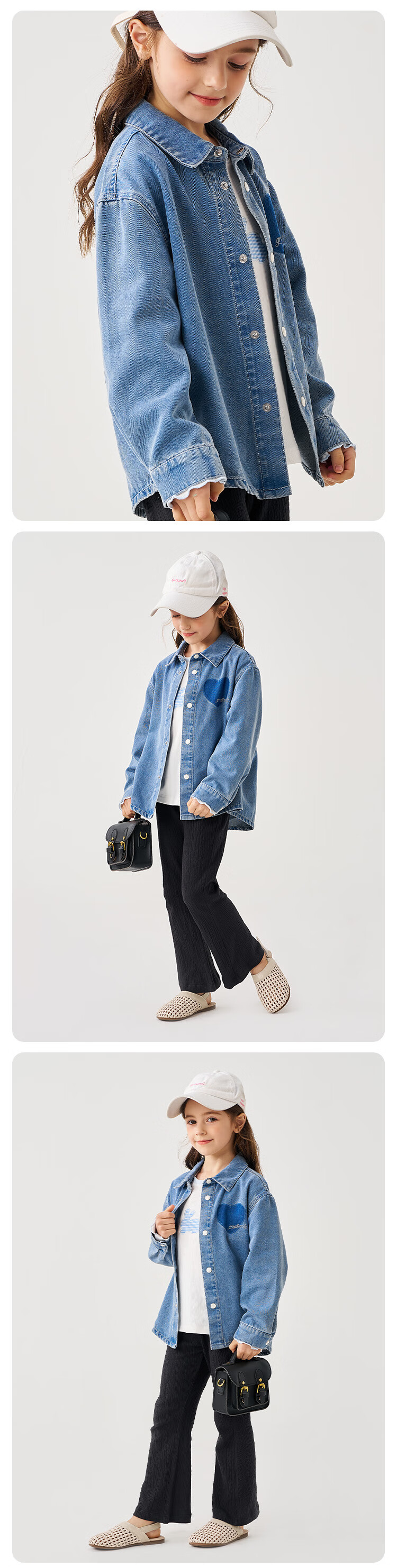 Gloria's 2025 Autumn Girls and Baby Children's Spring and Autumn Denim Shirt Outdoor Casual Jacket Denim Color 100