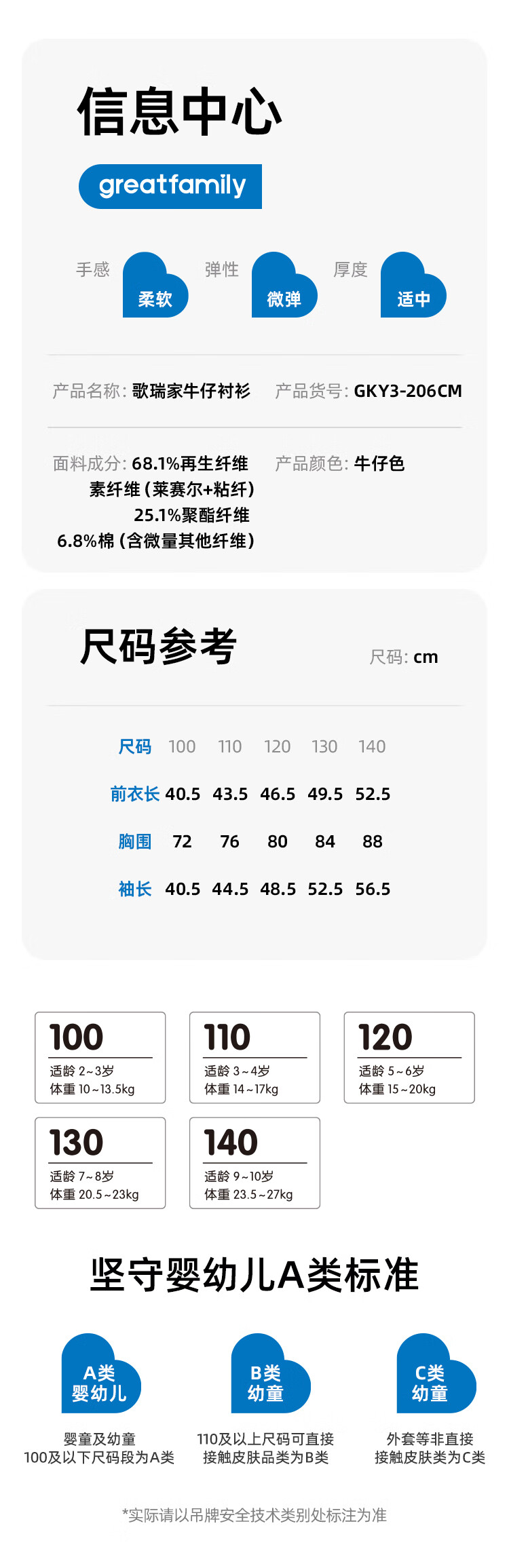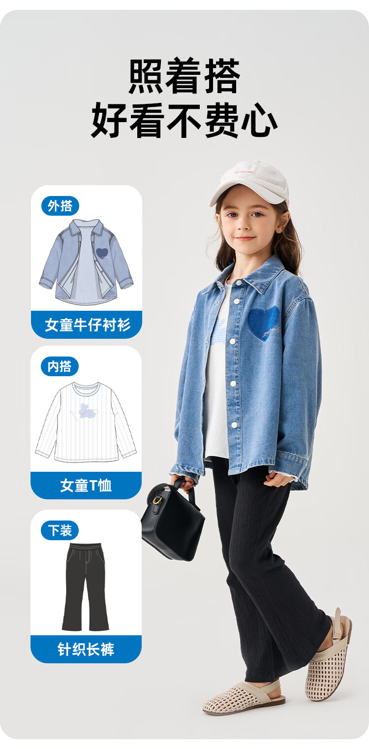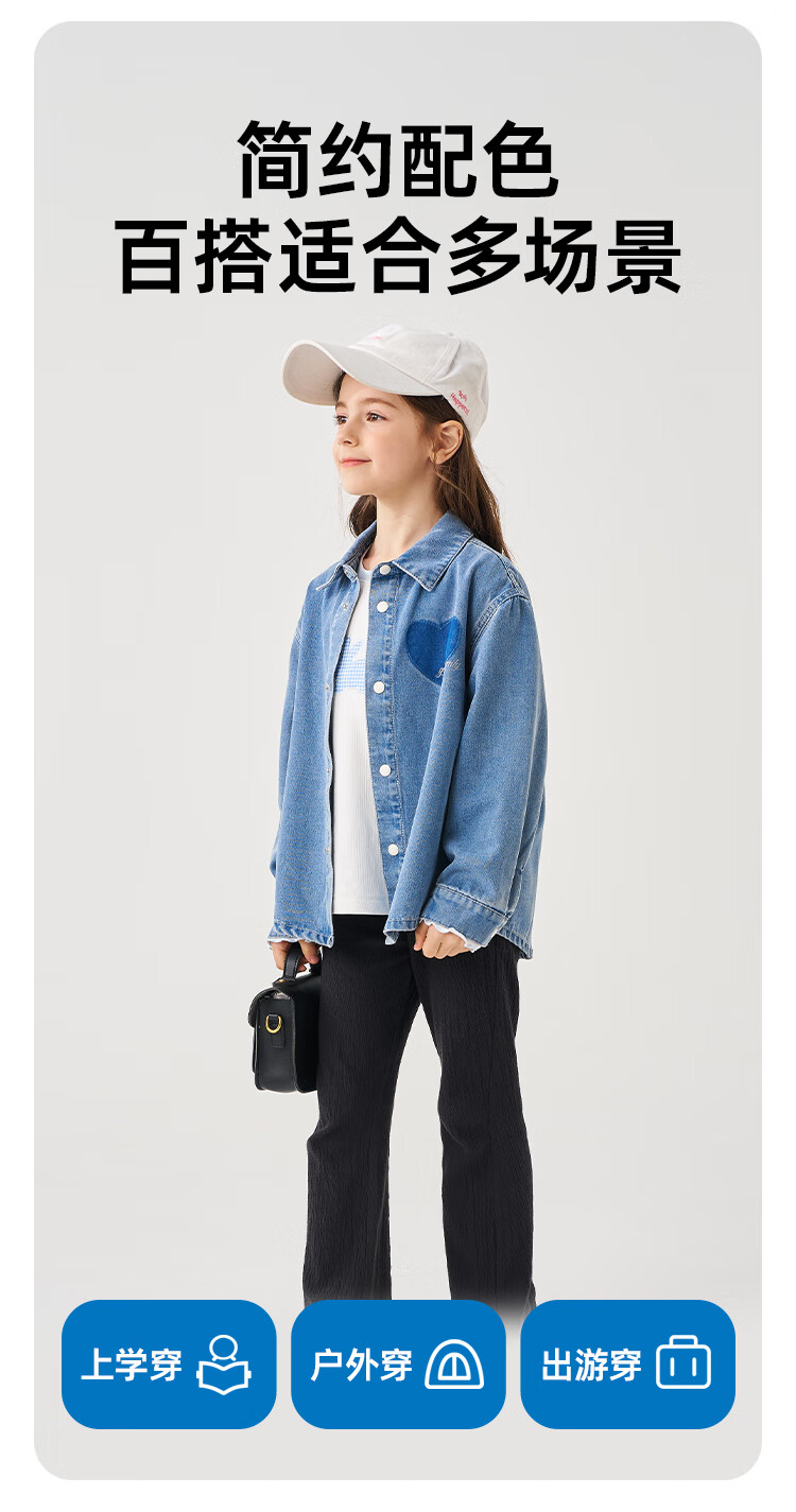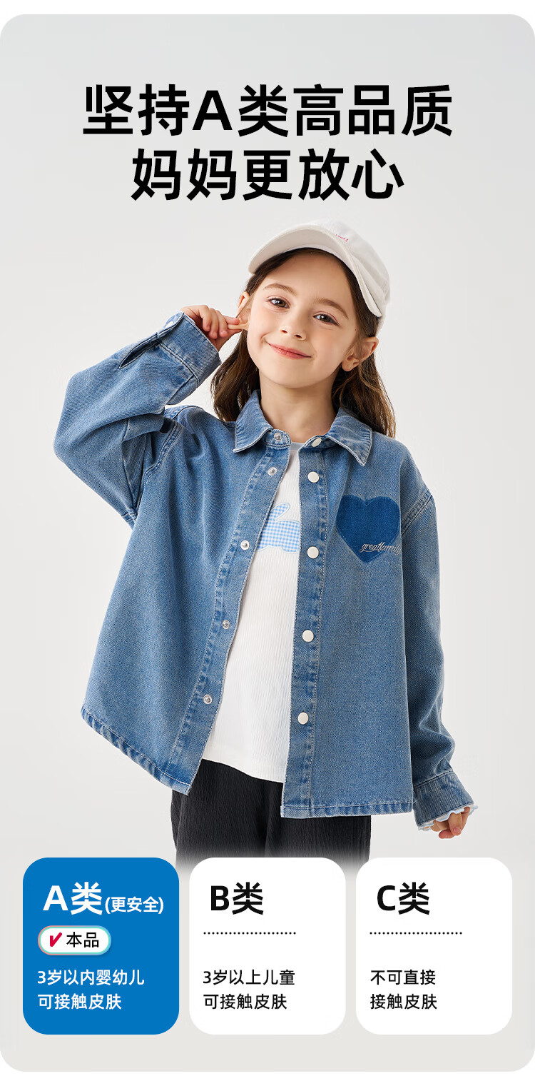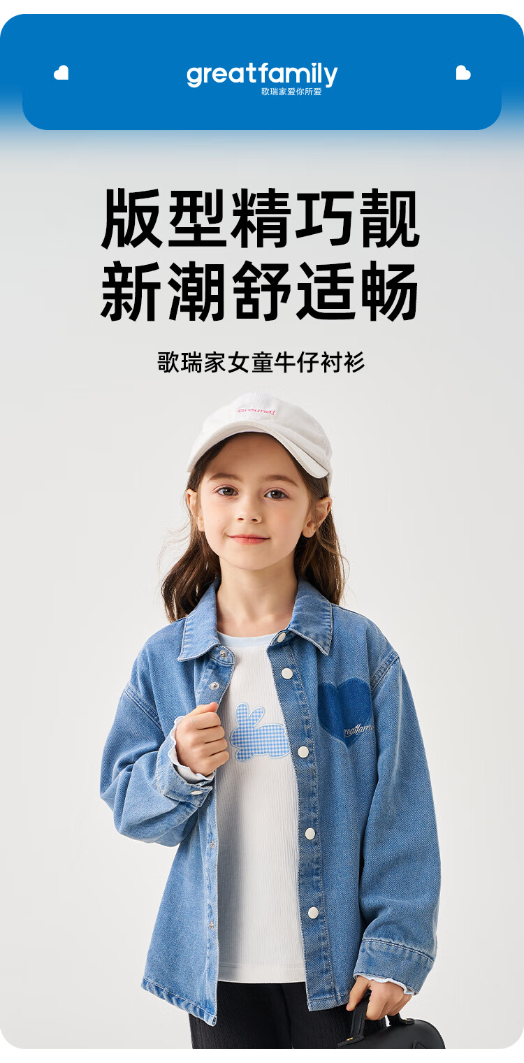 Gloria's 2025 Autumn Girls and Baby Children's Spring and Autumn Denim Shirt Outdoor Casual Jacket Denim Color 100
