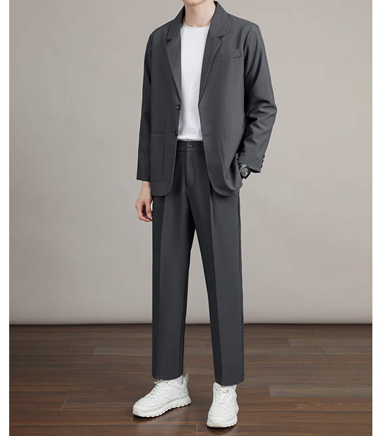 Playboy casual suit men's spring and autumn new light business commuting high-end Korean style handsome suit jacket for men black nine-point suit 2XL recommended 160-180Jin Jin equals 0.5 kg