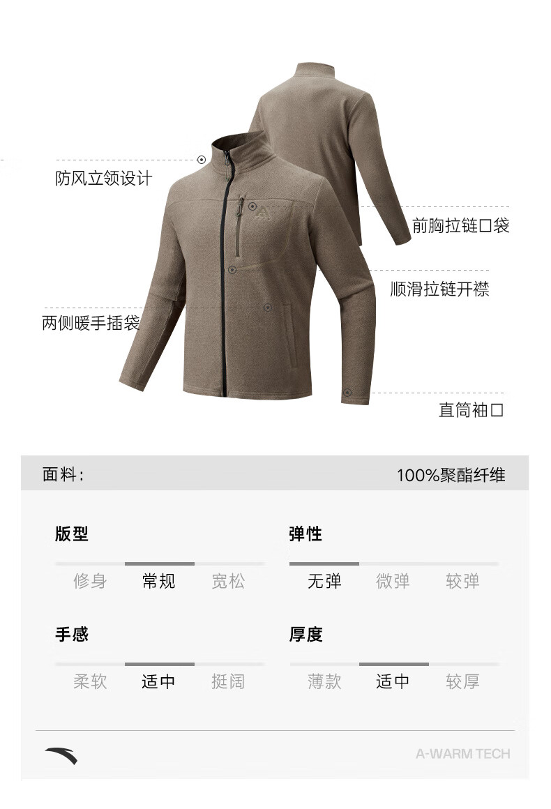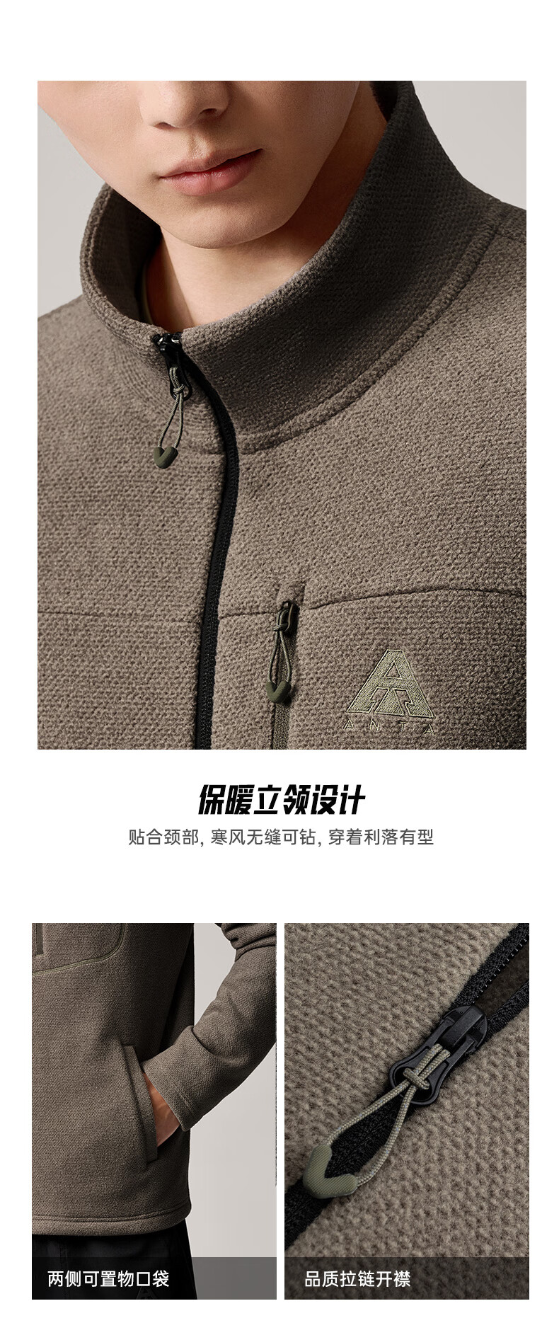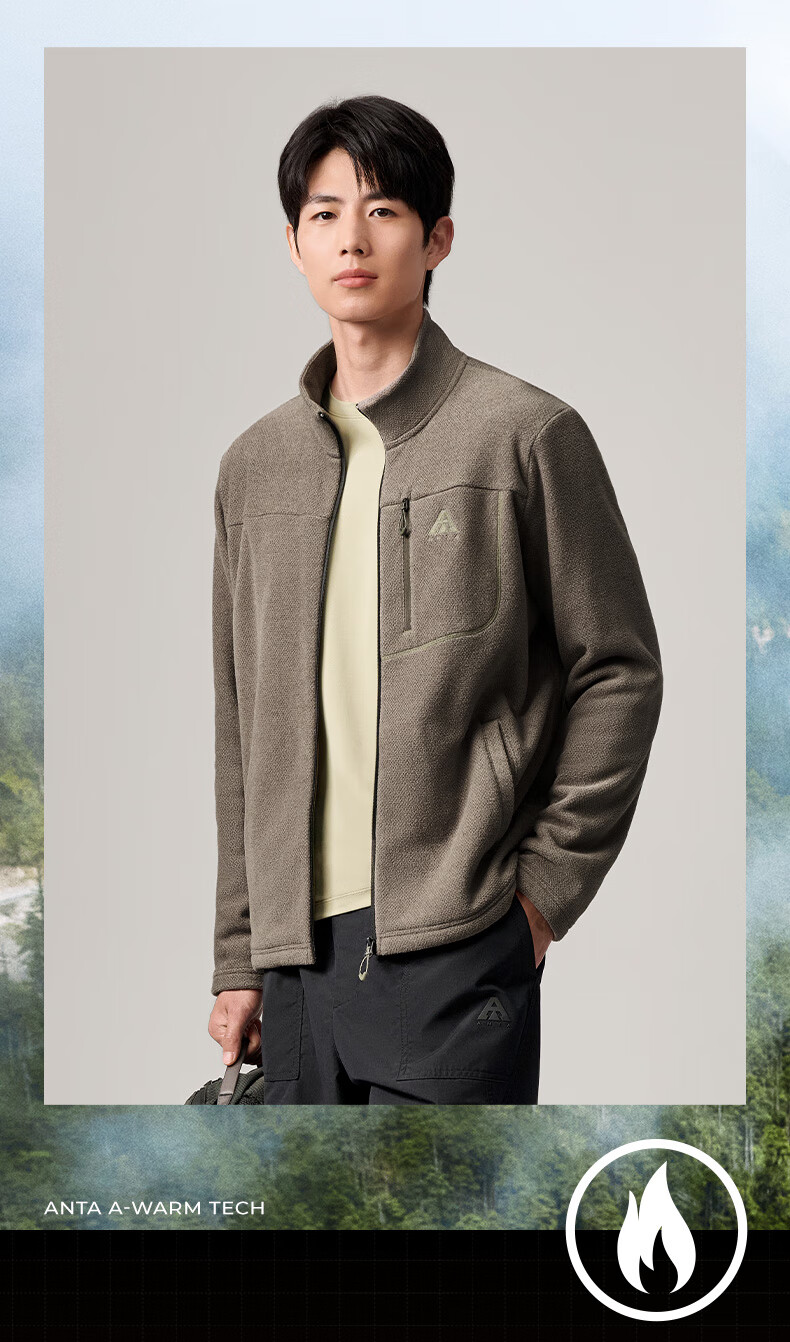 ANTA Fire Shell丨Lightweight Warm Outdoor Stand Collar Fleece Jacket Men's 25 New Antistatic Jacket Jacket Tops Pine Green-2 M (Male 170)