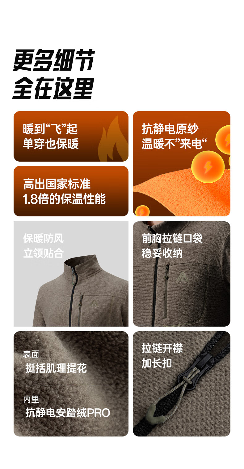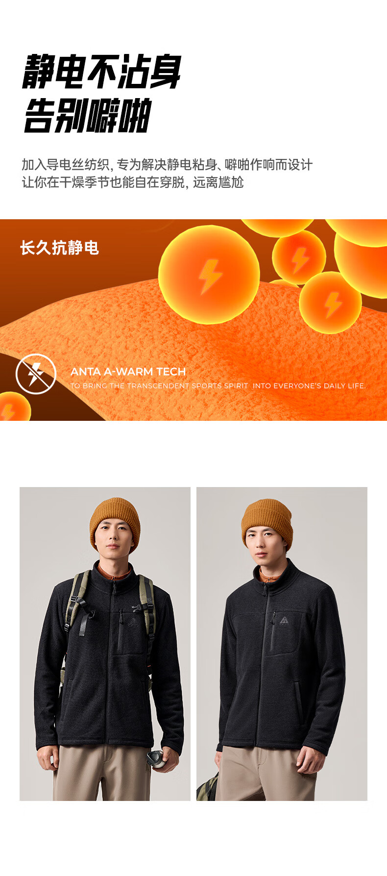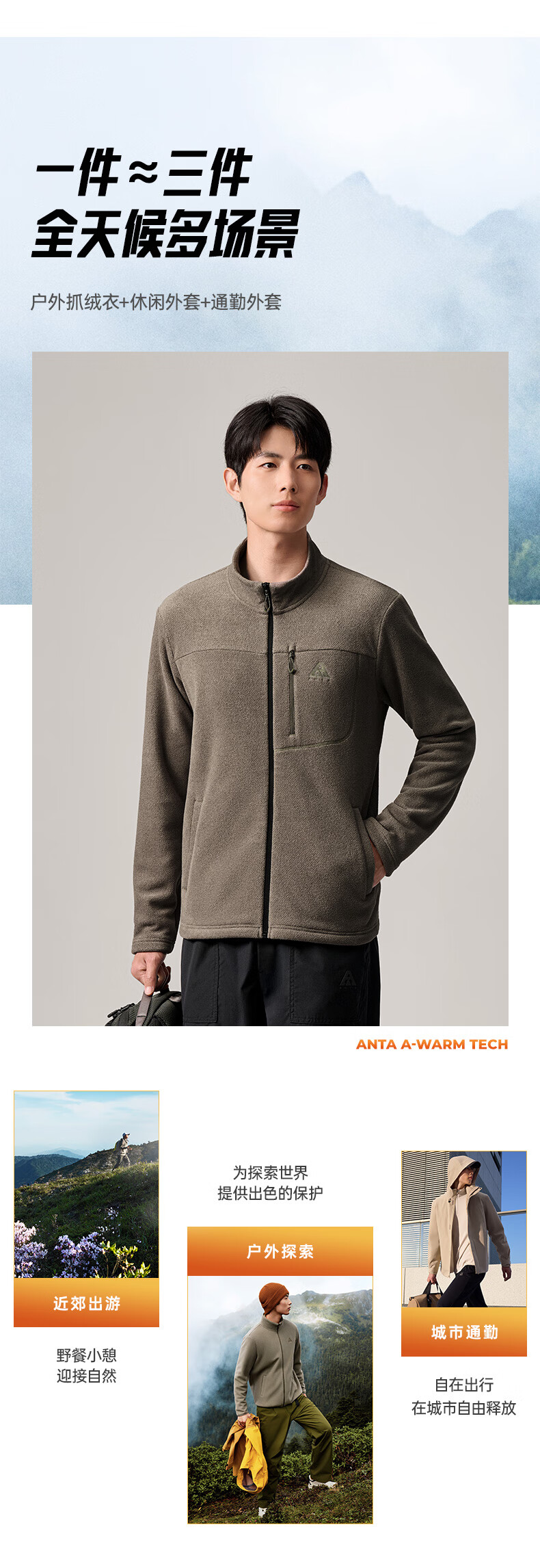 ANTA Fire Shell丨Lightweight Warm Outdoor Stand Collar Fleece Jacket Men's 25 New Antistatic Jacket Jacket Tops Pine Green-2 M (Male 170)
