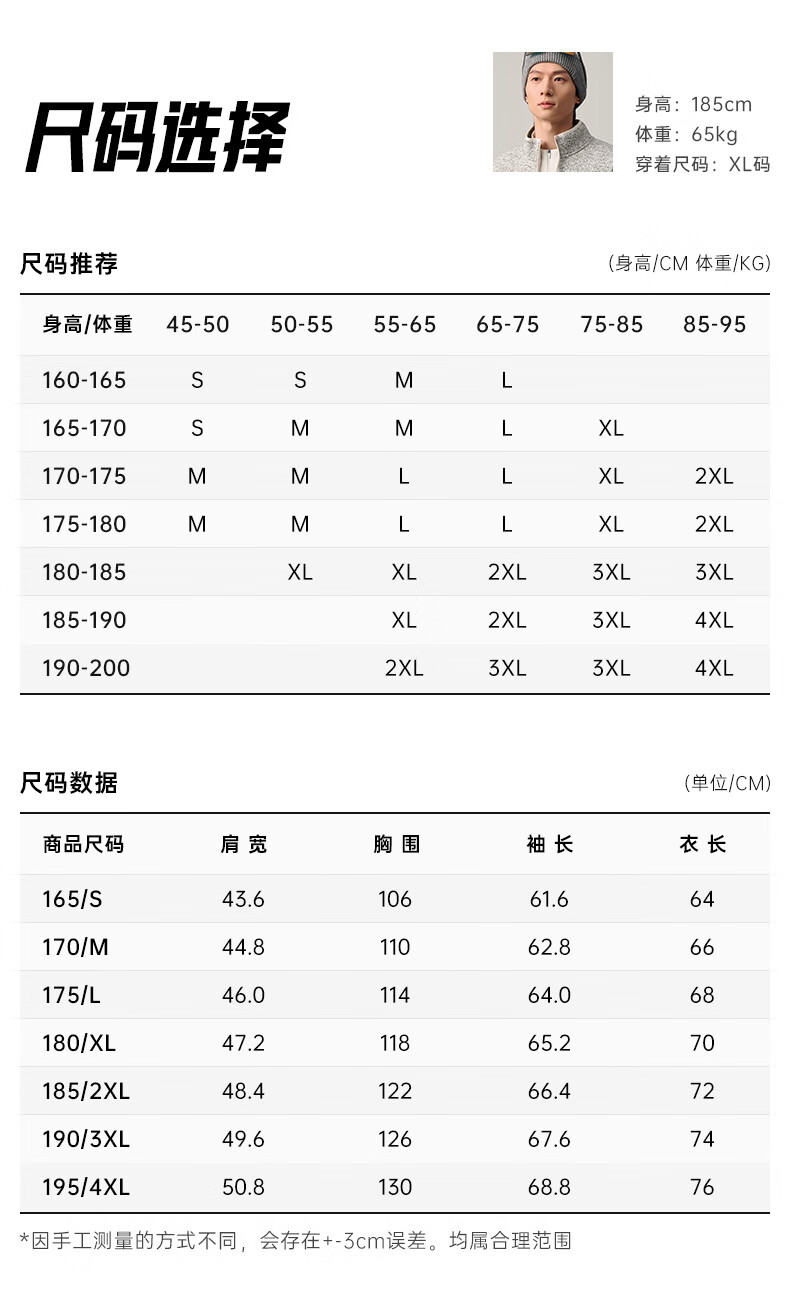 China (cm) 165 / 88-90 170 / 96-98 175 / 108-110 180 / 118-122 185 / 126-130