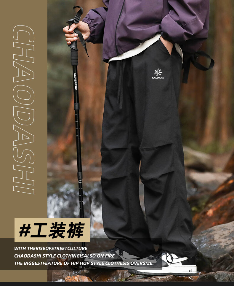 Keile Stone Mint Overalls Casual Pants Men's Outdoor Mountain Climbing American Straight Pants Loose Paratrooper Windproof and Waterproof Trendy Brand Black L 110-130Jin Jin is equal to 0.5 kg