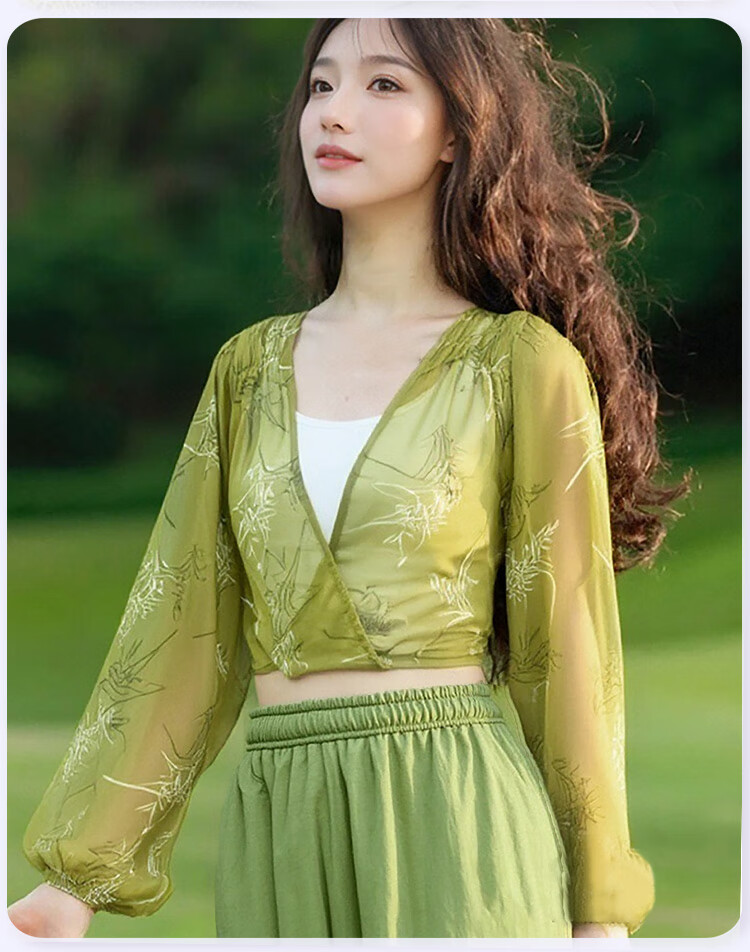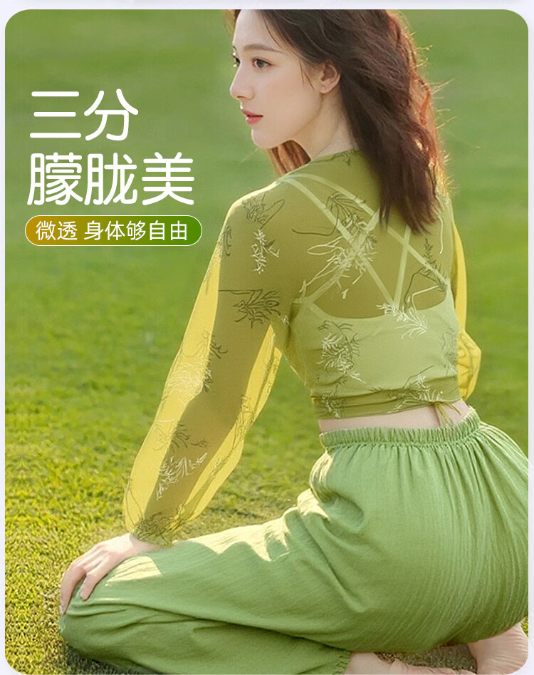 Shuangxiu 2025 new yoga clothing set, loose healing Zen bloomers, Pilates training, fitness long-sleeved tops for women, Moya bamboo blouse + gray blue pants L 108-117