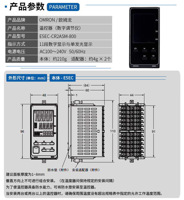 Omron (OMRON) OMRON E5EC thermostat series Temperature controller E5EC-CR2ASM-800 E5EC-QR2ASM-820