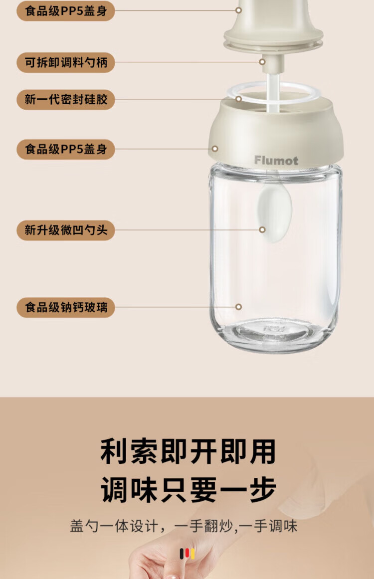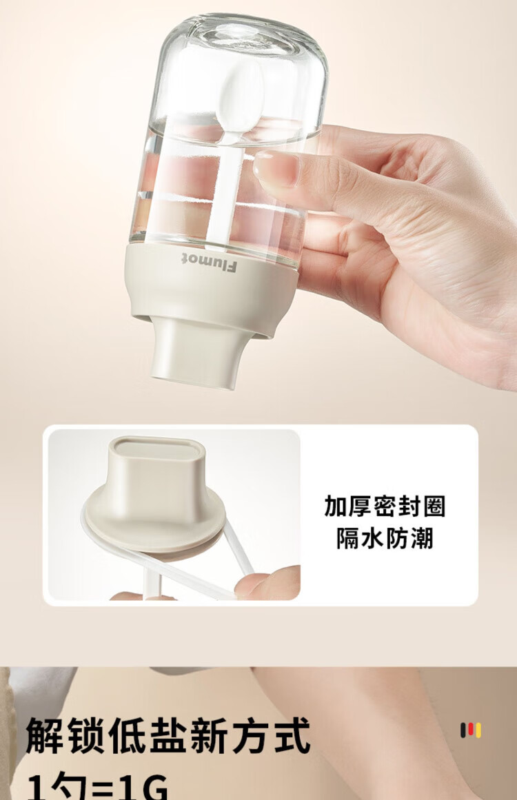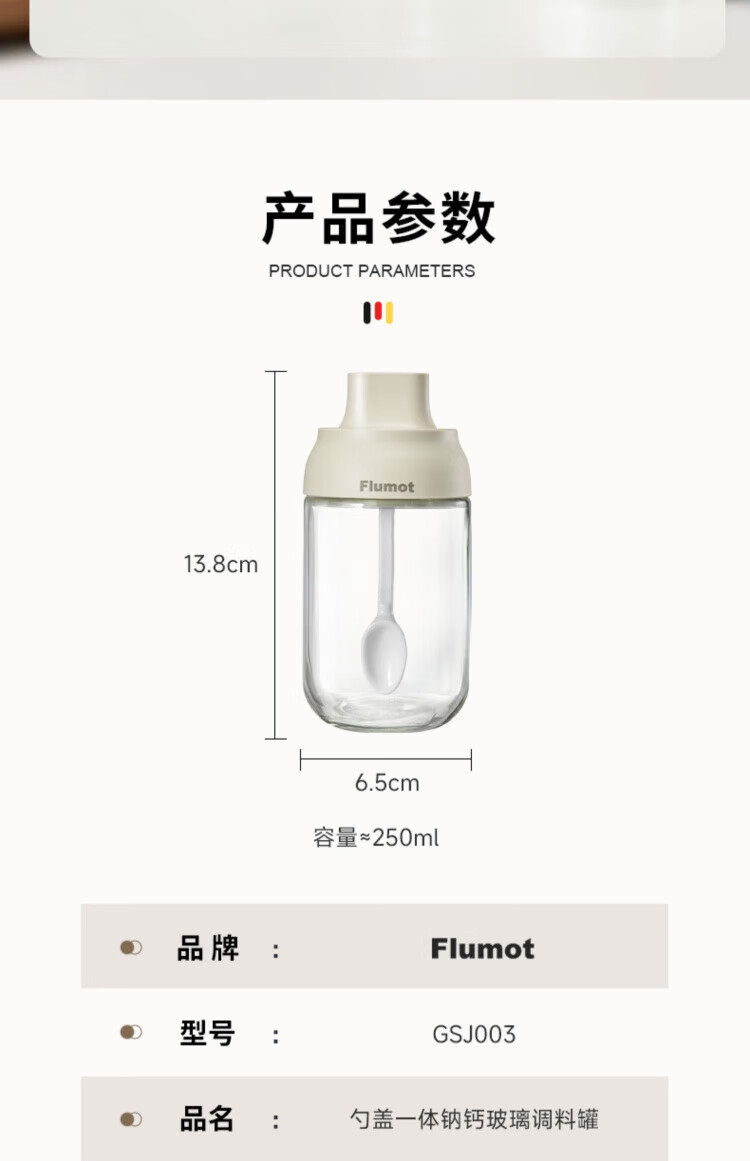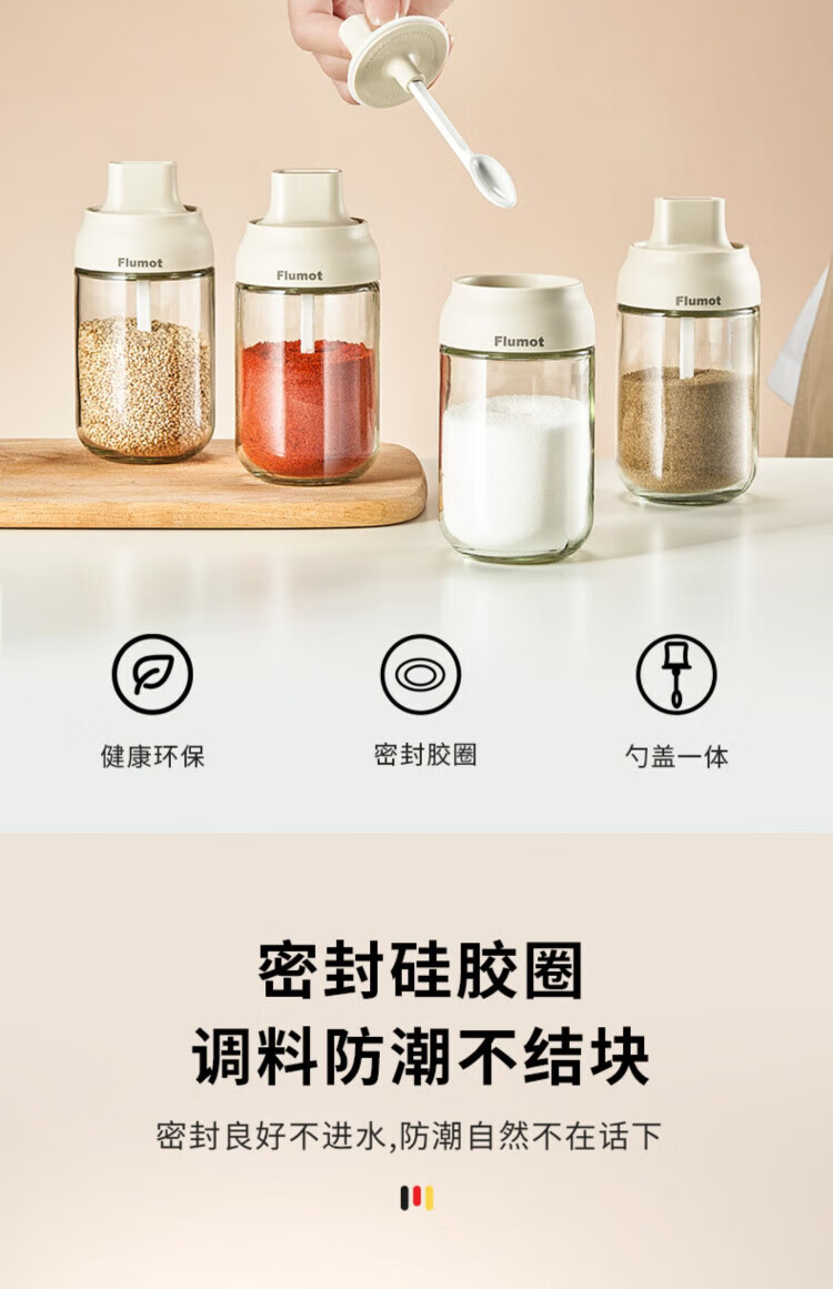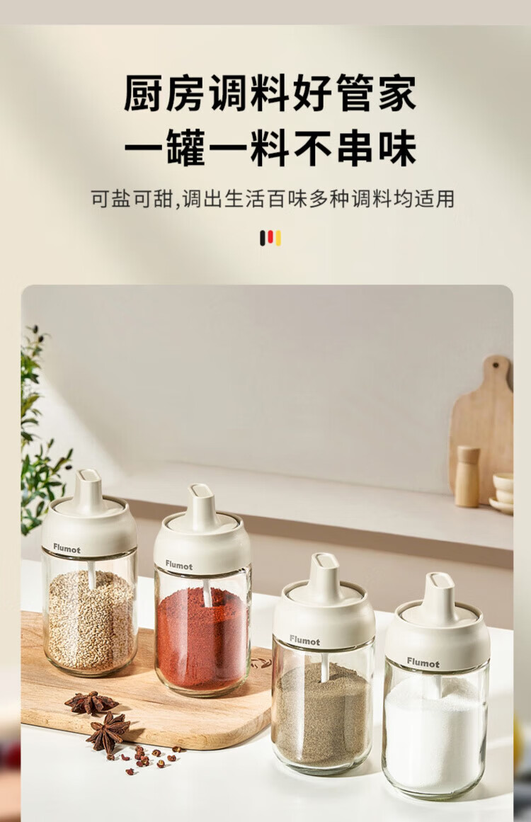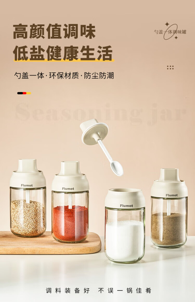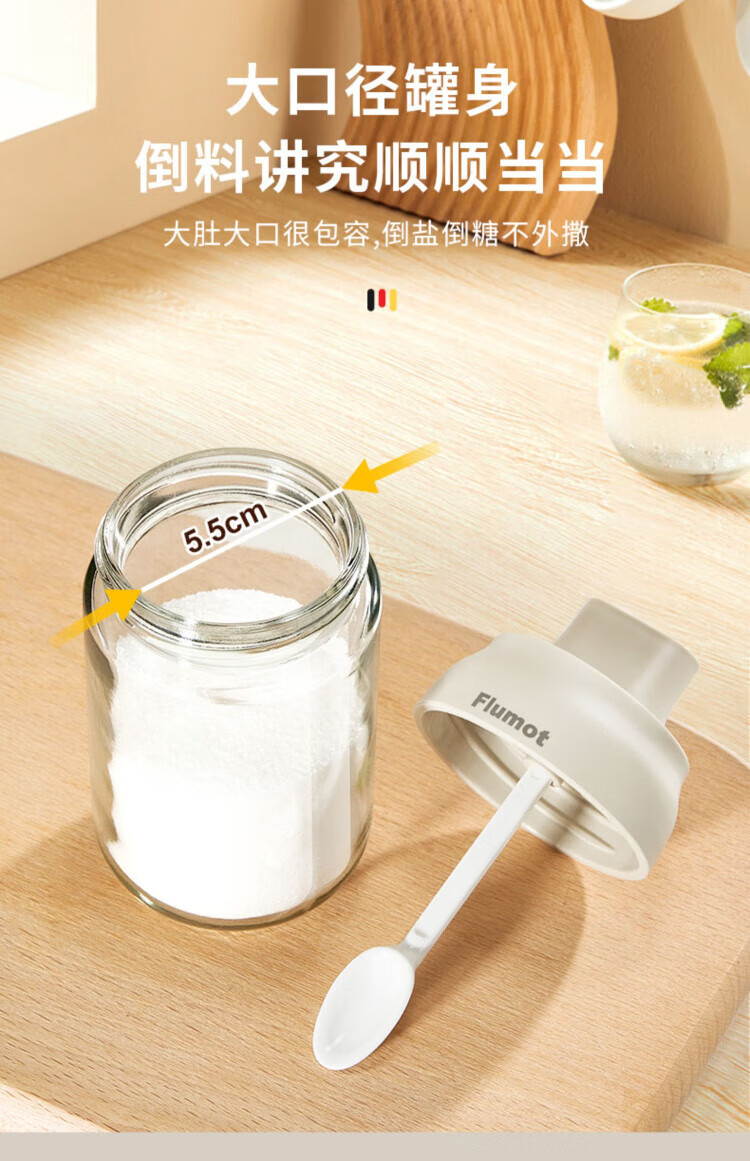 JCZS German seasoning bottle jar seasoning salt jar sugar jar glass kitchen household storage box sub-bottling bottle 2025 new 2675 cover and spoon one 2 pack label