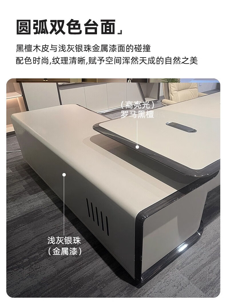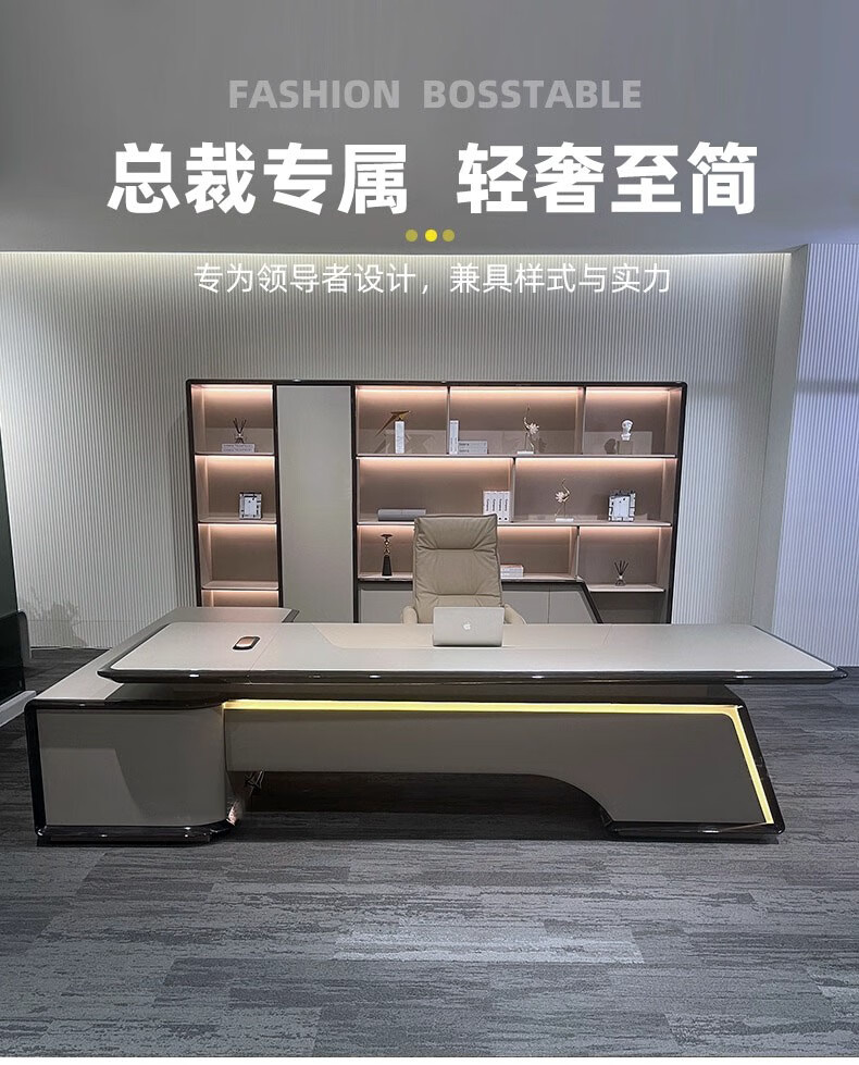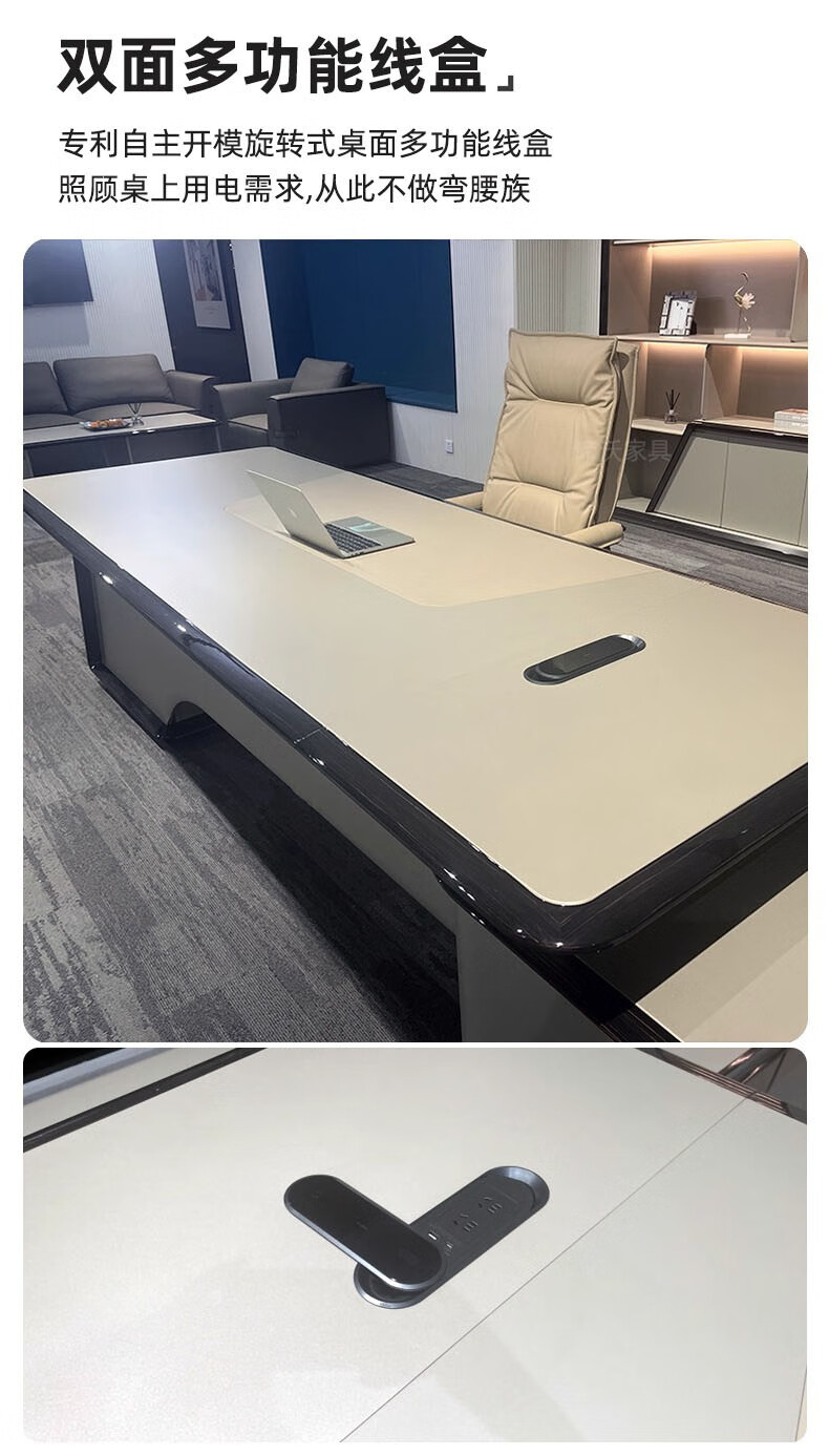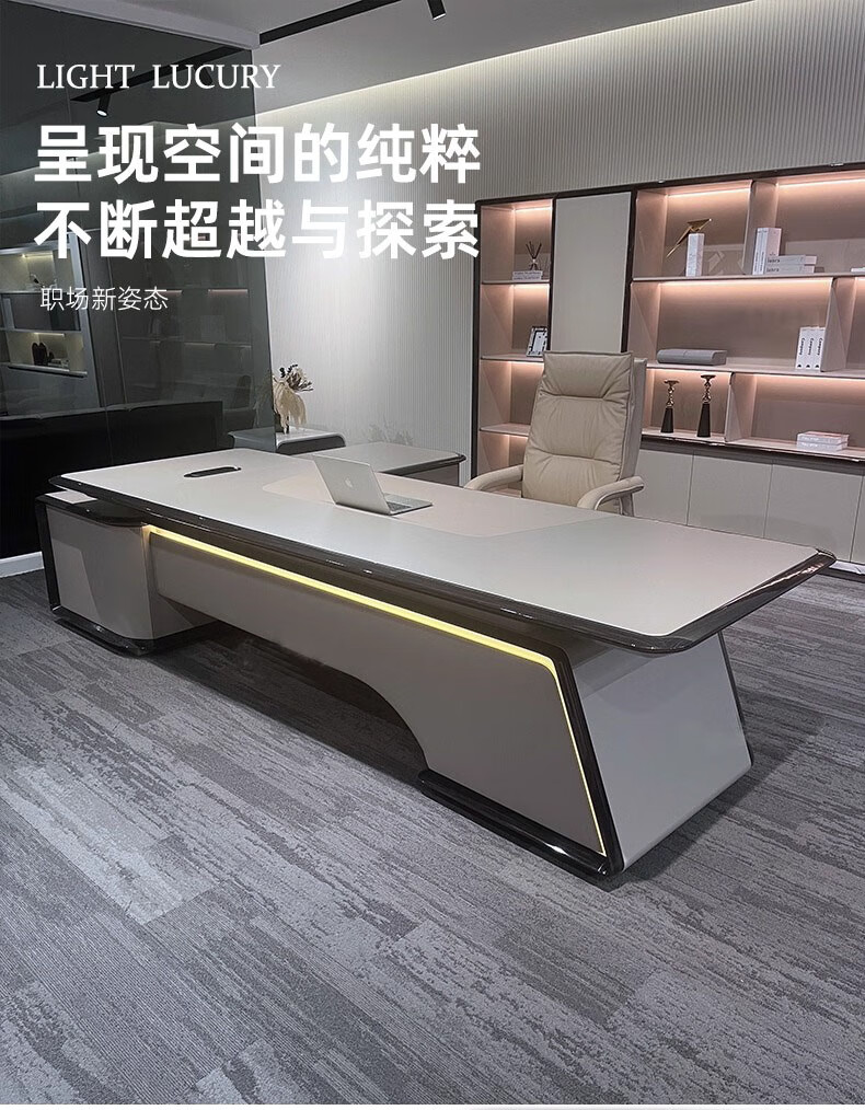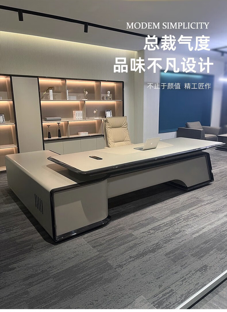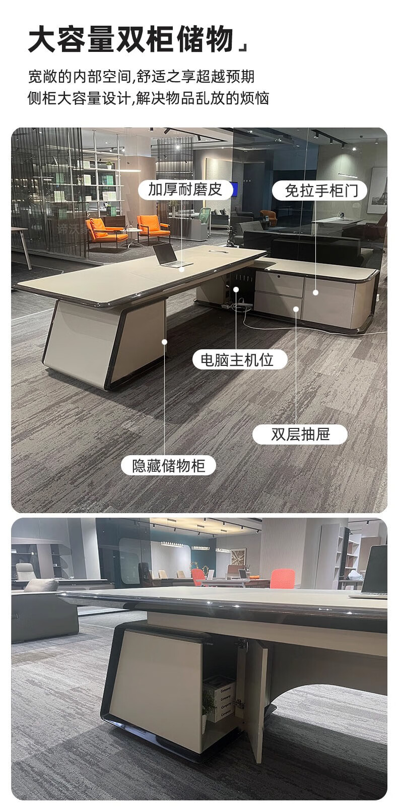 Hanjitang Yu light luxury boss desk office desk ebony leather high-end president desk tables and chairs simple modern executive desk office furniture 2.4 meters boss desk