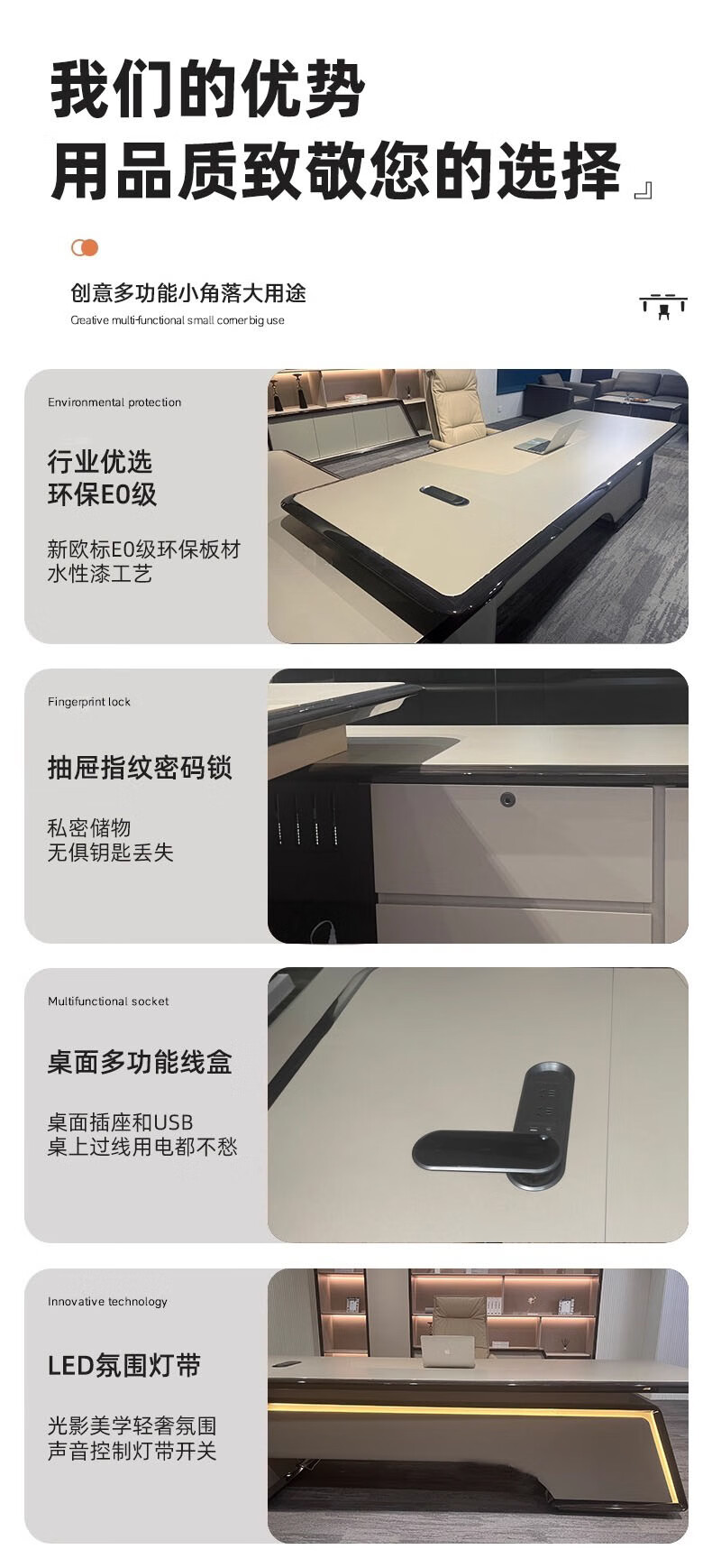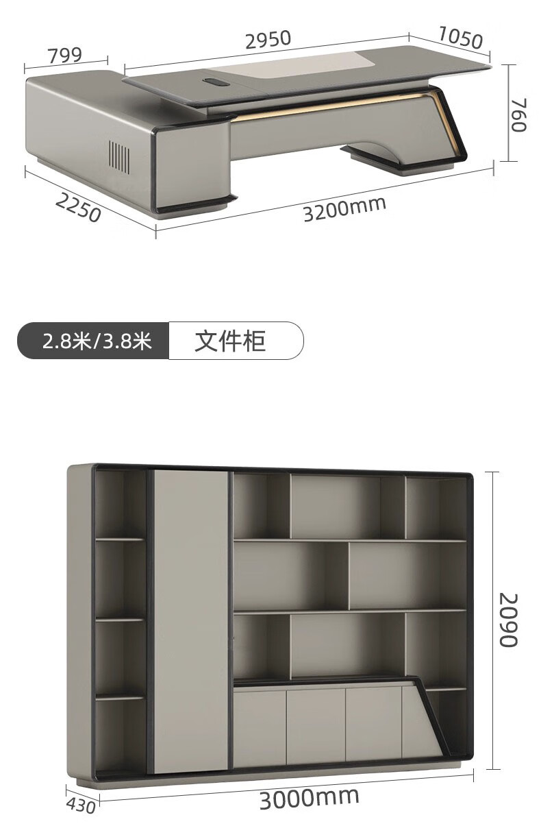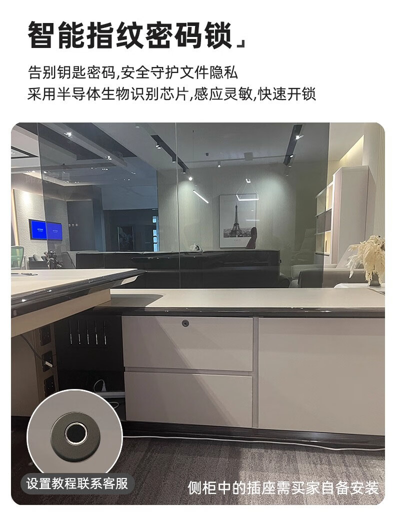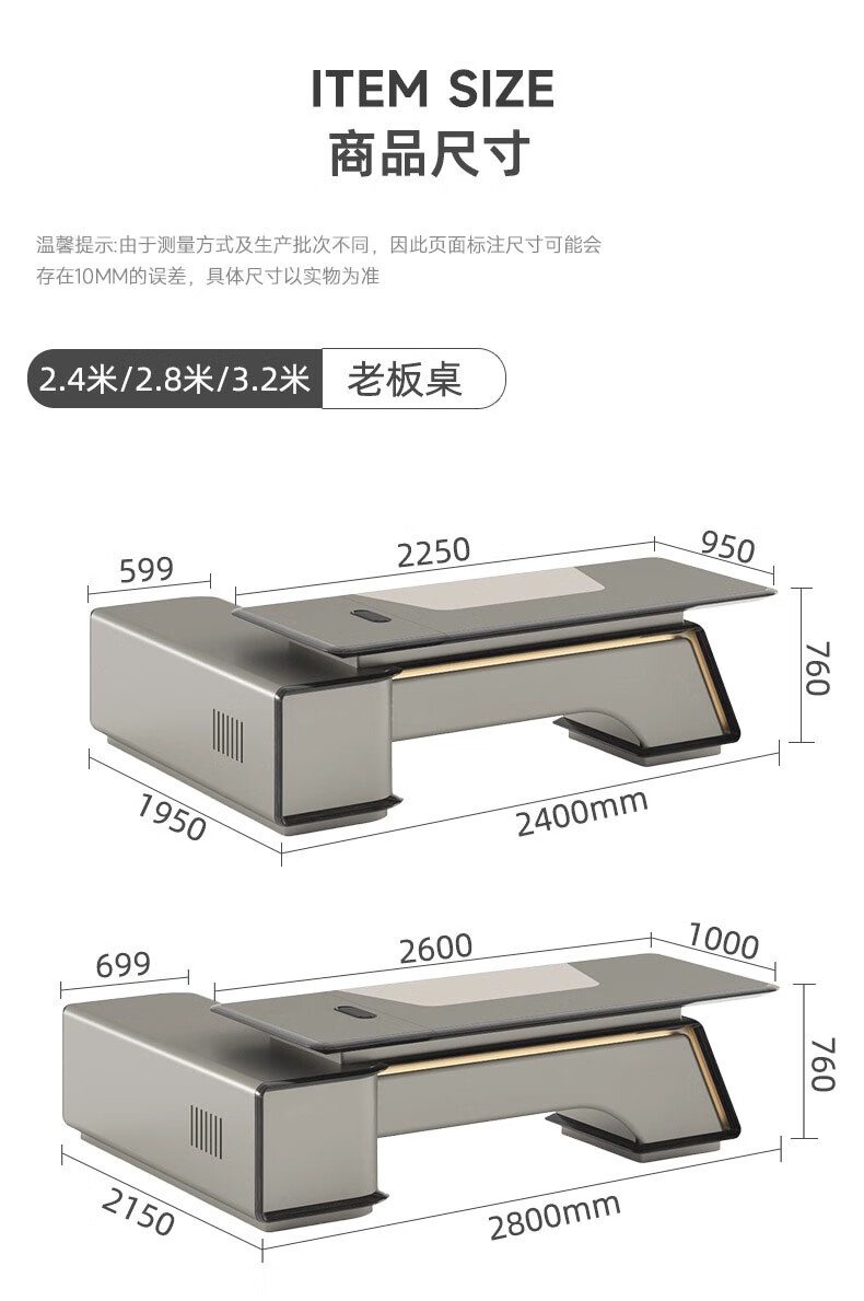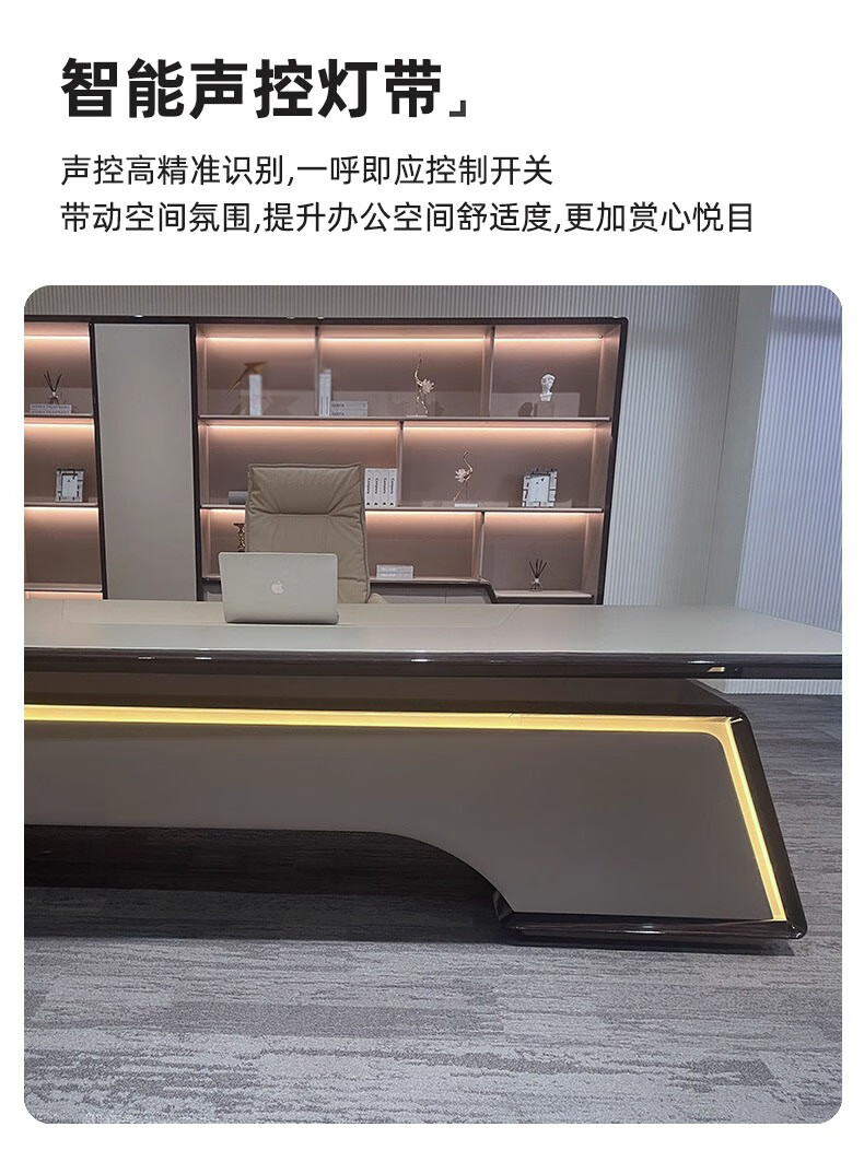 Hanjitang Yu light luxury boss desk office desk ebony leather high-end president desk tables and chairs simple modern executive desk office furniture 2.4 meters boss desk