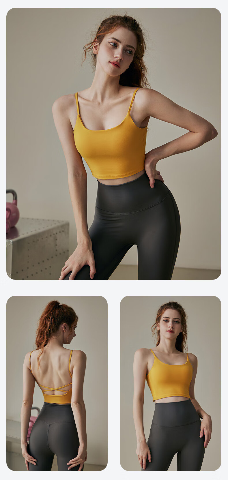Duofanlian Sports Bra Women's Outerwear Running Top Fitness Vest Pilates Training Back Beautiful Yoga Wear Bra Honey Yellow Beautiful Back Model M